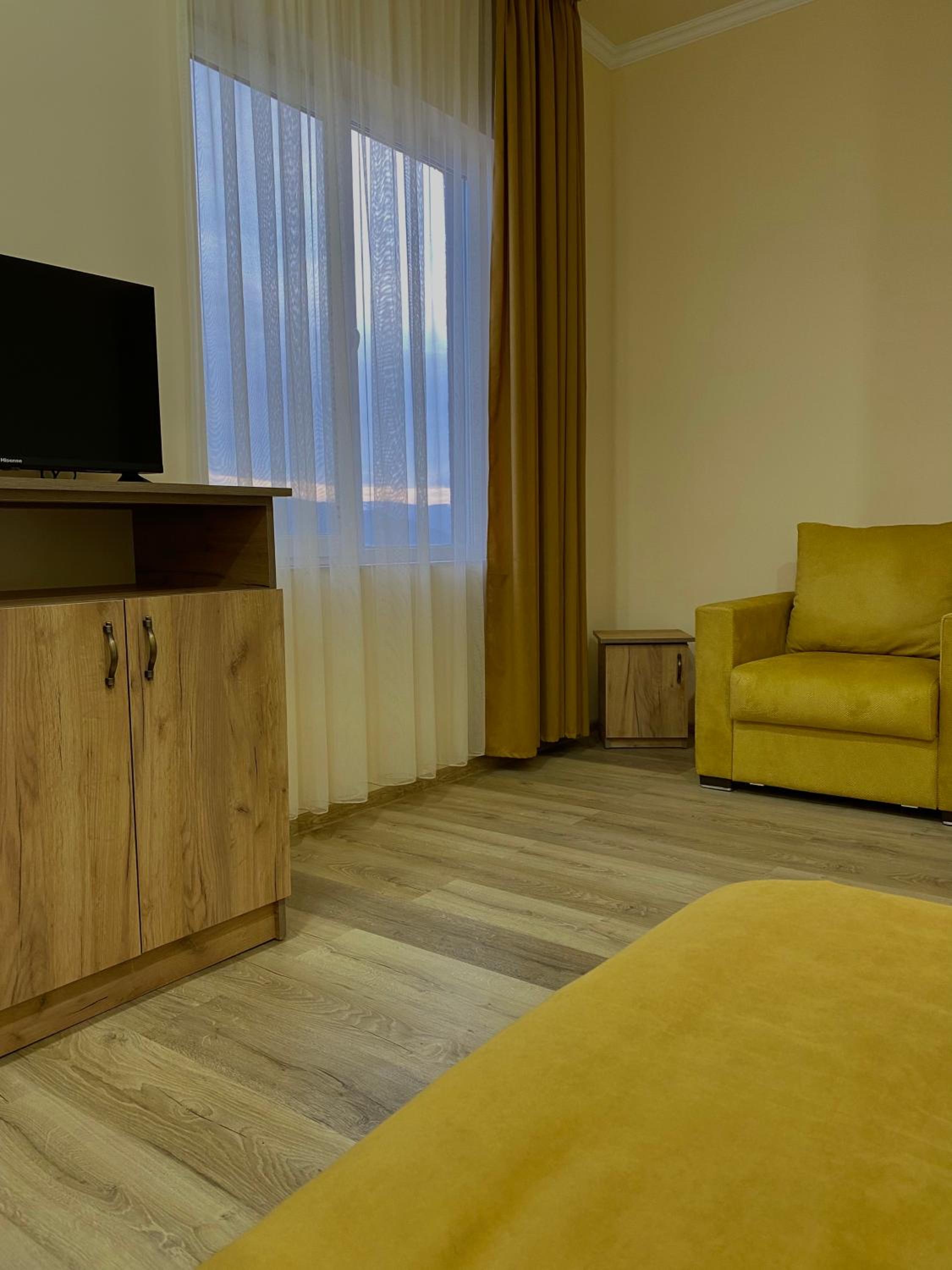 Здание отеля новое, поэтому в комнатах свежий ремонт, новая мебель и все прочее. Матрас, подушки удобные.