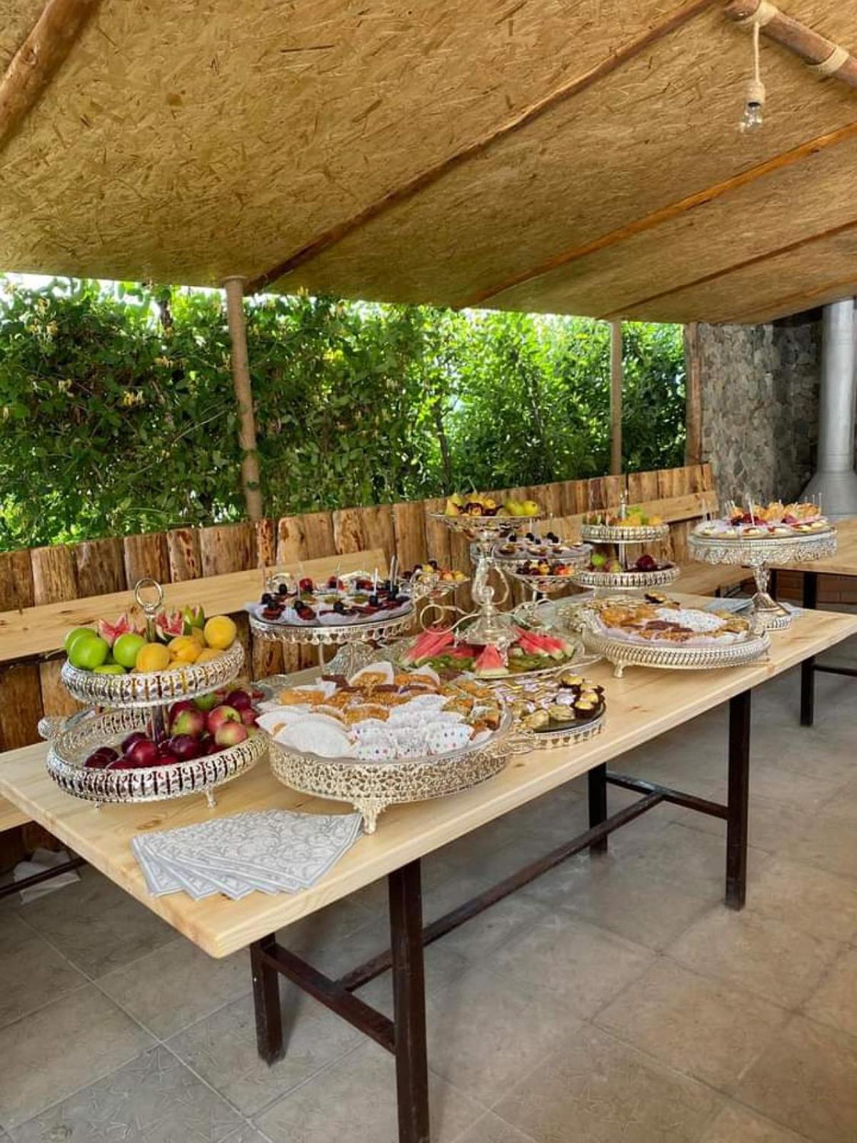 А как божественно там кормят!!! Мастерство повара Гаянэ выше всяких похвал!!! Готовит с душой, учитывая все ваши пожелания. Продукты все свежие, вкусные (жена особенно налегала на молочку-она там оооочень вкусная). Порции огромные, порции на завтрак (в девять утра) хватало до самого вечера. Помимо обязательного блюда (каша, омлет, паста) имеется шведский стол, на котором щедро расставлены несколько видов сыров (армянских-очень вкусных), колбас, а также творог, сметана, молочка, вареные яйца, варенья из даров собственного сада, свежие фрукты (тоже из сада)-в общем, не стол, а скатерть самобранка))