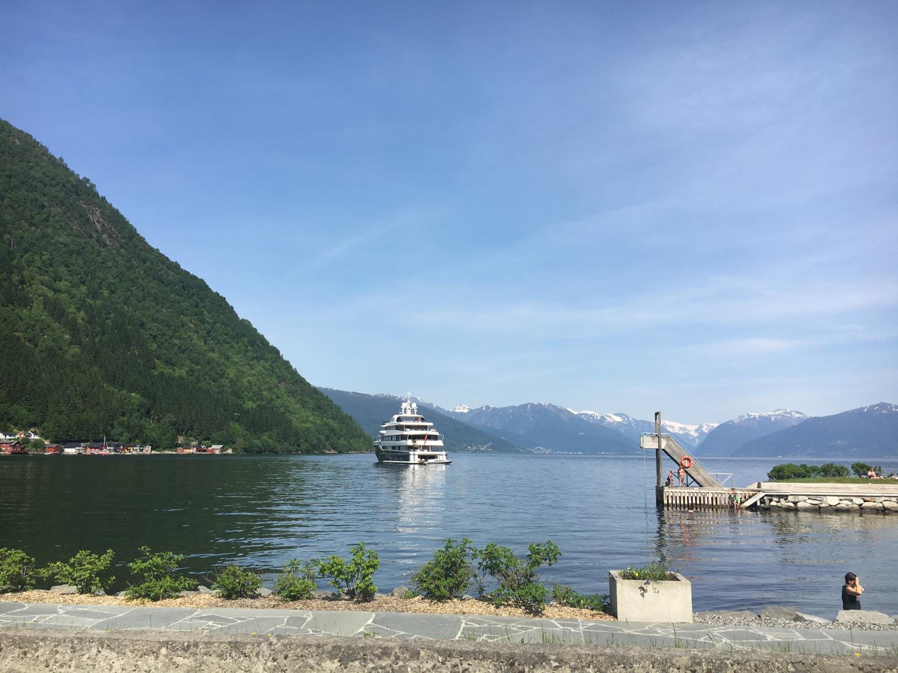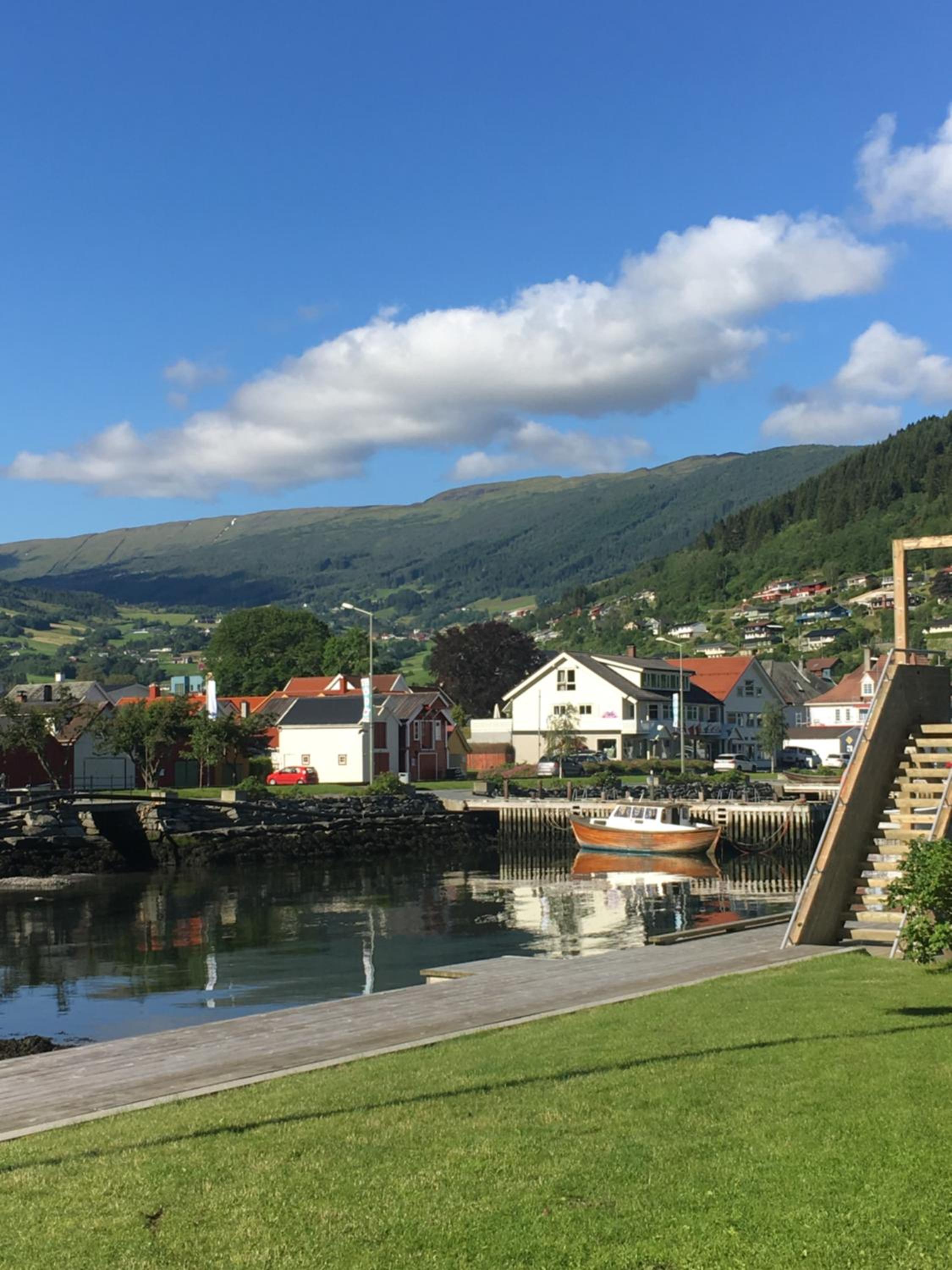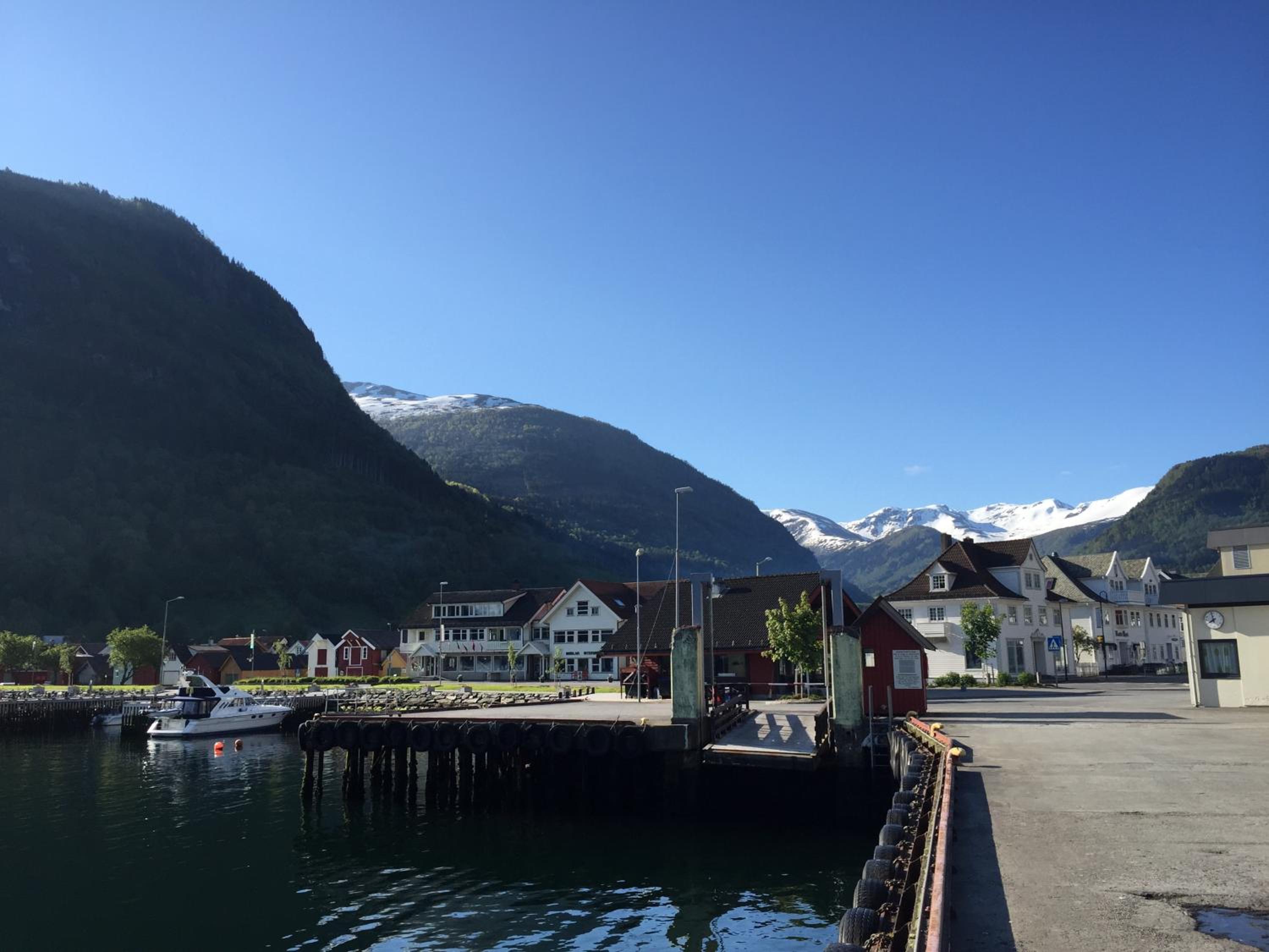 The hotel was very nice. It was minutes from where the ferry drops you off. It was a walkable distance to the Hopperstad Stave church. Right across the street from the supermarket too. It was clean and perfect for a 1 night stay.
