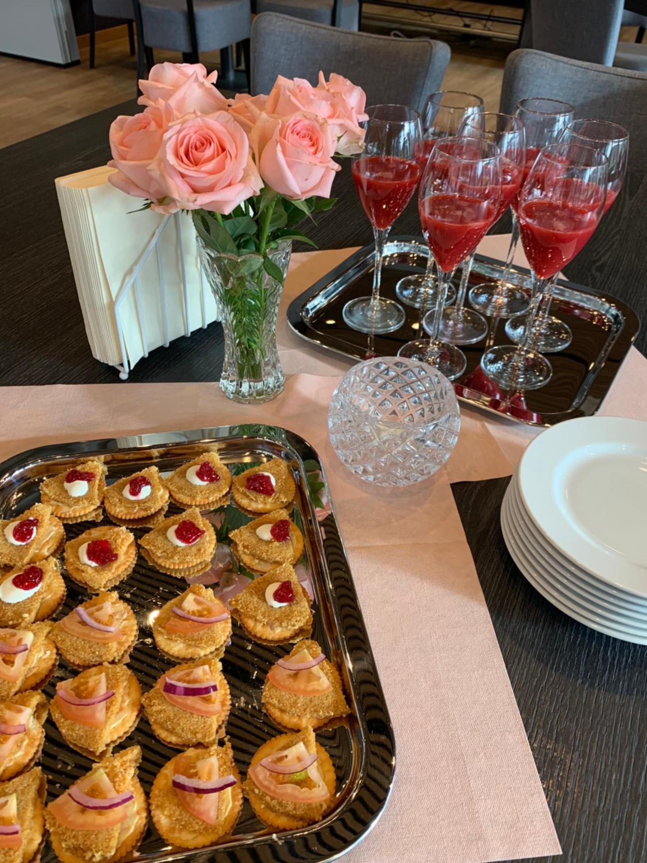 Kjempegod frukost, fin beliggenheit. Nydelig tre-rettes middag ved feiringa med var på.