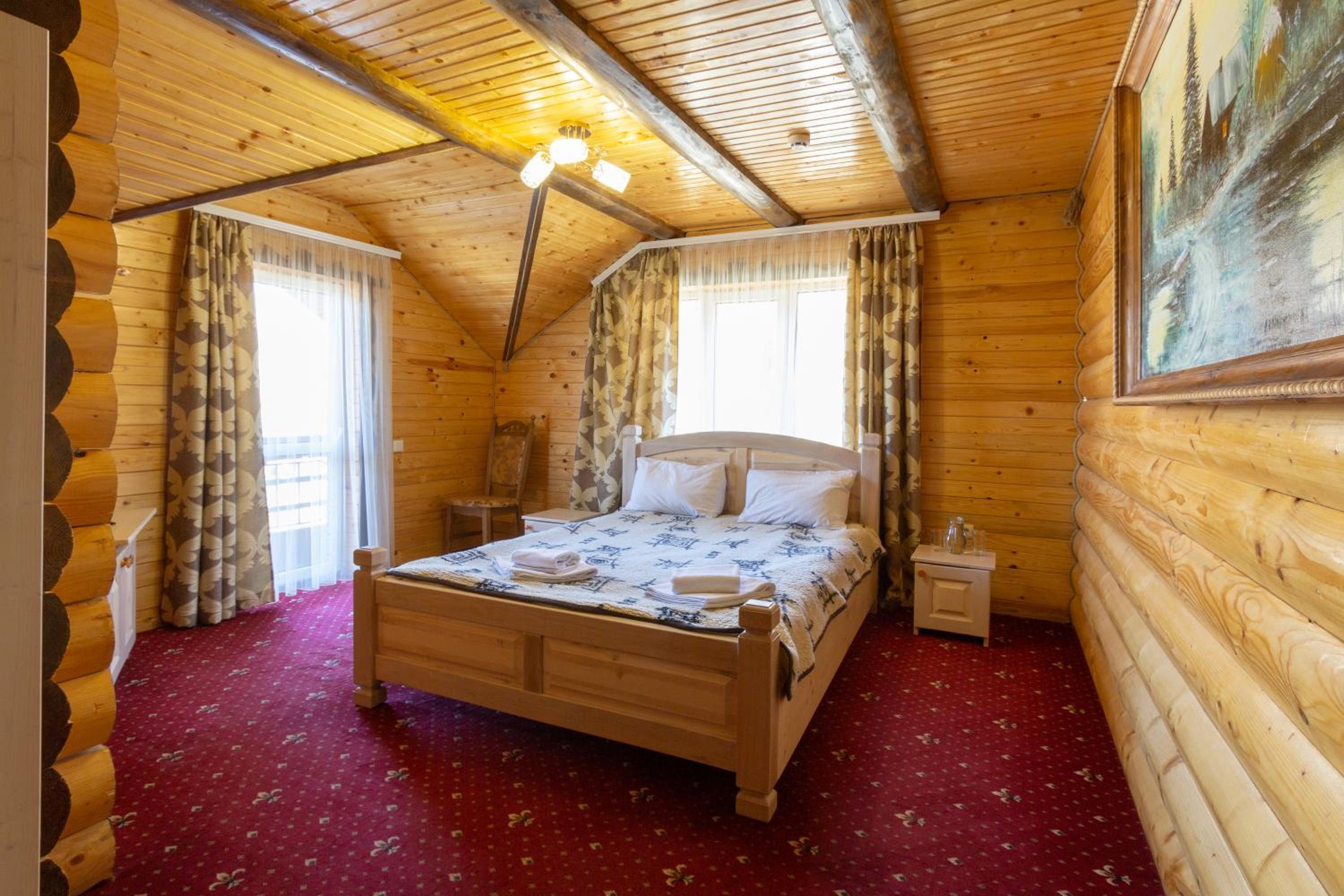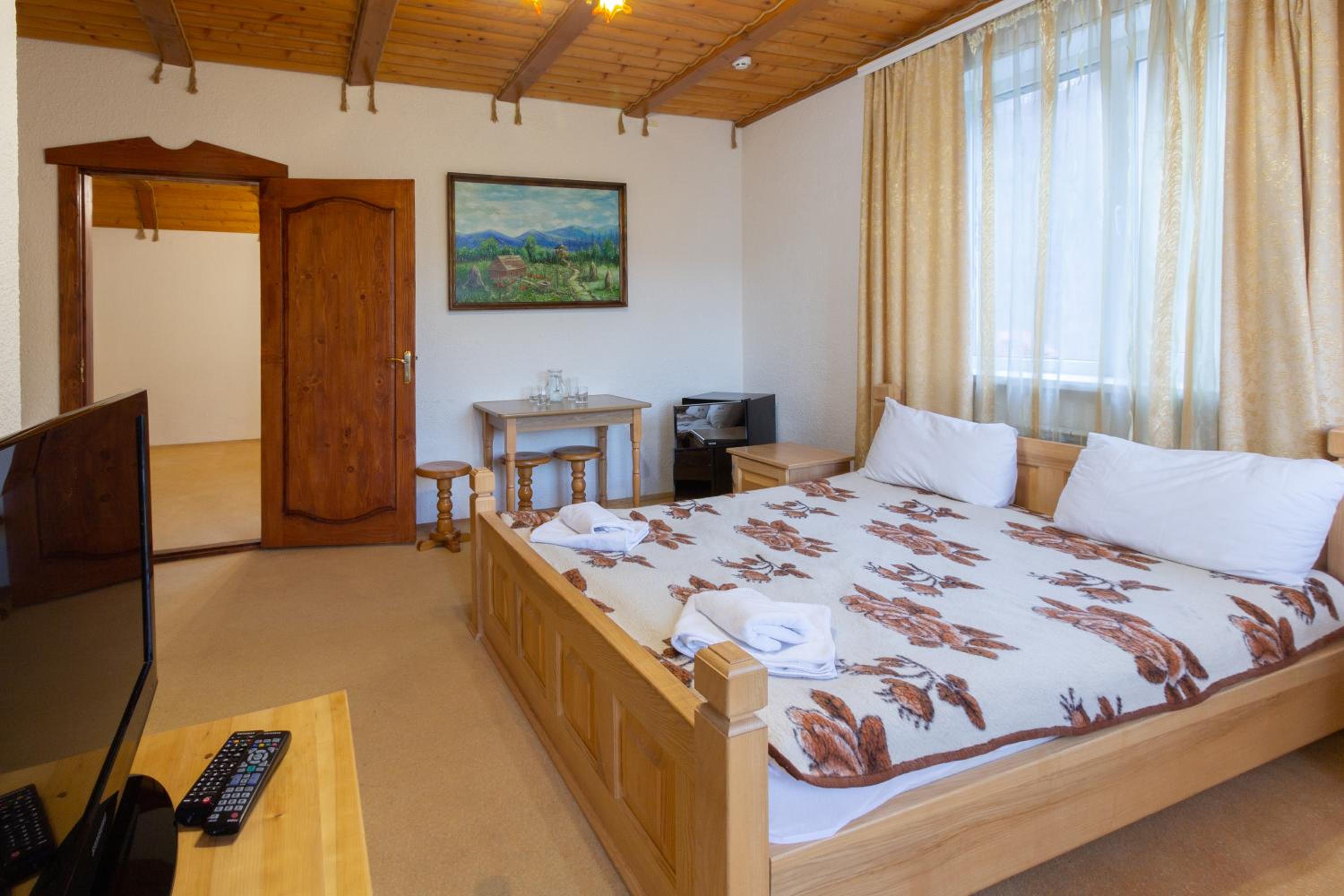 У Мар'яни і Назара, located in Yaremche, offers a perfect blend of nature and luxury. Each room is equipped with modern amenities like a flat-screen TV, free WiFi, and cozy bedding, ensuring a comfortable stay. Guests can also enjoy stunning mountain views, adding a touch of serenity to their experience.