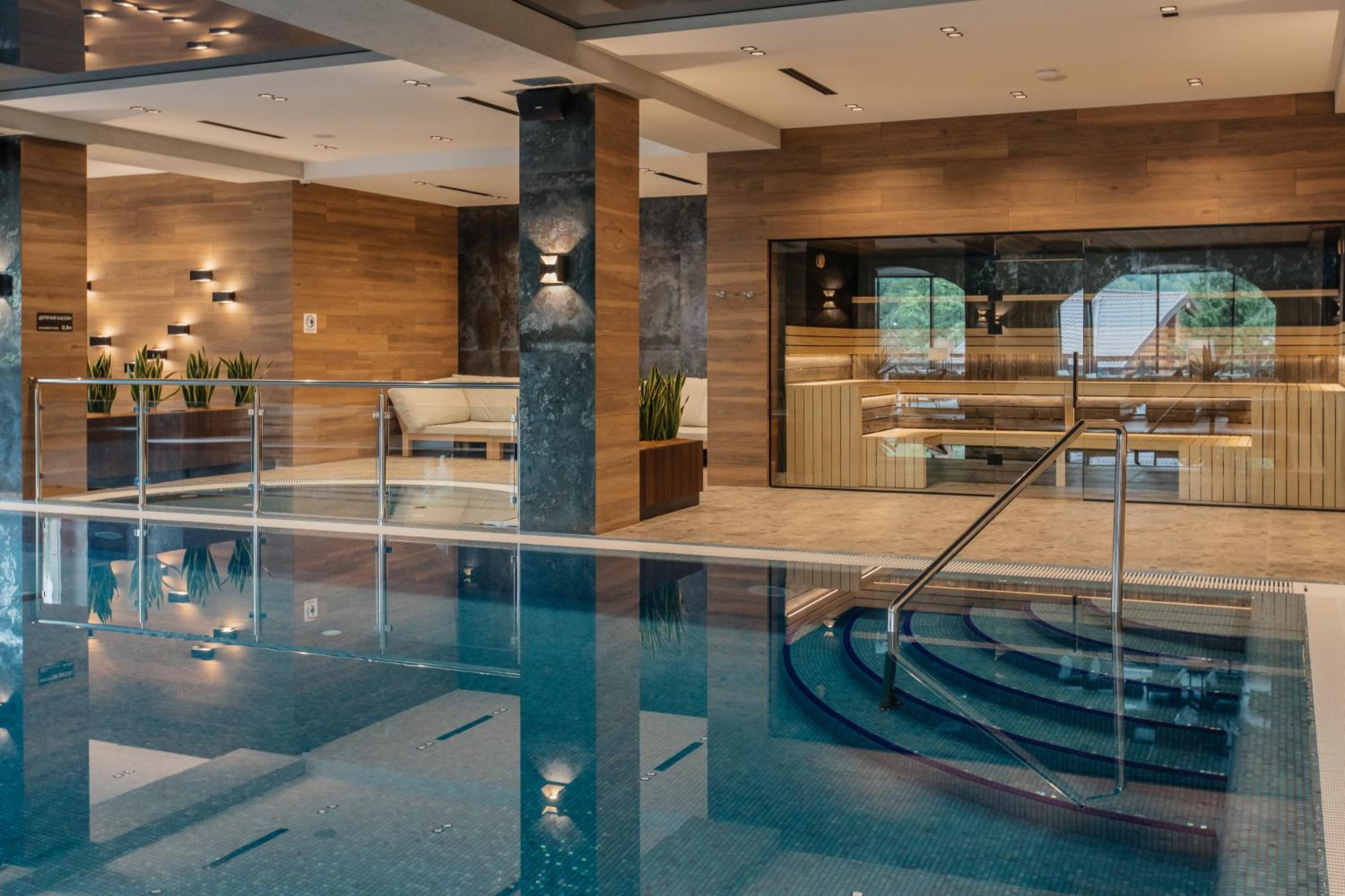 Located in Yaremche, Ведмежа гора Panorama Spa Resort offers a range of upscale amenities including a fitness centre, indoor pool, sauna, and karaoke. The rooms are elegantly furnished with modern conveniences like flat-screen TVs, air conditioning, and private balconies in select rooms.