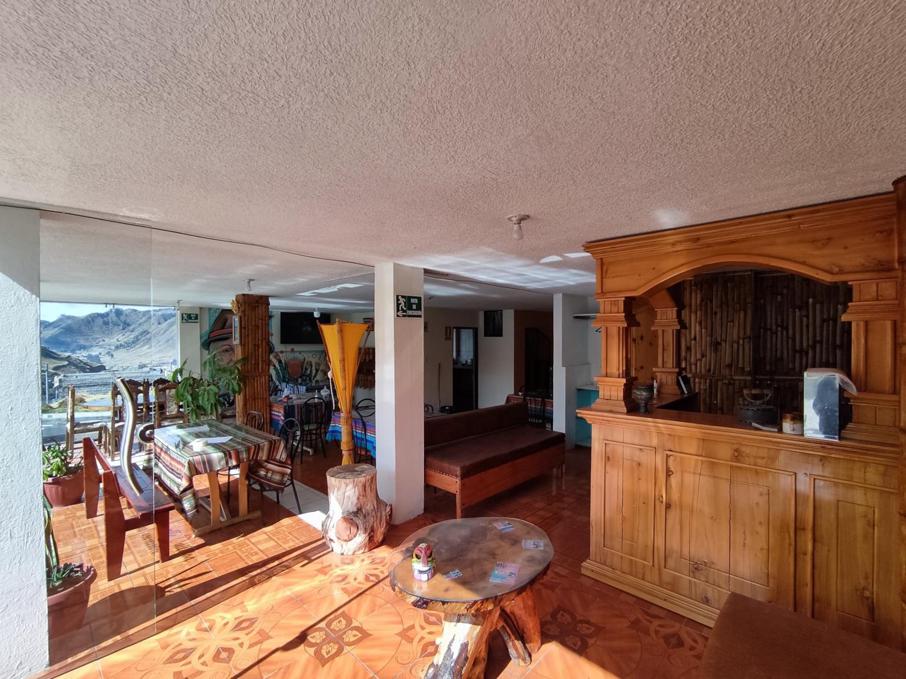 The hostal was located above the main town, around a ten-minute uphill walk. There are a few restaurants to eat dinner in the center of Zumbahua. I stayed alone in a spacious room with several beds. The bathroom was adequate. The price was quite cheap. The manager, Fabiola, was friendly and helpful. The place was quiet at night. Since I was going to the early market, I was told that I could eat the included breakfast when I came back. Continuing on to Quilotoa Lake, the bus stopped right in front of the hostal. All in all, I was very satisfied with this choice.