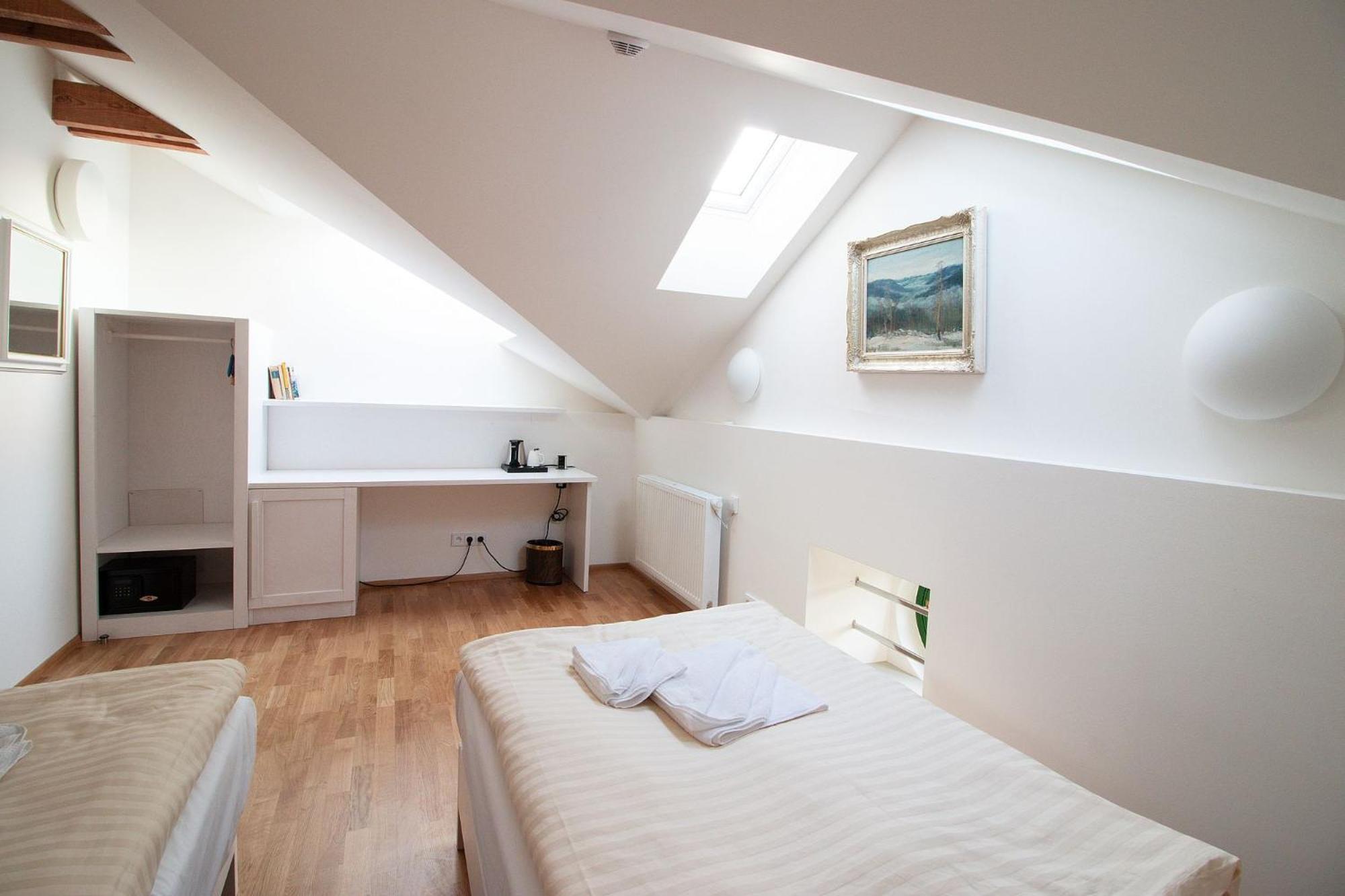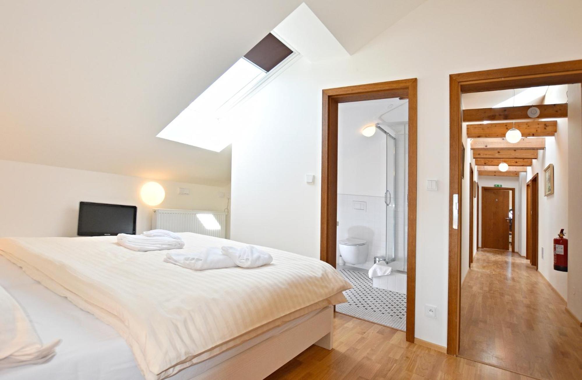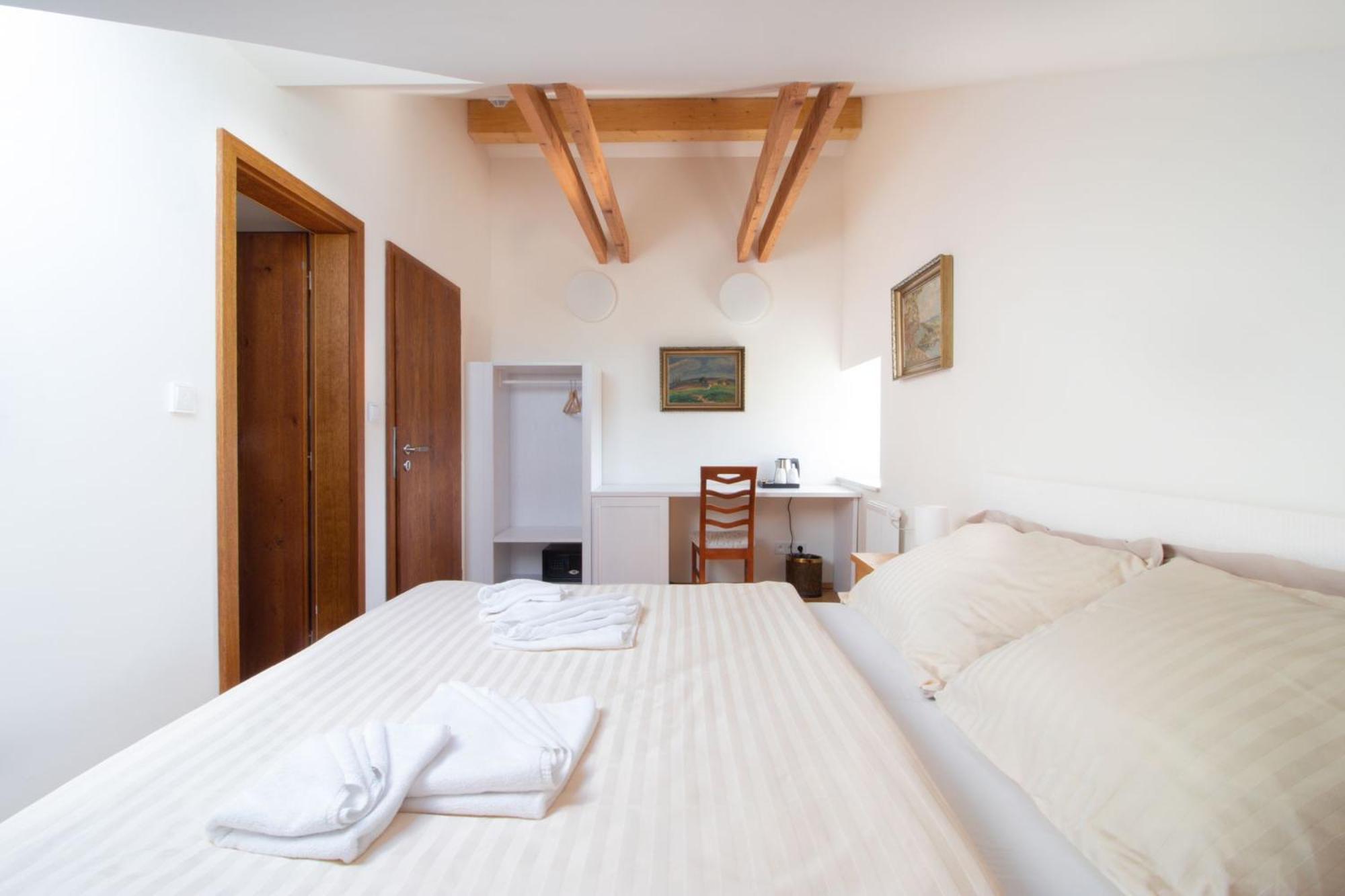 Ubytování krásné, čisté, vše super. Jediná vada na kráse je rozdělení recepce a hotelu, který je spojený s restaurací v pivovaru. Není problém v tom, že musíte dojít pár minut na náměstí, kde se provede rezervace a pak zpět do hotelu. Ale velké špatné je přístup personálu v samotném pivovaru, kam jsme šli jako první a ptali se na informace ohledně ubytování. Mladík v restauraci byl absolutně arogantní, neochotný cokoliv vysvětlit a to mi zkazilo celý dojem z návštěvy i chuť si tam zajít na večeři.