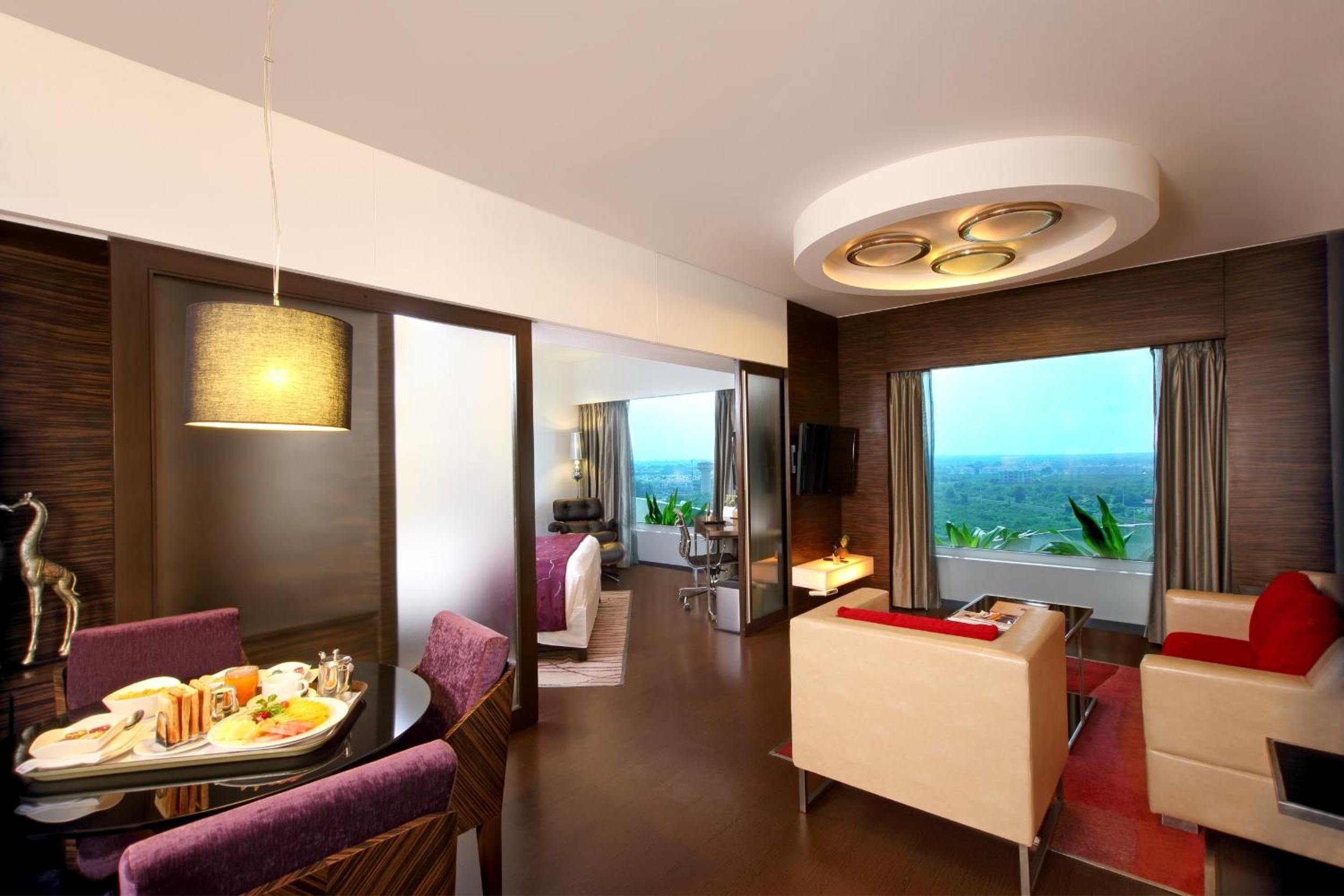 Indulge in a culinary journey with 3 dining options at the hotel. The Garden Cafe serves all-day meals with international and traditional Gujarati dishes, Dravida offers South Indian cuisine, and @Nine is the rooftop restaurant serving International dishes.