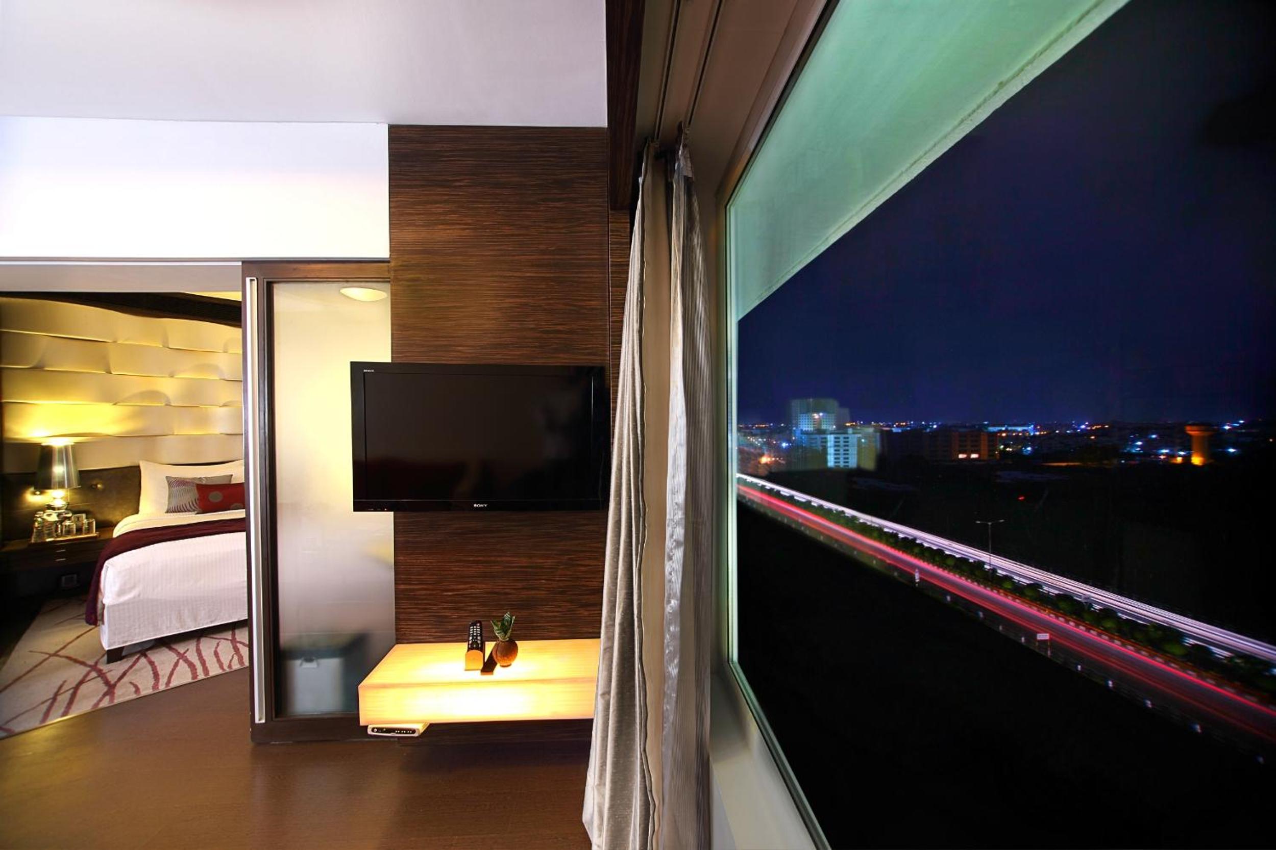 The 5-star Hotel offers a luxurious experience with modern and fully carpeted spacious rooms featuring full-length windows, LCD TV, and laptop safe. Guests can enjoy amenities like a refrigerated mini-bar, free bottled water, and iPod dock for a comfortable stay.