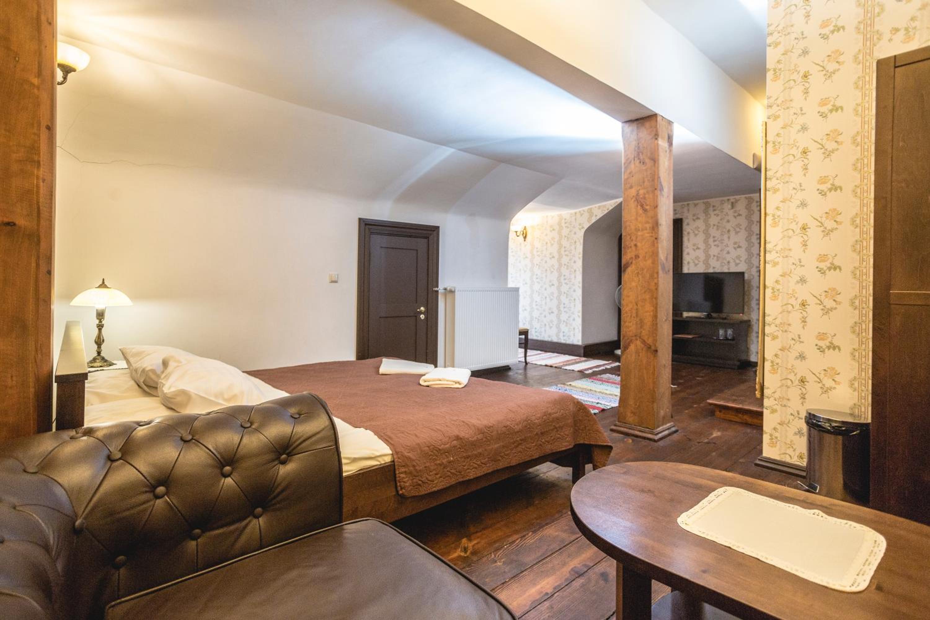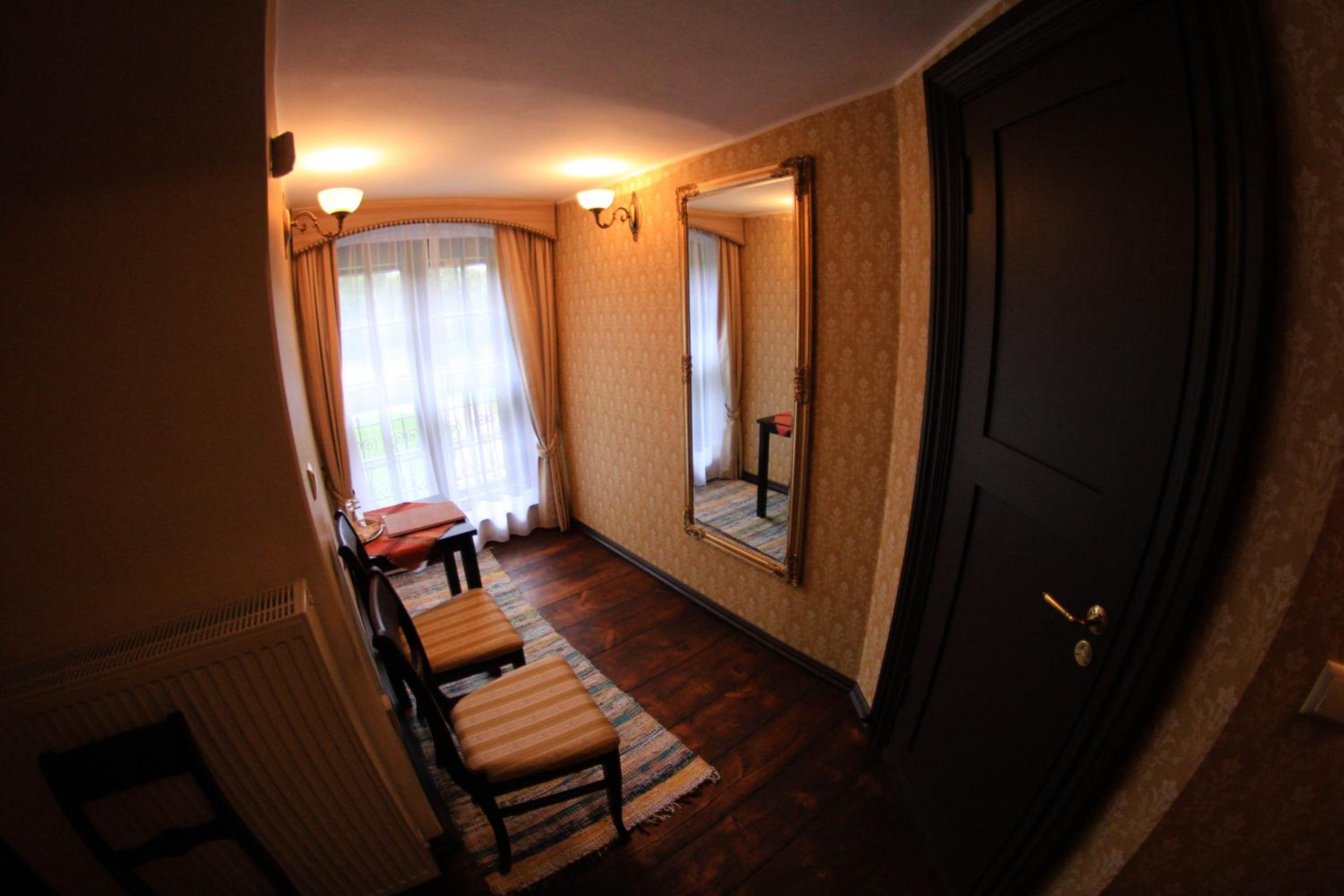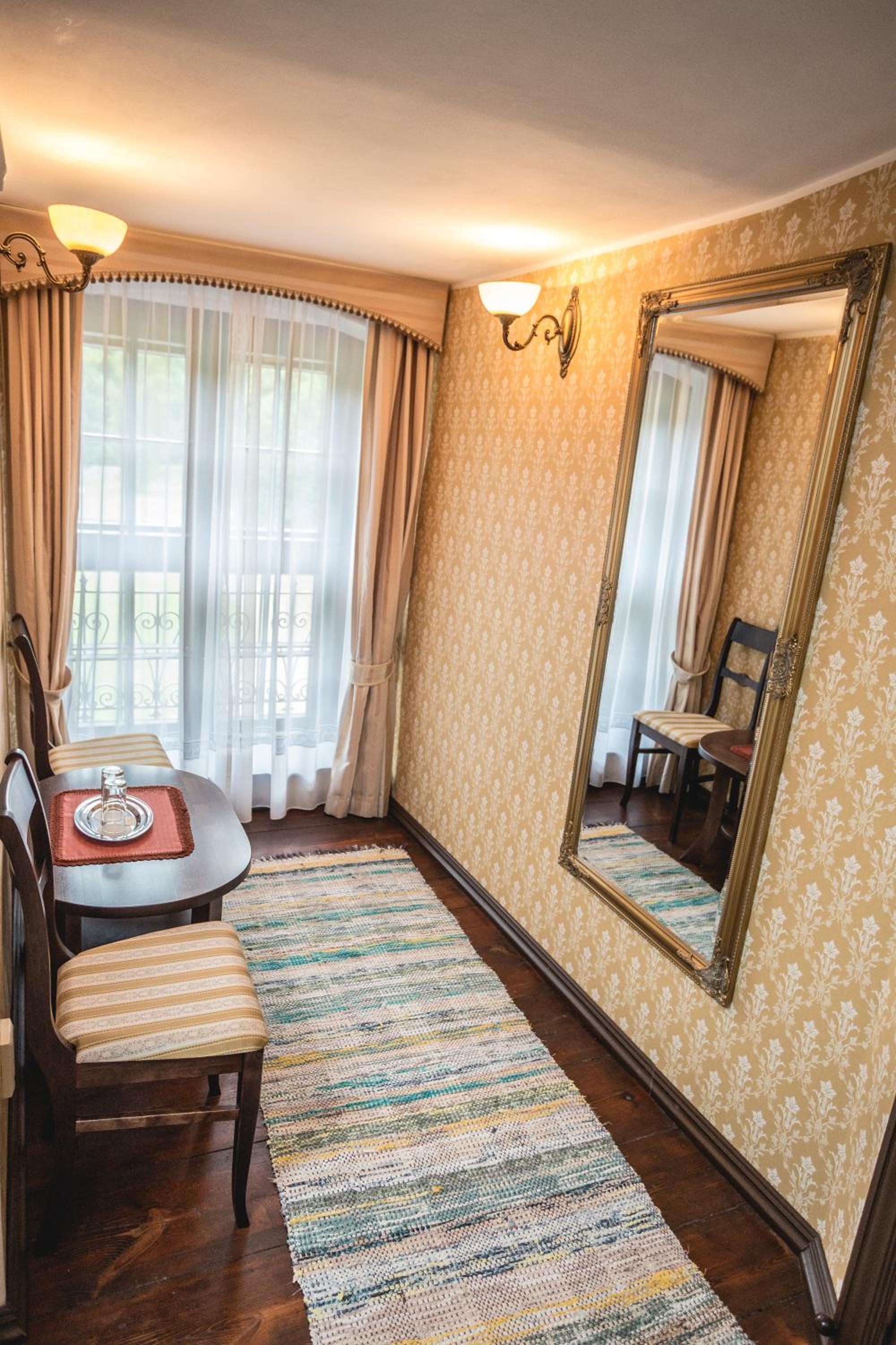 Номер соответсвовал ожиданиям проживания в замке. Путешествовали в октябре, в номере было слегка прохладно, но предоставлялась дополнительная электрическая батарея. В ресторане сервис на высшем уровне, блюда очень вкусные, оформление и атмосфера шикарные. Так же в замке есть довольно интересный и большой музей. Персонал общительный и любит свое дело, всегда готовы помочь.