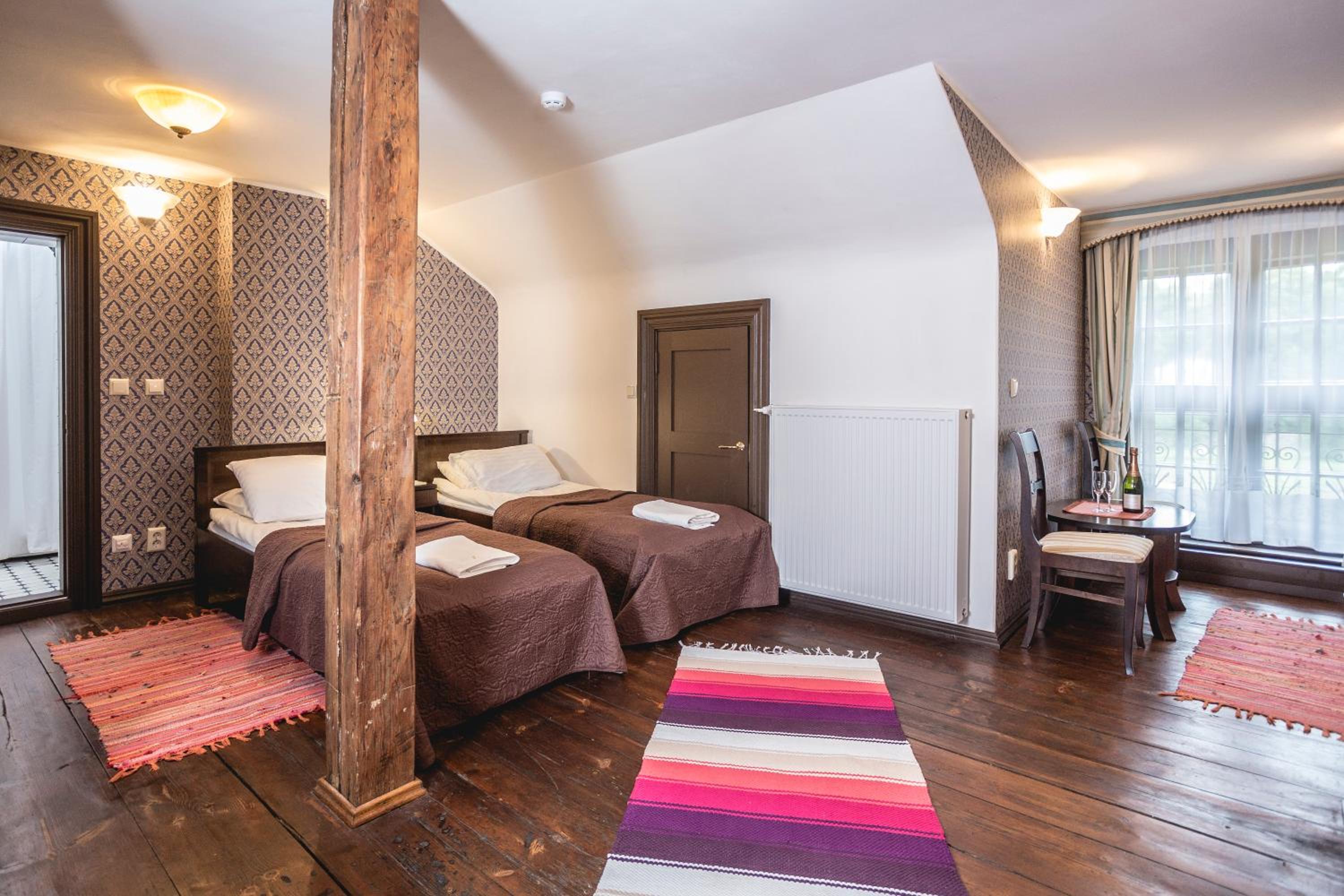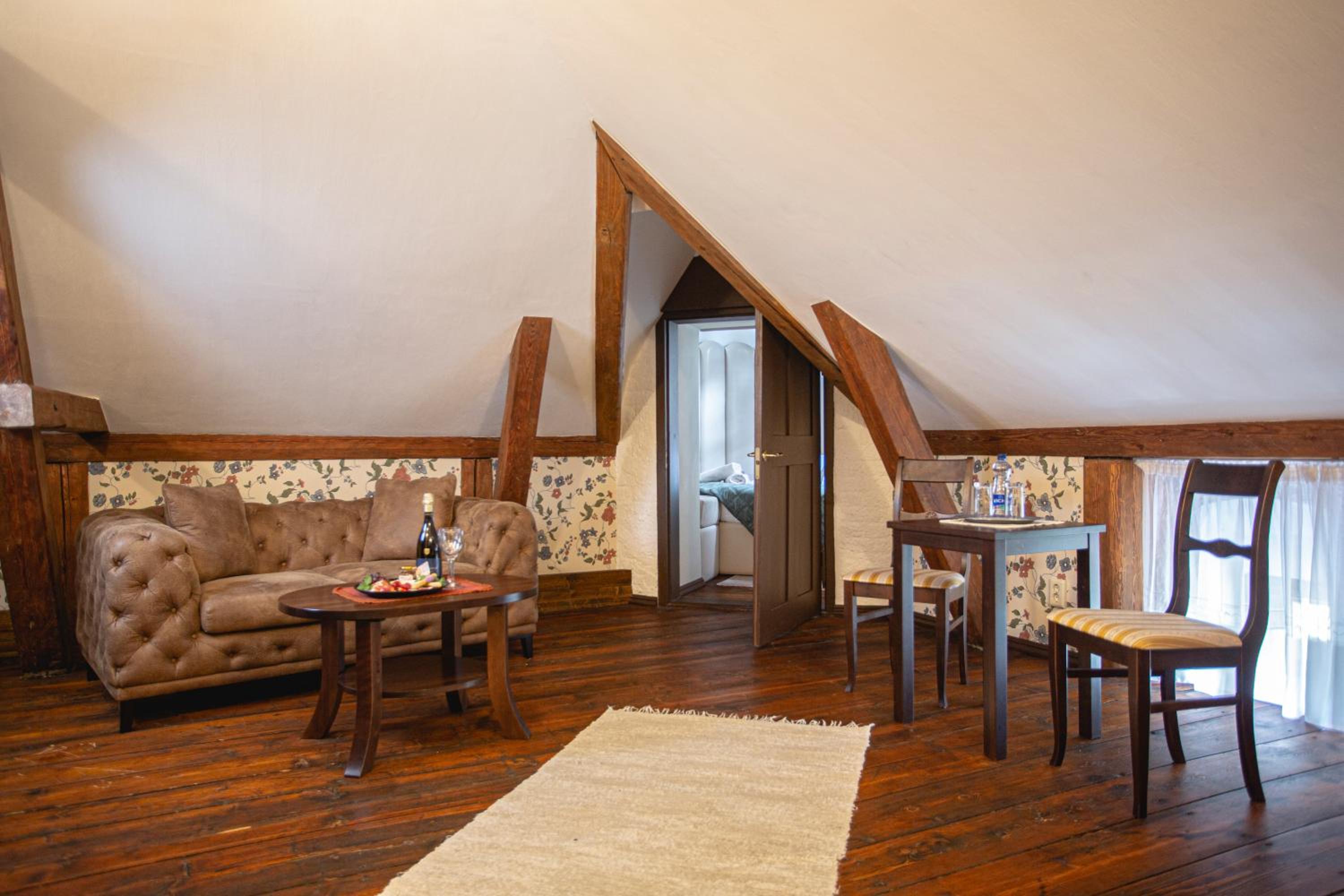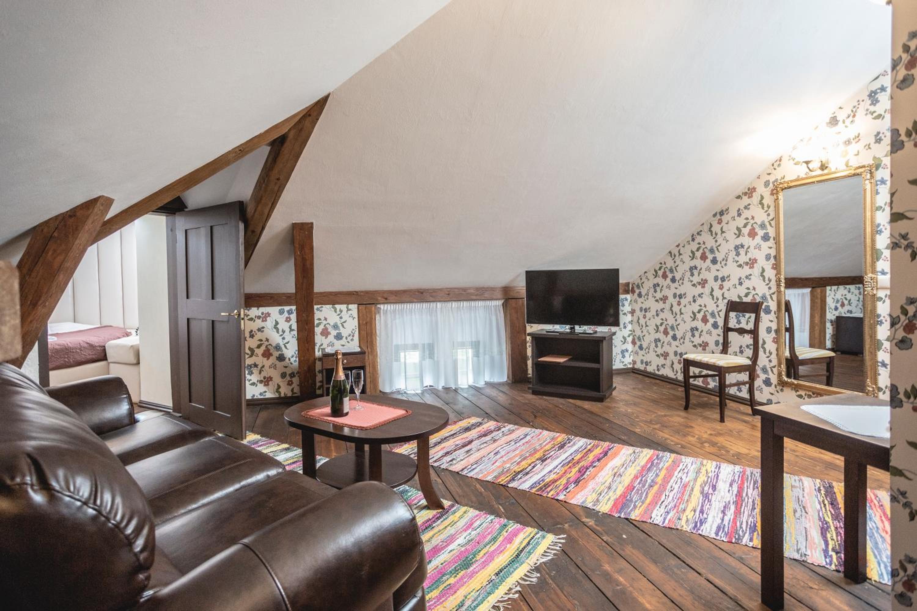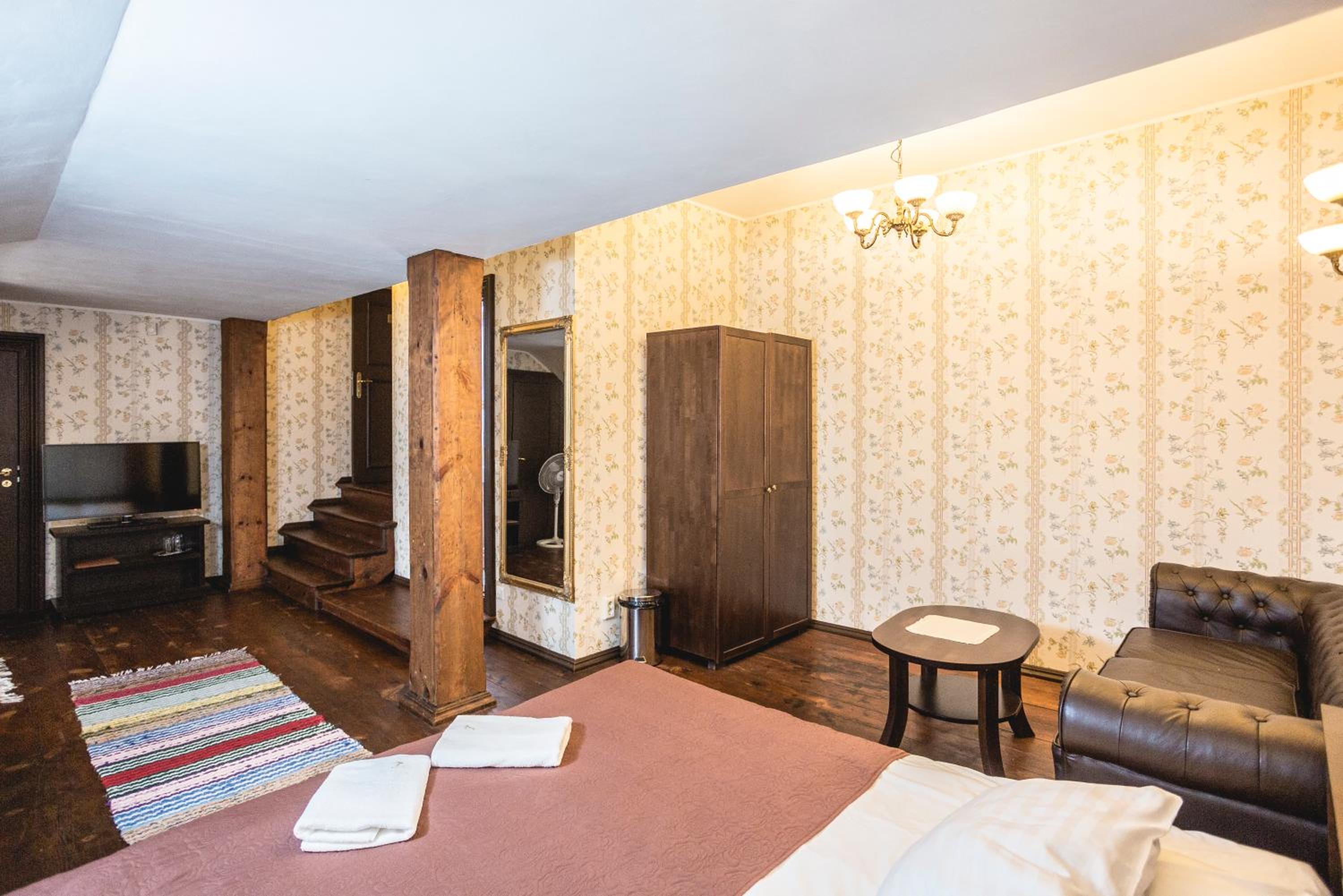 Номер соответсвовал ожиданиям проживания в замке. Путешествовали в октябре, в номере было слегка прохладно, но предоставлялась дополнительная электрическая батарея. В ресторане сервис на высшем уровне, блюда очень вкусные, оформление и атмосфера шикарные. Так же в замке есть довольно интересный и большой музей. Персонал общительный и любит свое дело, всегда готовы помочь.