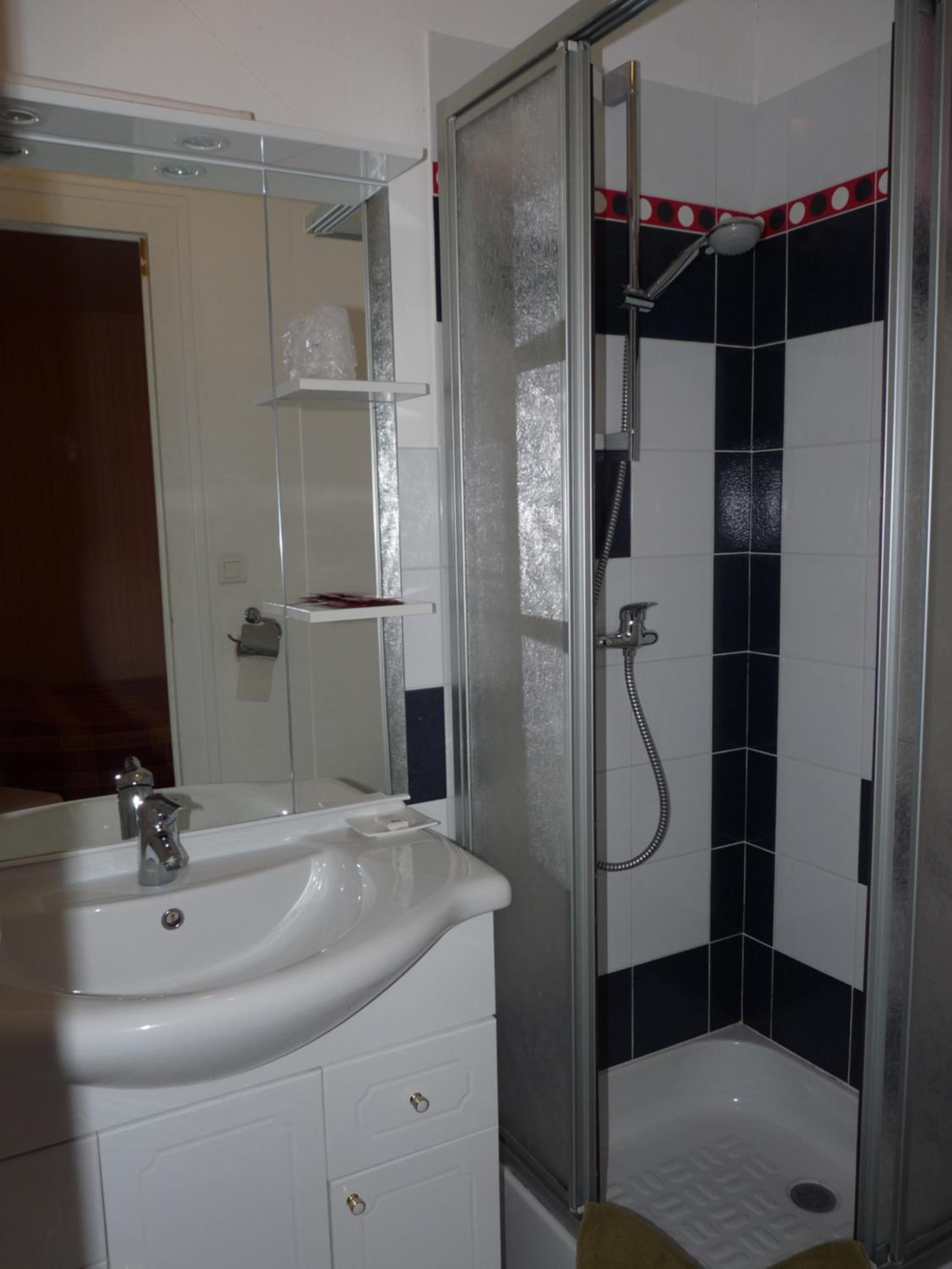 La salle de bain vraiment trop petite et la cabine de douche bringuebalante.