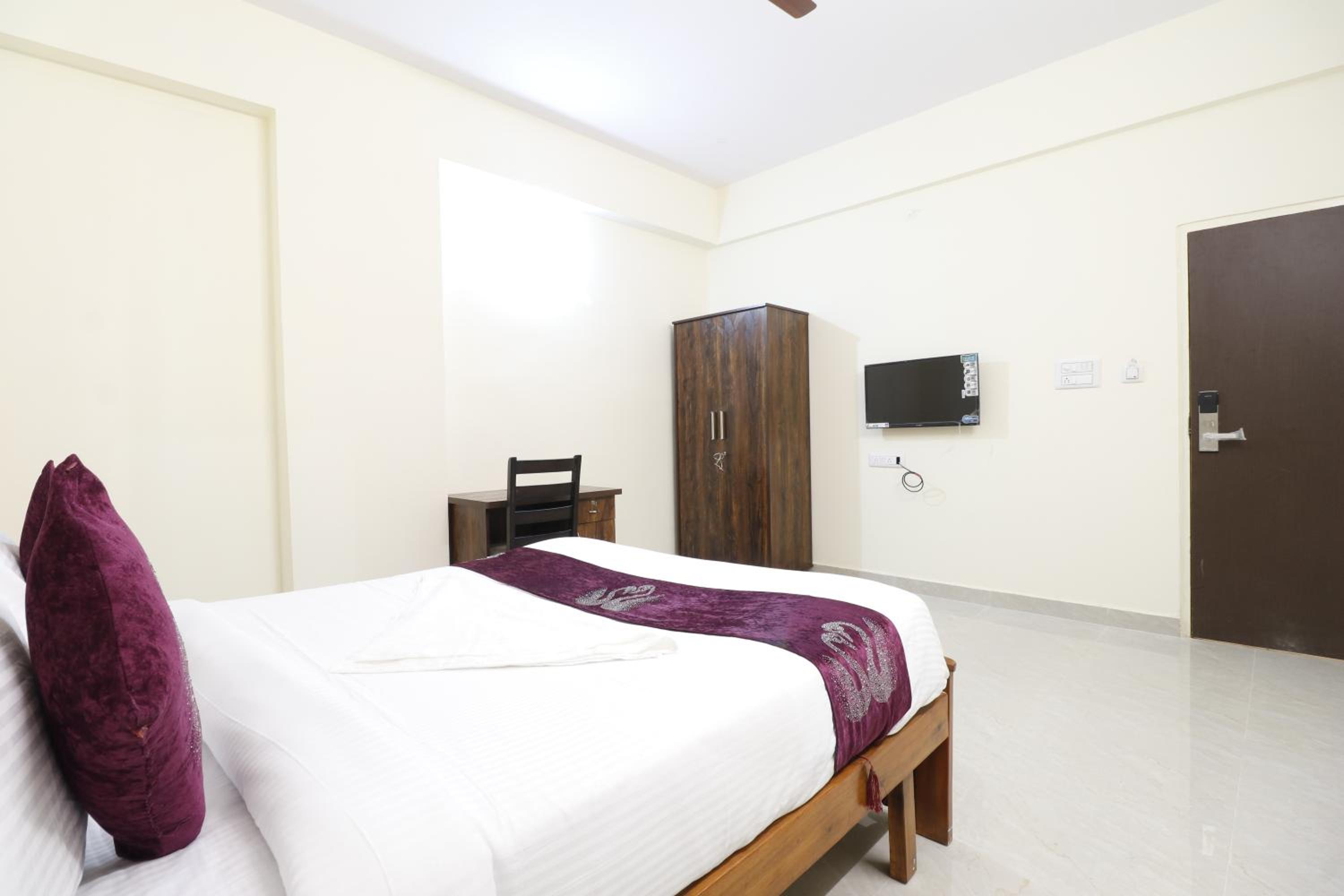 Experience a luxurious stay at Kings Palace Manyata in Bangalore. Indulge in modern amenities such as free WiFi, room service, and a 24-hour front desk. The non-smoking property offers comfortable rooms with a flat-screen TV, air conditioning, and free toiletries. Conveniently located near Commercial Street and Chinnaswamy Stadium, with Bangalore Palace and Cubbon Park just a short drive away. Enjoy a relaxing evening on the terrace, dine at the on-site restaurant, and make use of the free private parking. Book now for a memorable stay in Bangalore!