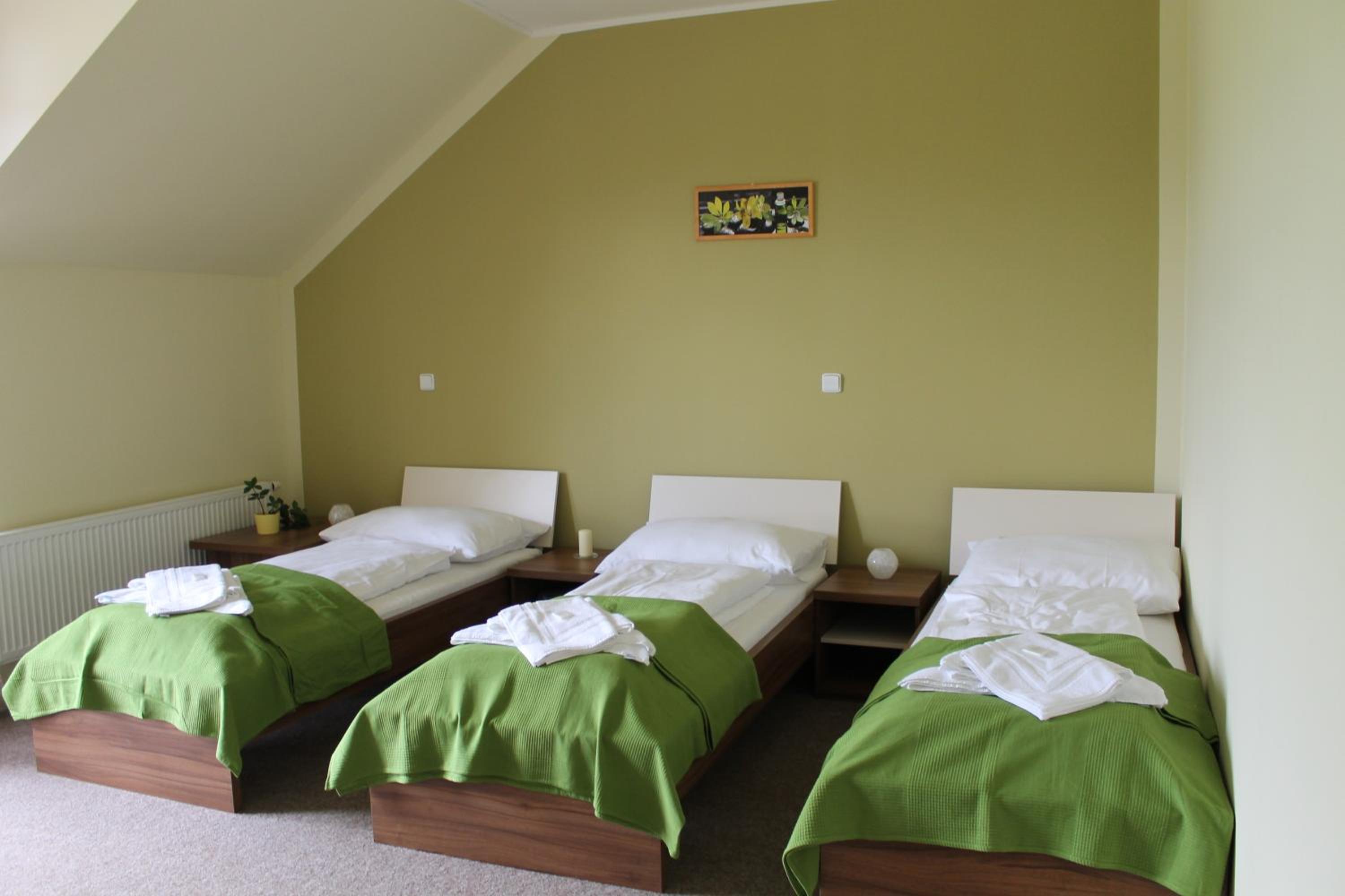 Příjemný personál, útulné a čisté pokoje, parkování u hotelu.
