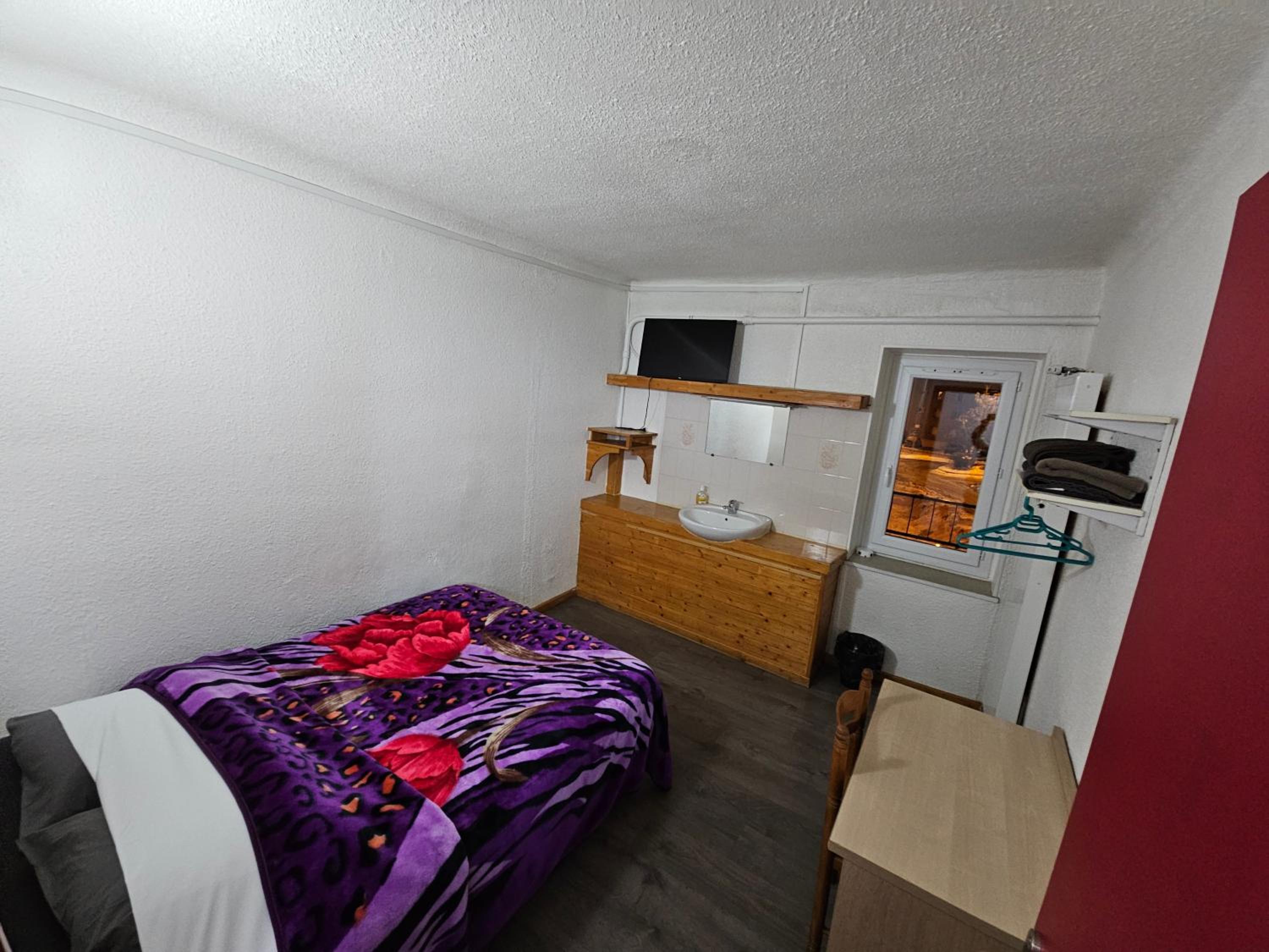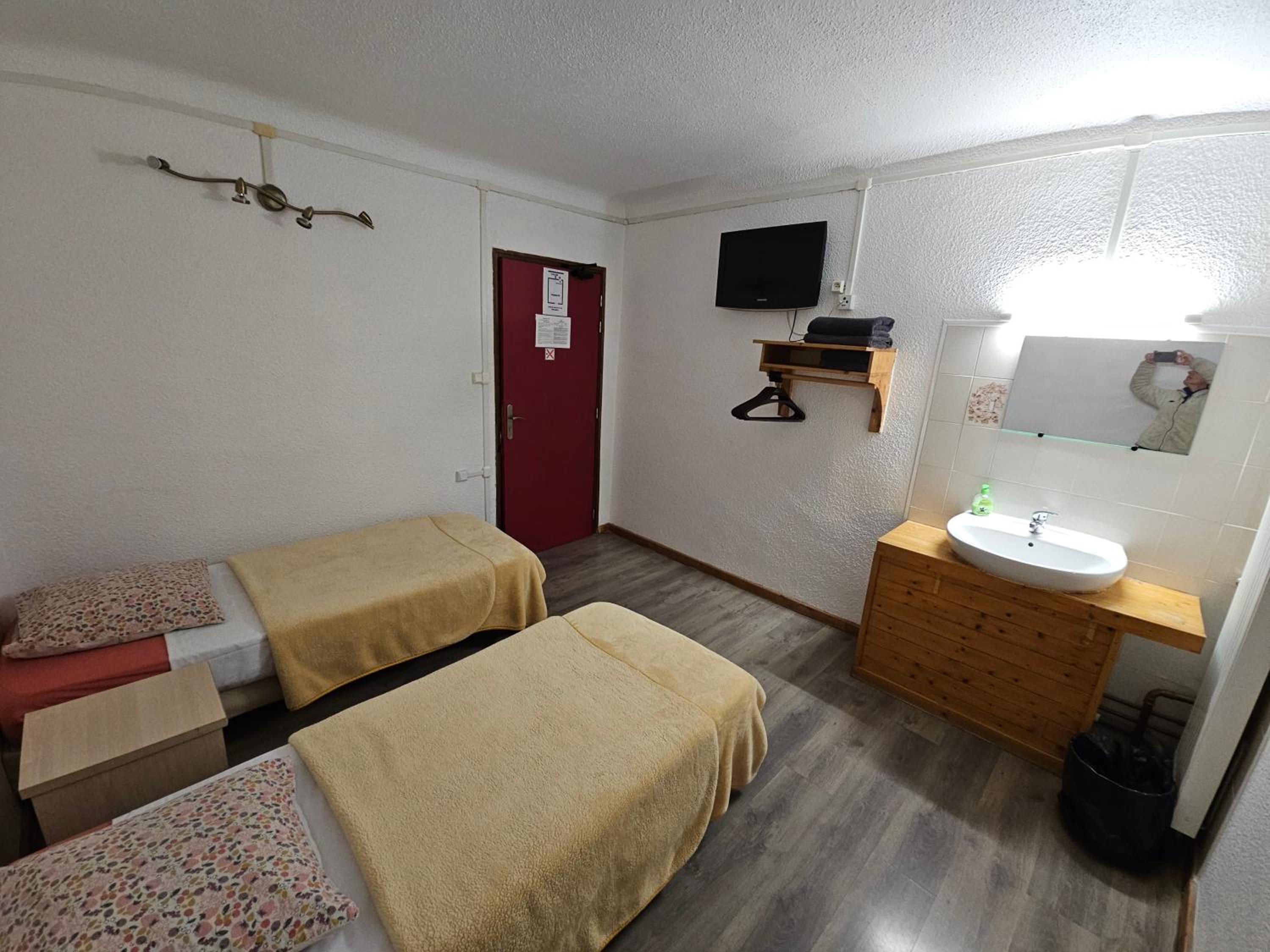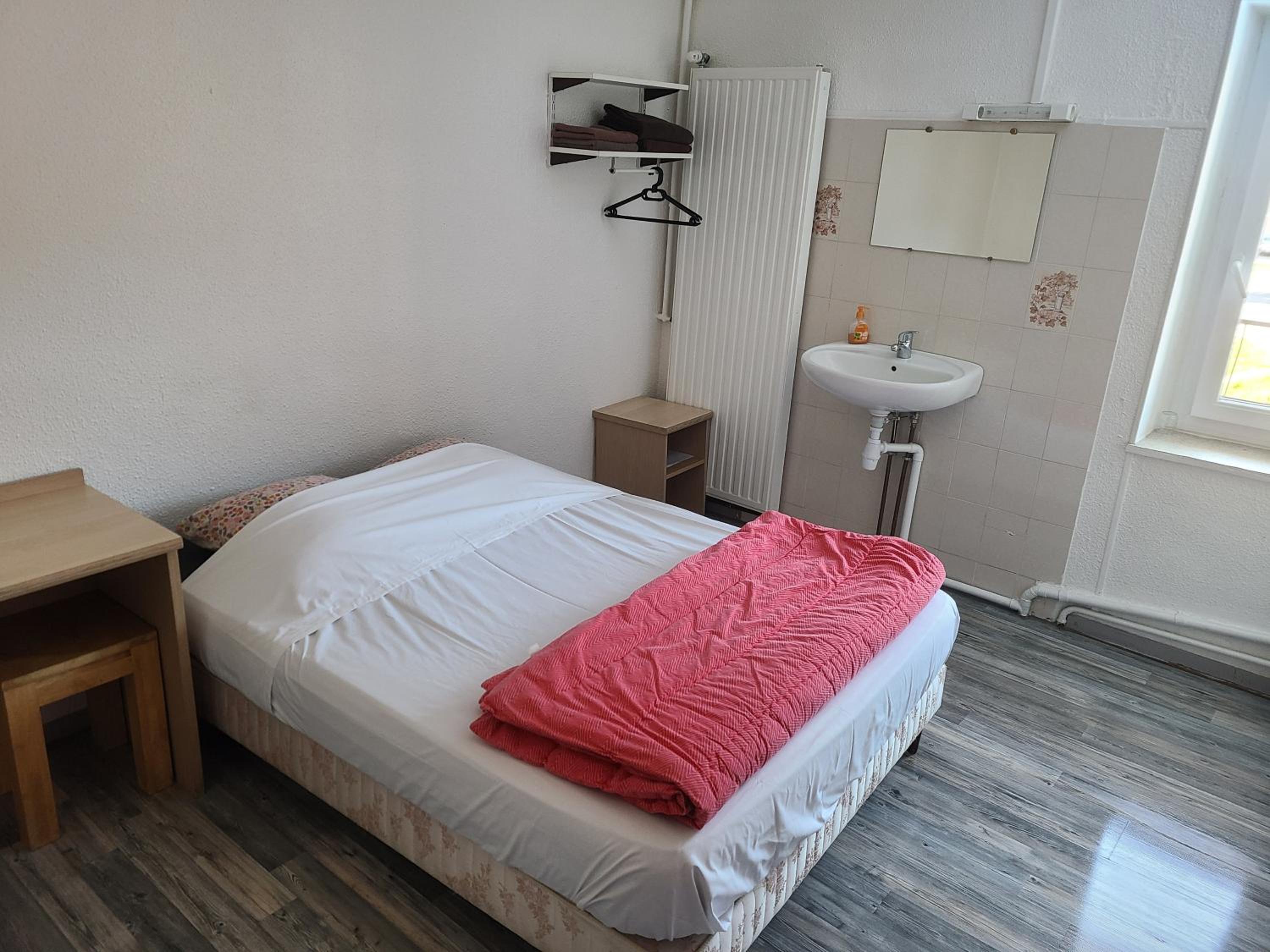 Toilettes et SdB sur le palier, pas de couette, chambre à la déco vieillotte et spartiate