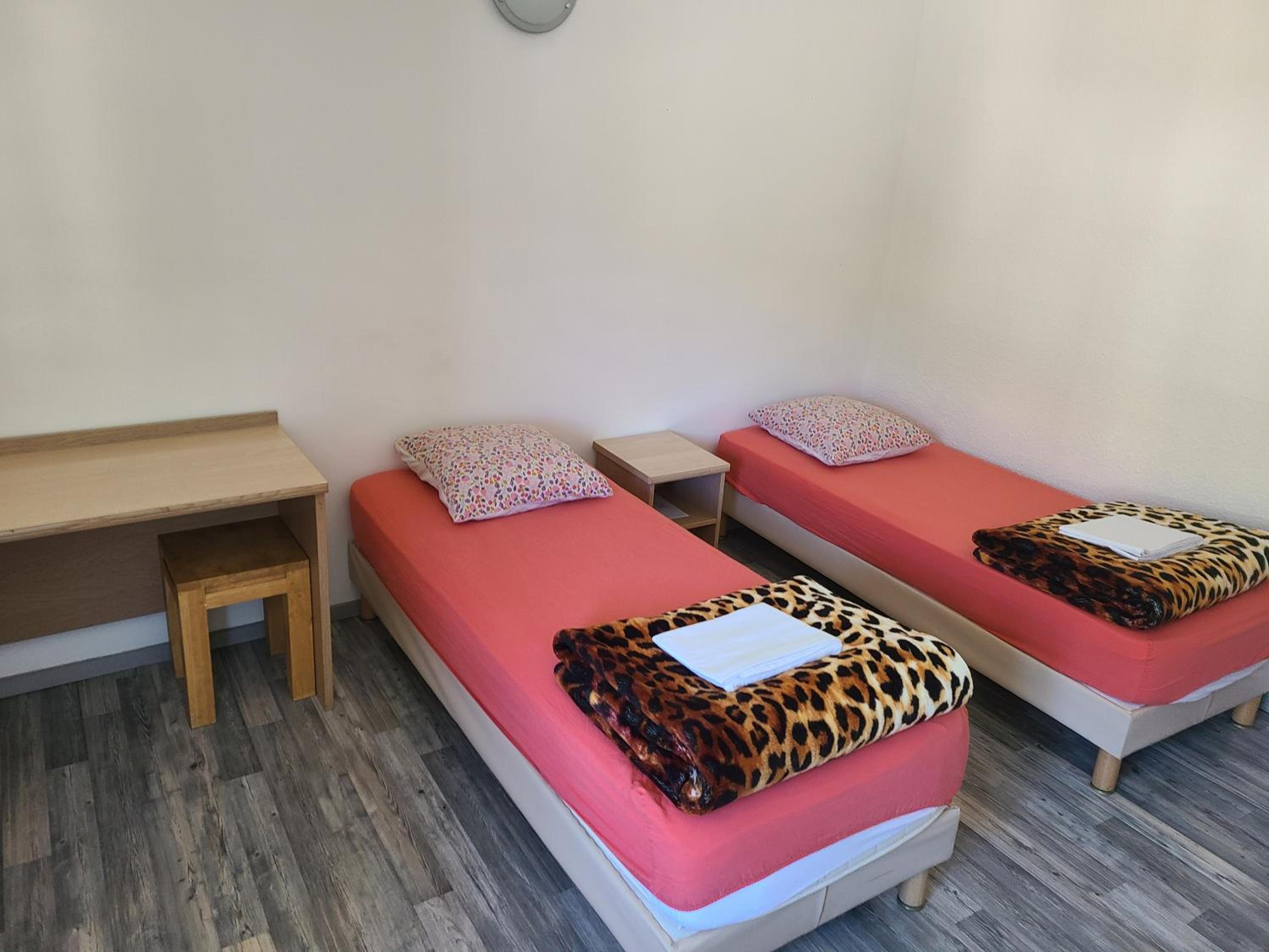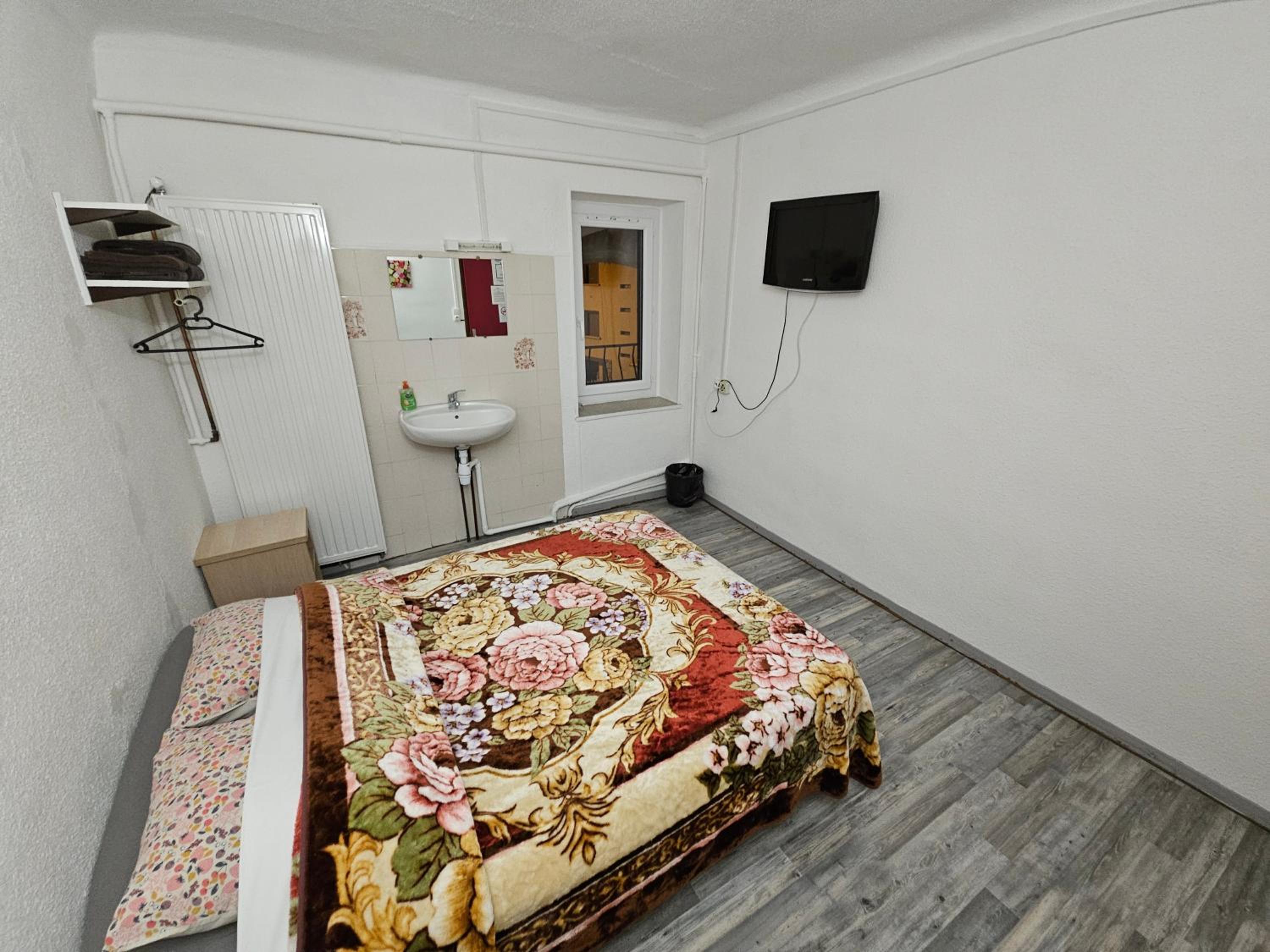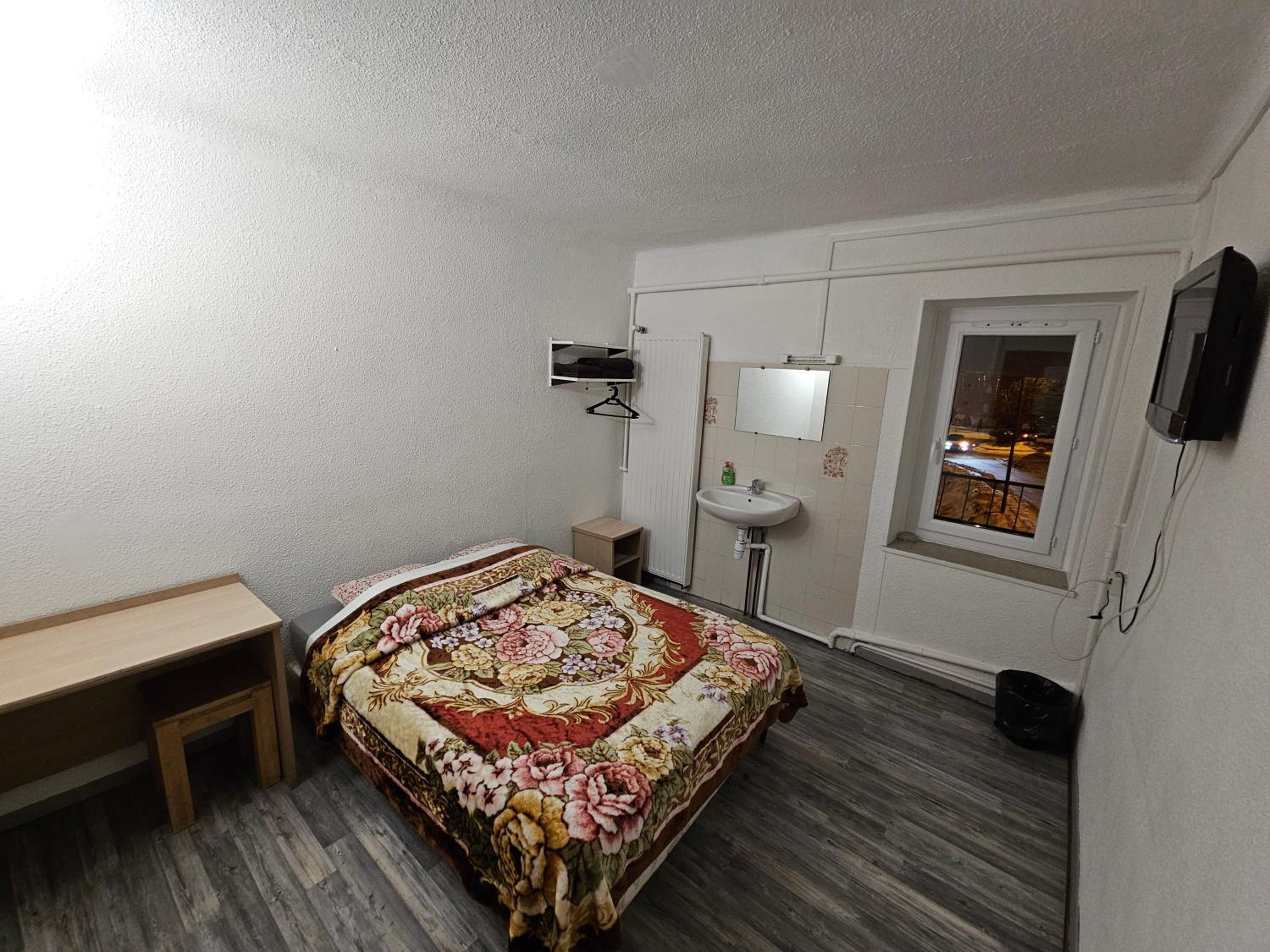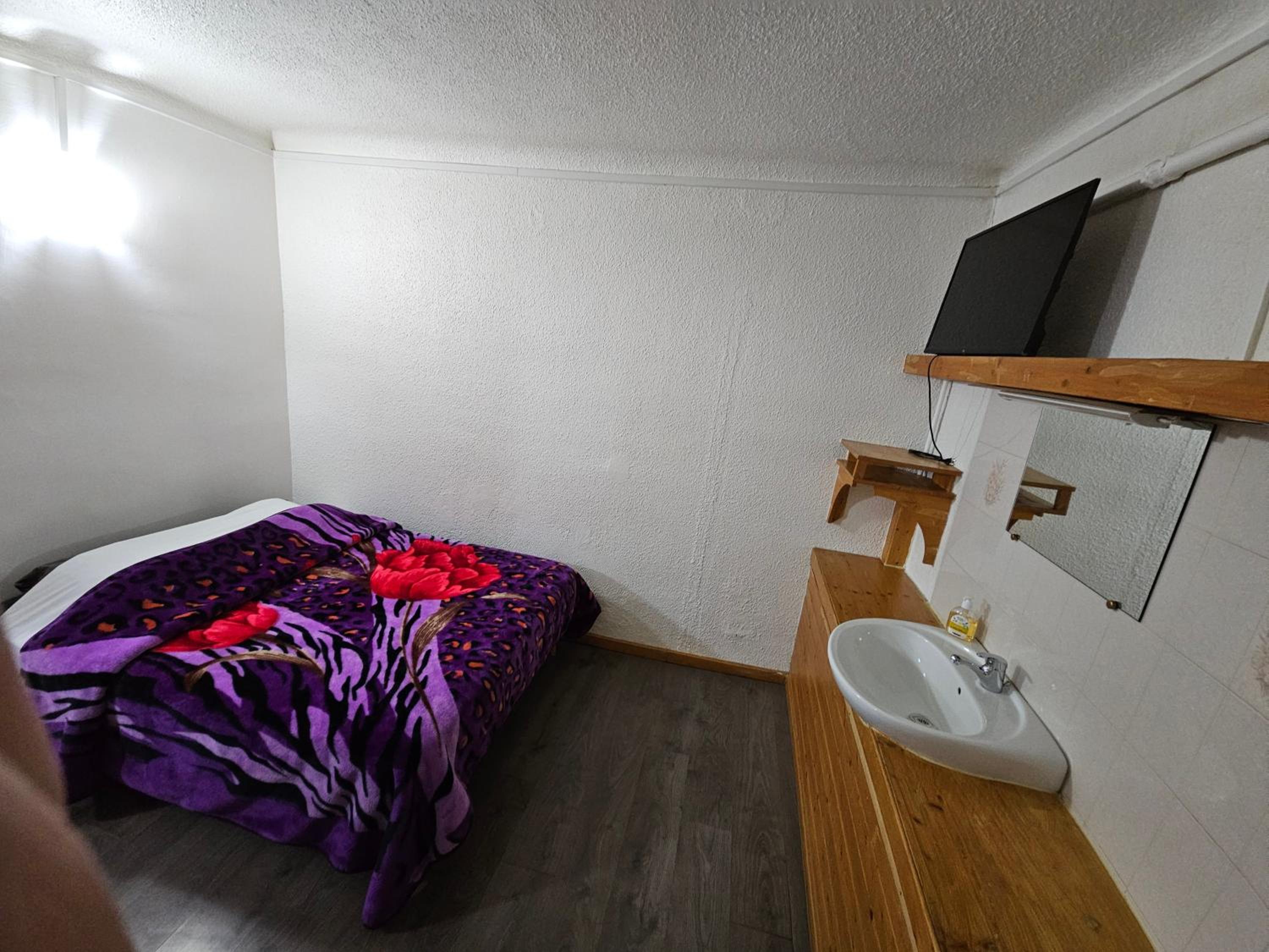 Toilettes et SdB sur le palier, pas de couette, chambre à la déco vieillotte et spartiate