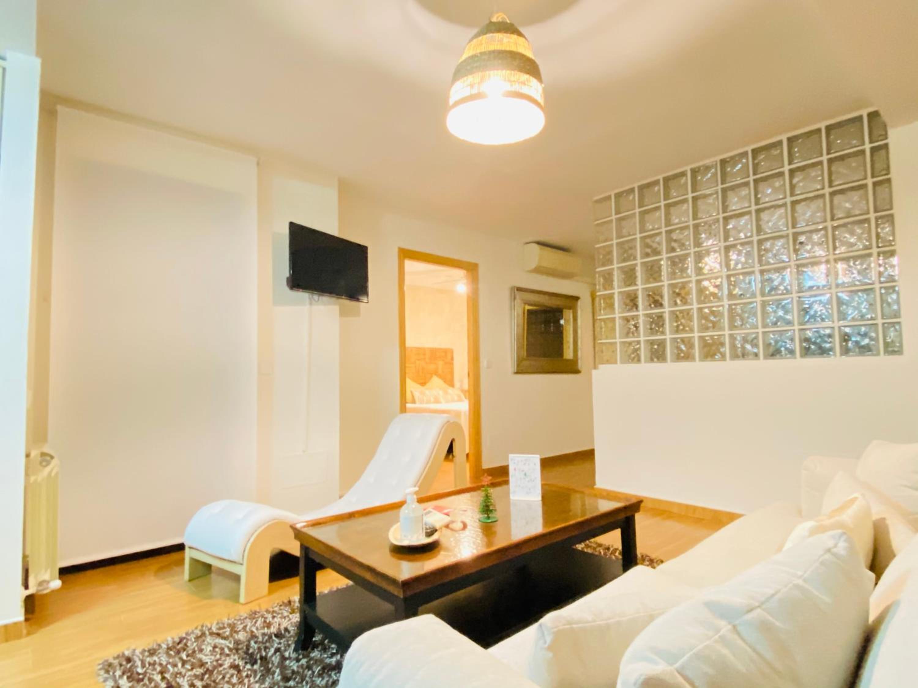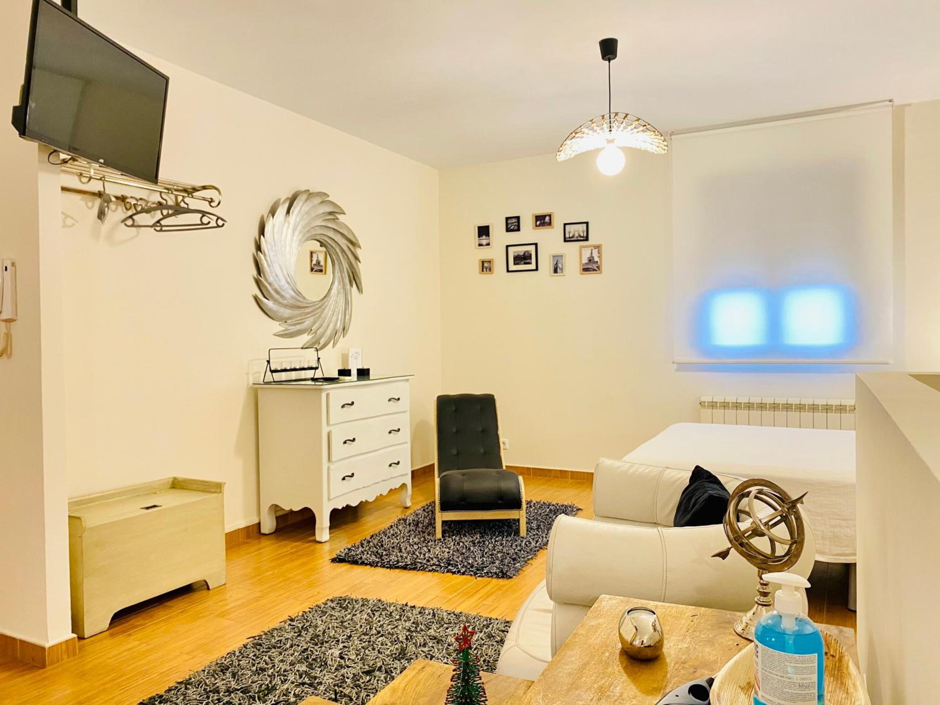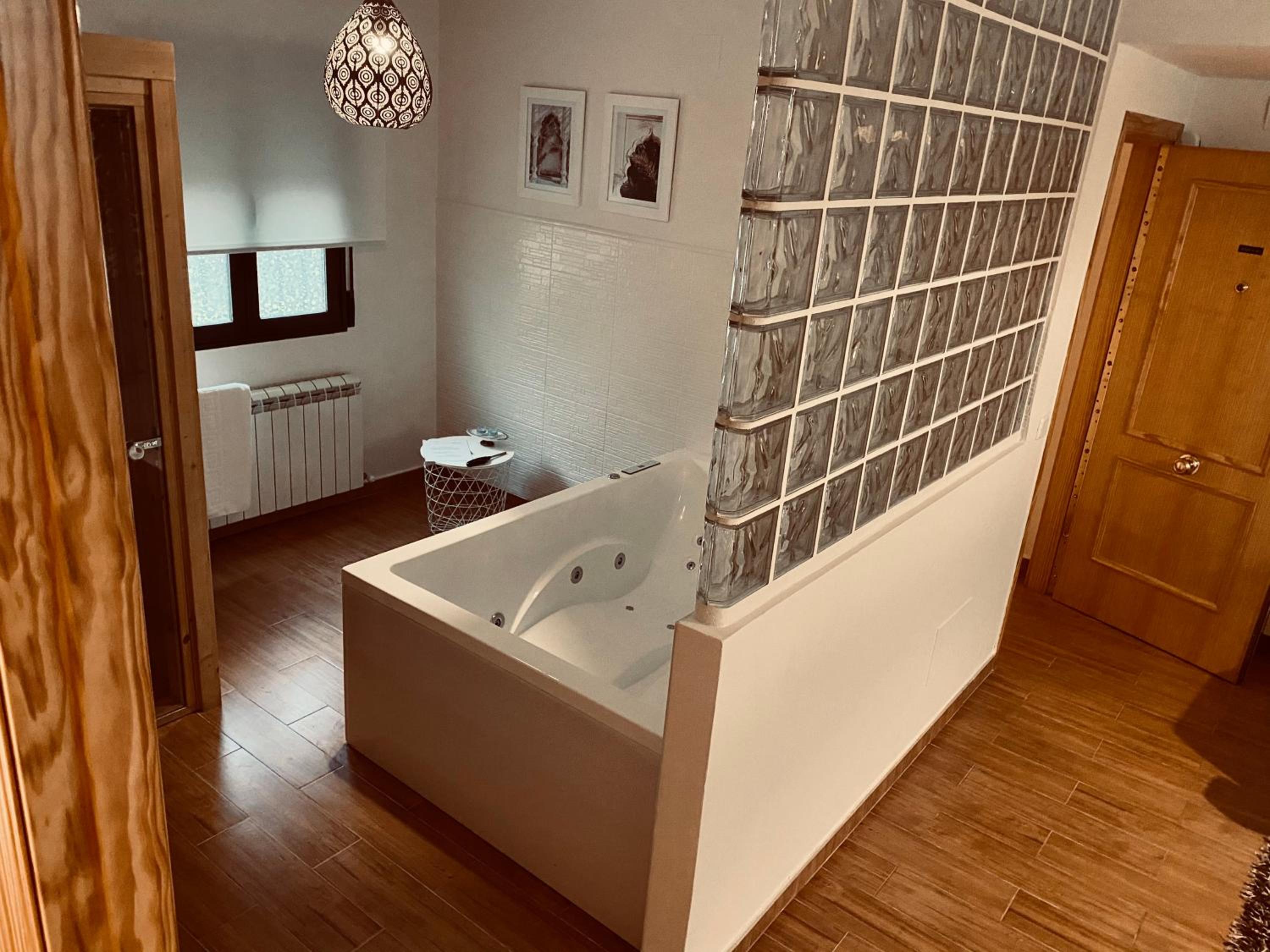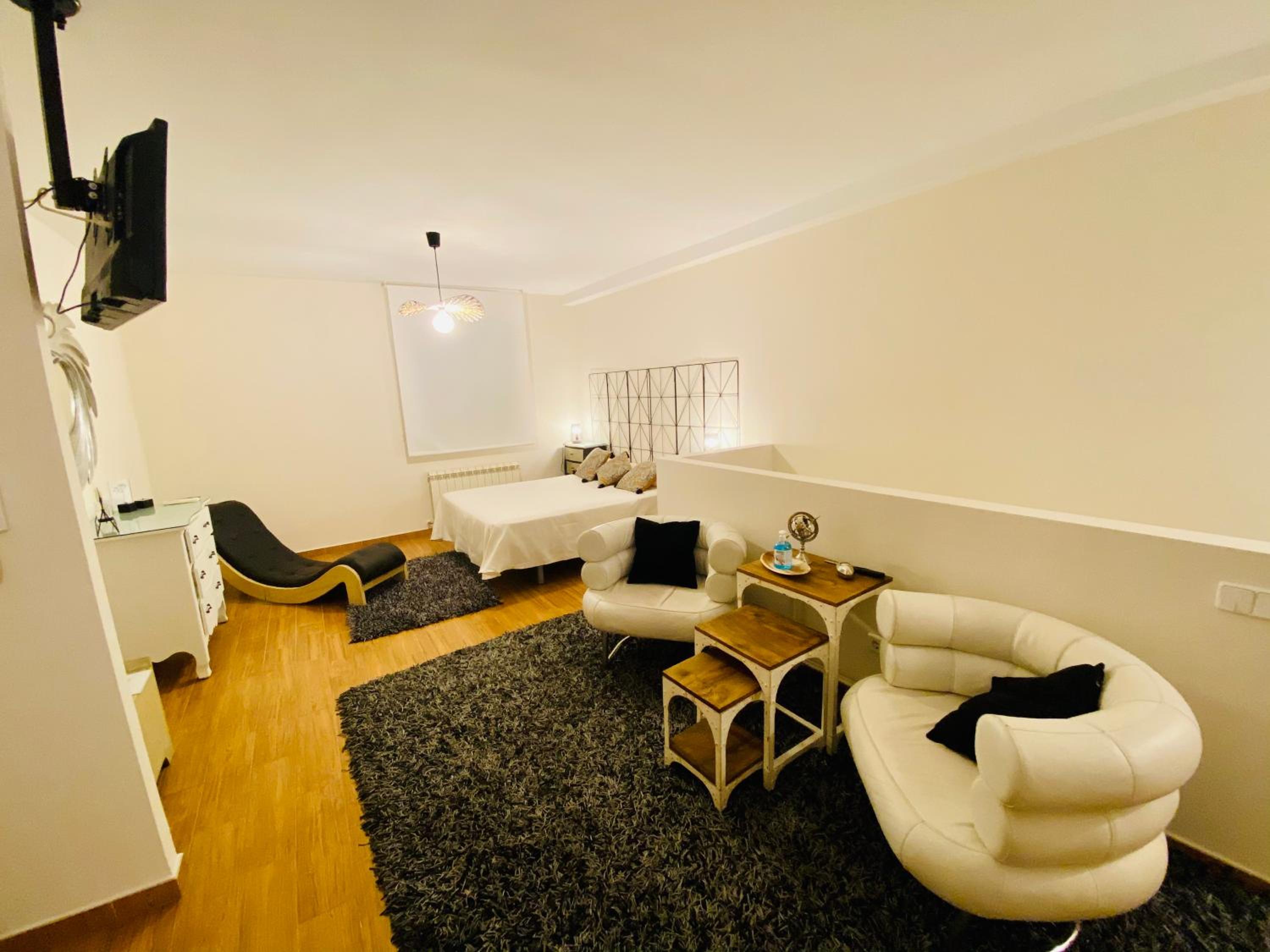 Indulge in luxury at Chinchonspa with spacious suites featuring a private hot tub and sauna in each suite. Enjoy the comfort of a king-size bed, air conditioning, and a well-equipped kitchen during your stay.