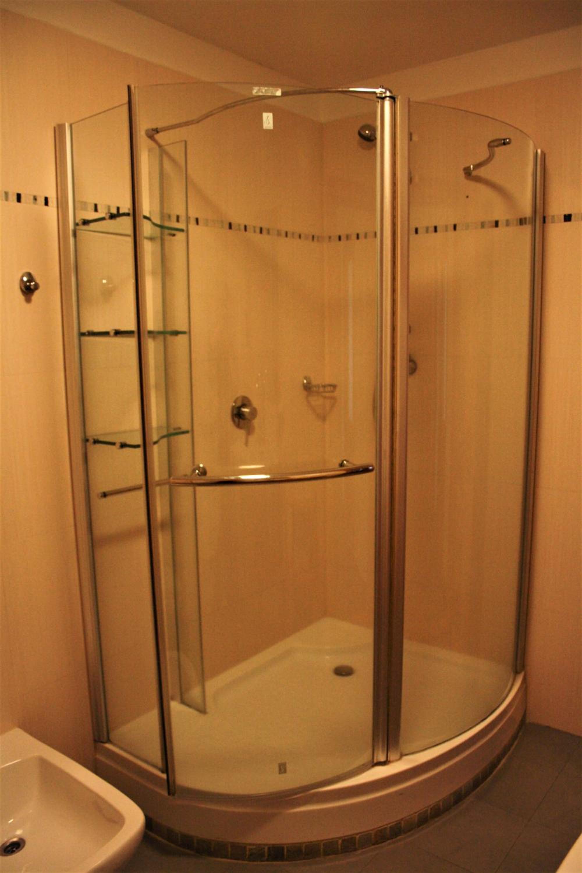 Pavučiny v koupelně a špinavá podlaha ve sprchovém koutě, podlaha šla lehce umýt.