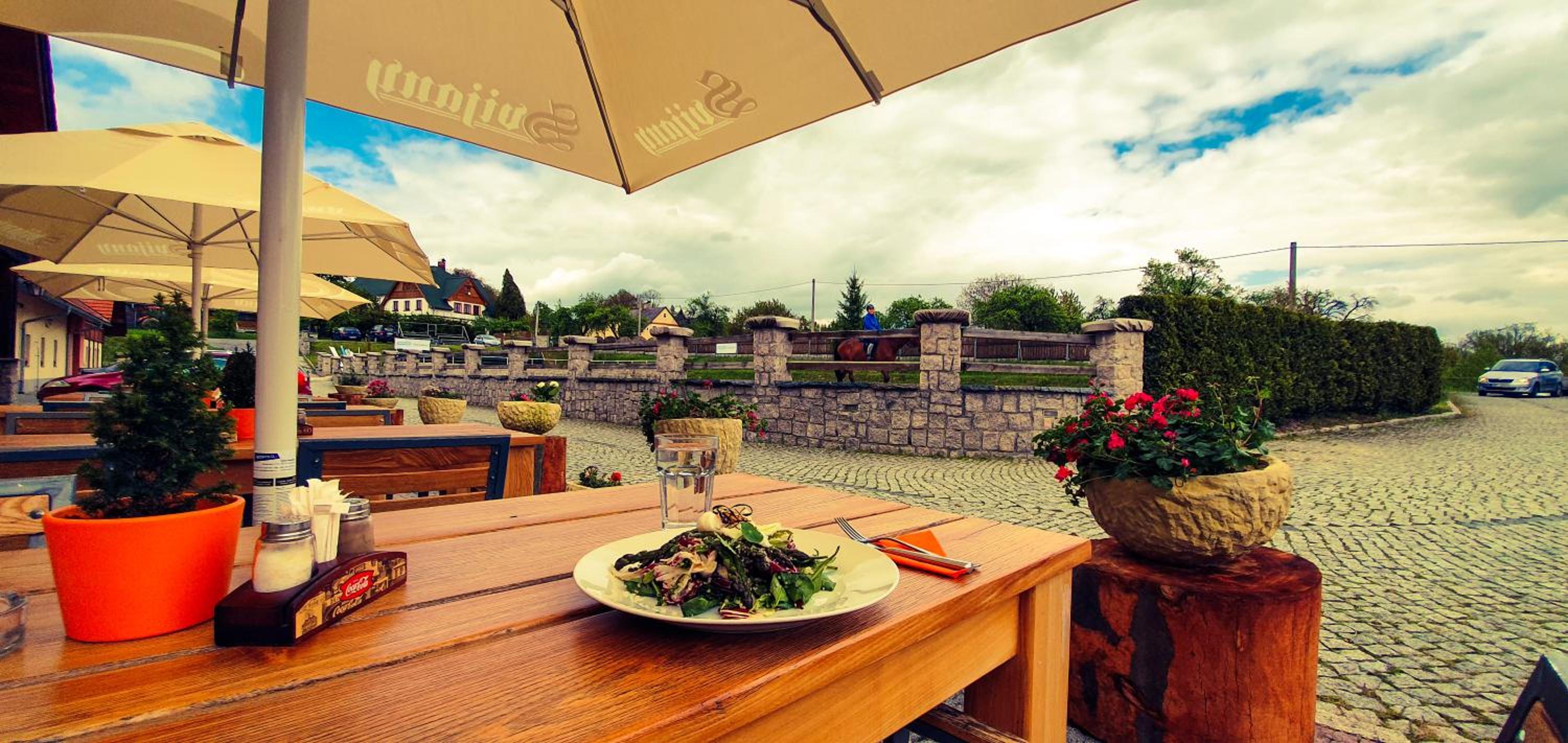 Indulge in Czech, Asian, and European delicacies at the hotel's restaurant, with the option to dine on one of the two summer terraces. Experience themed dinner nights and live music while overlooking horse training sessions or Mount Jested.