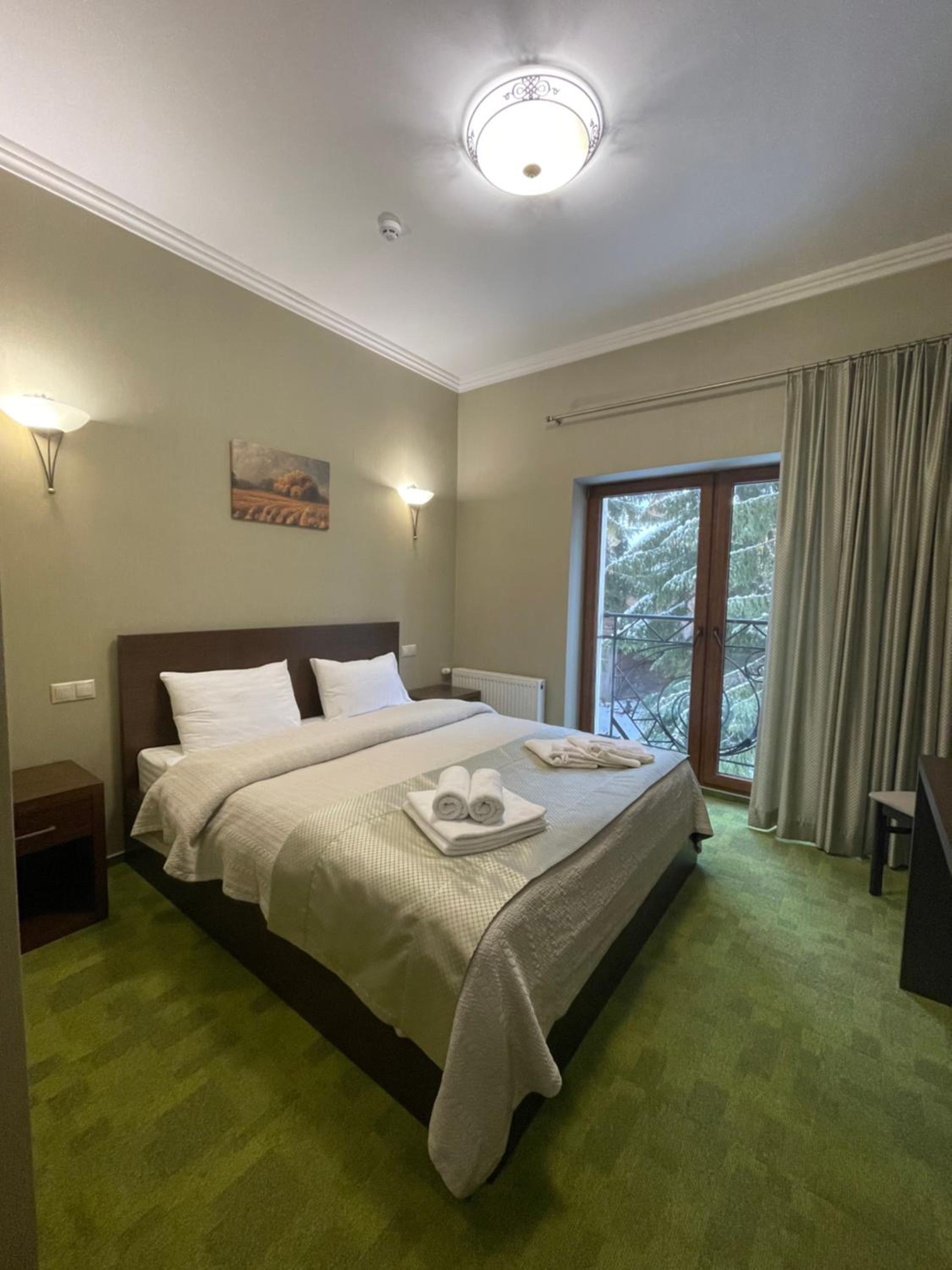 Чисто, хороші ліжка, душова кабінка, тв, теплий басейн. Адміністраторка, офіціанти - загалом персонал дуже класні ) також два класних рудих котики та песик, які живуть на території )