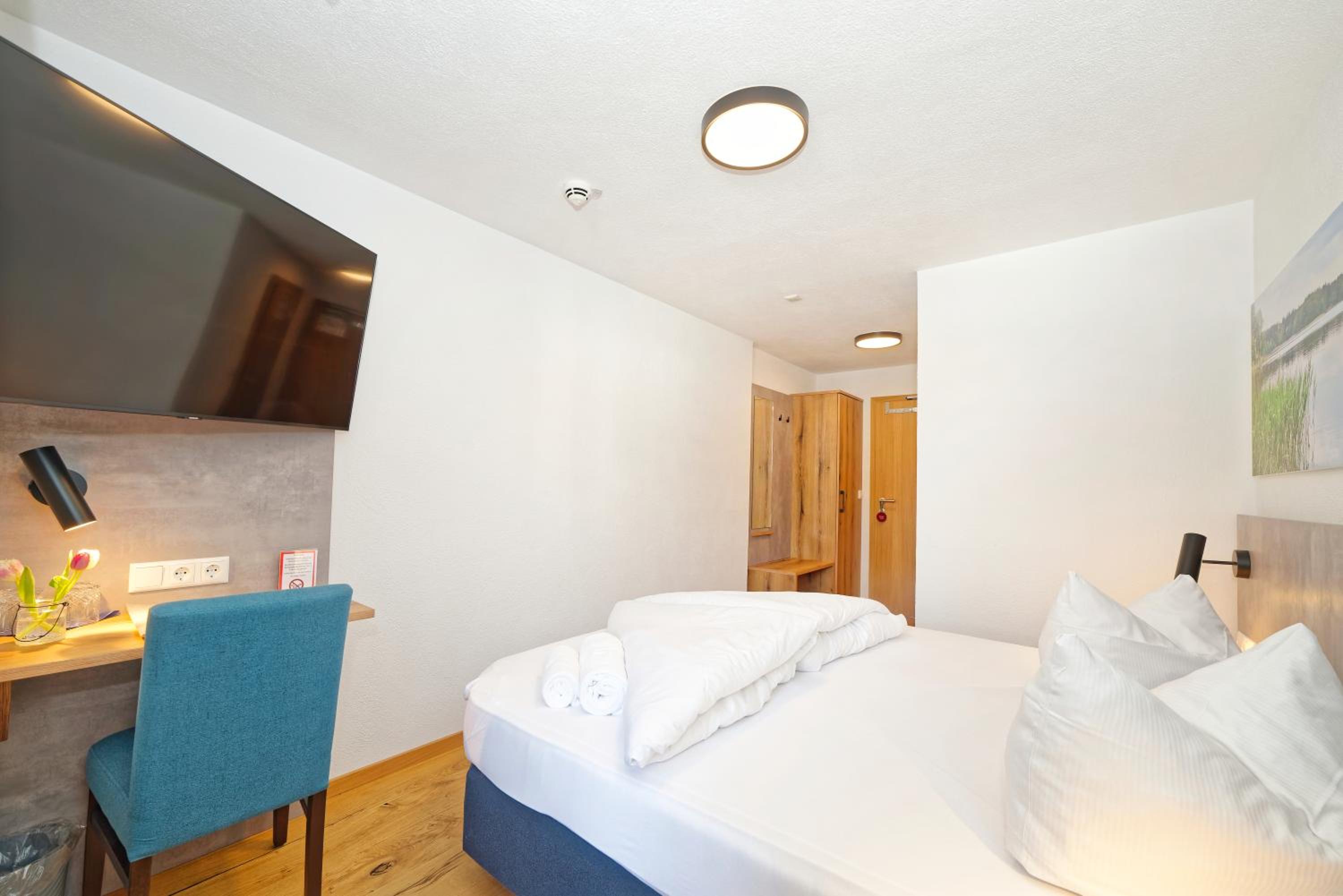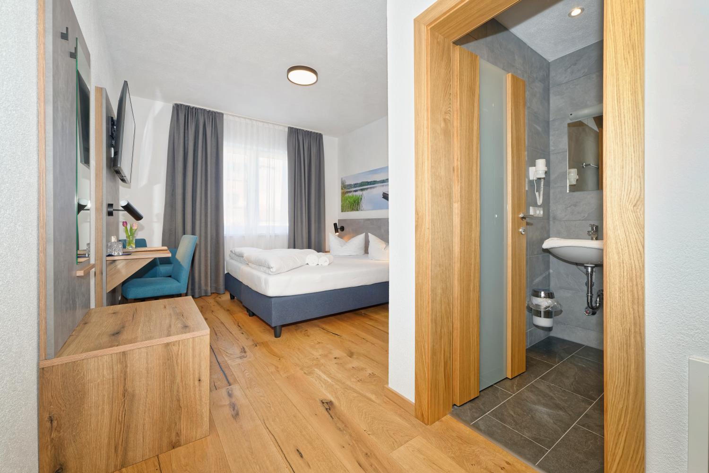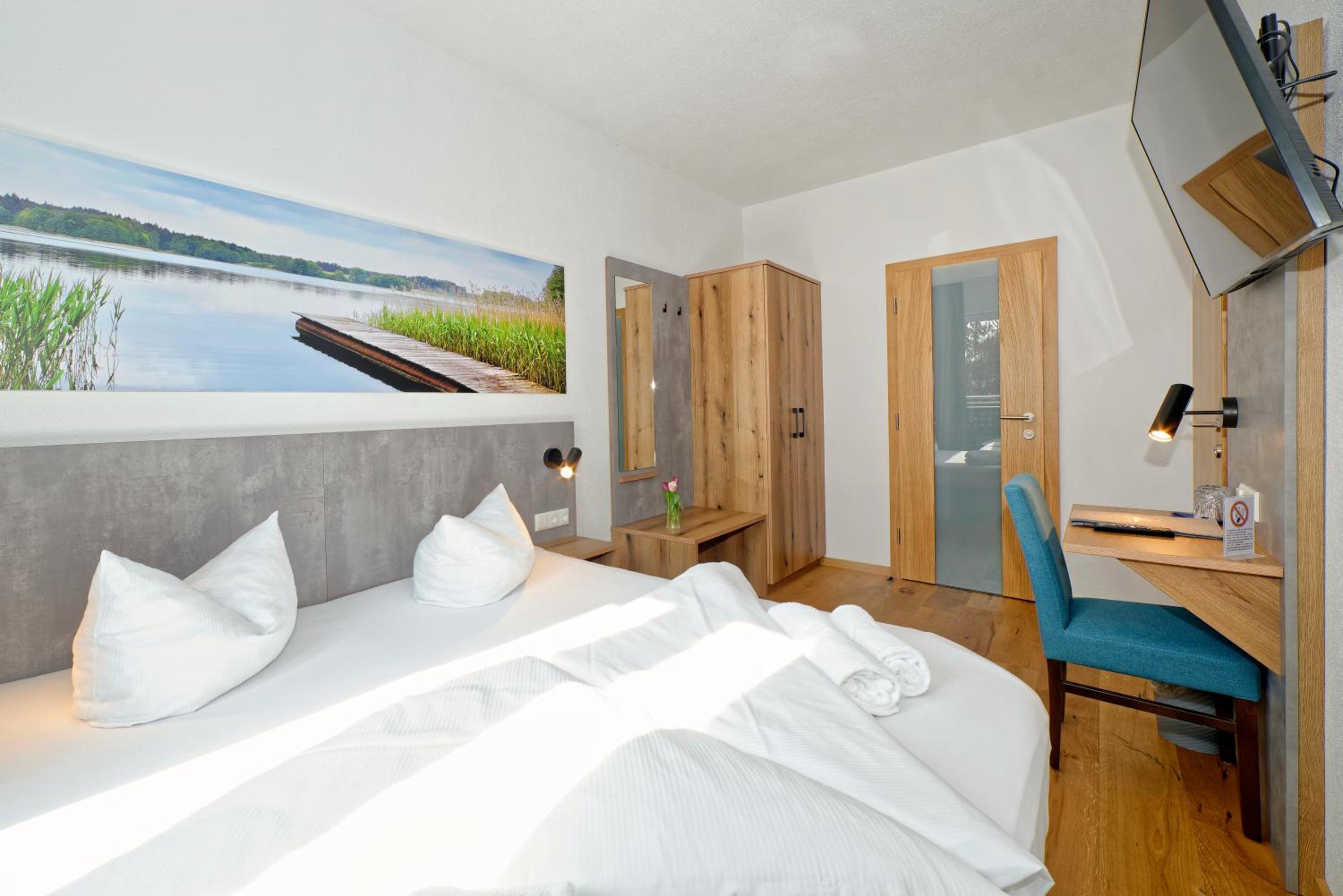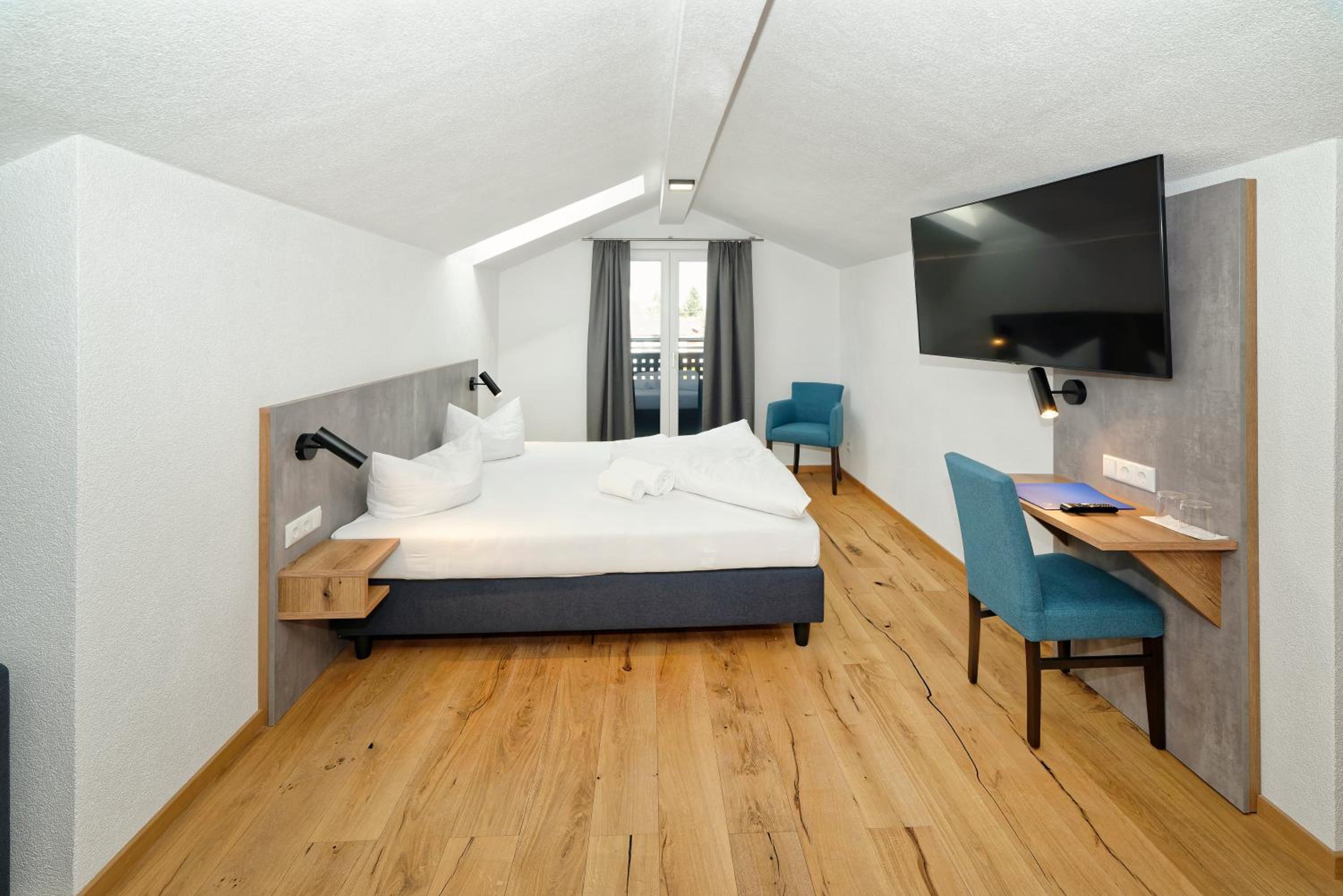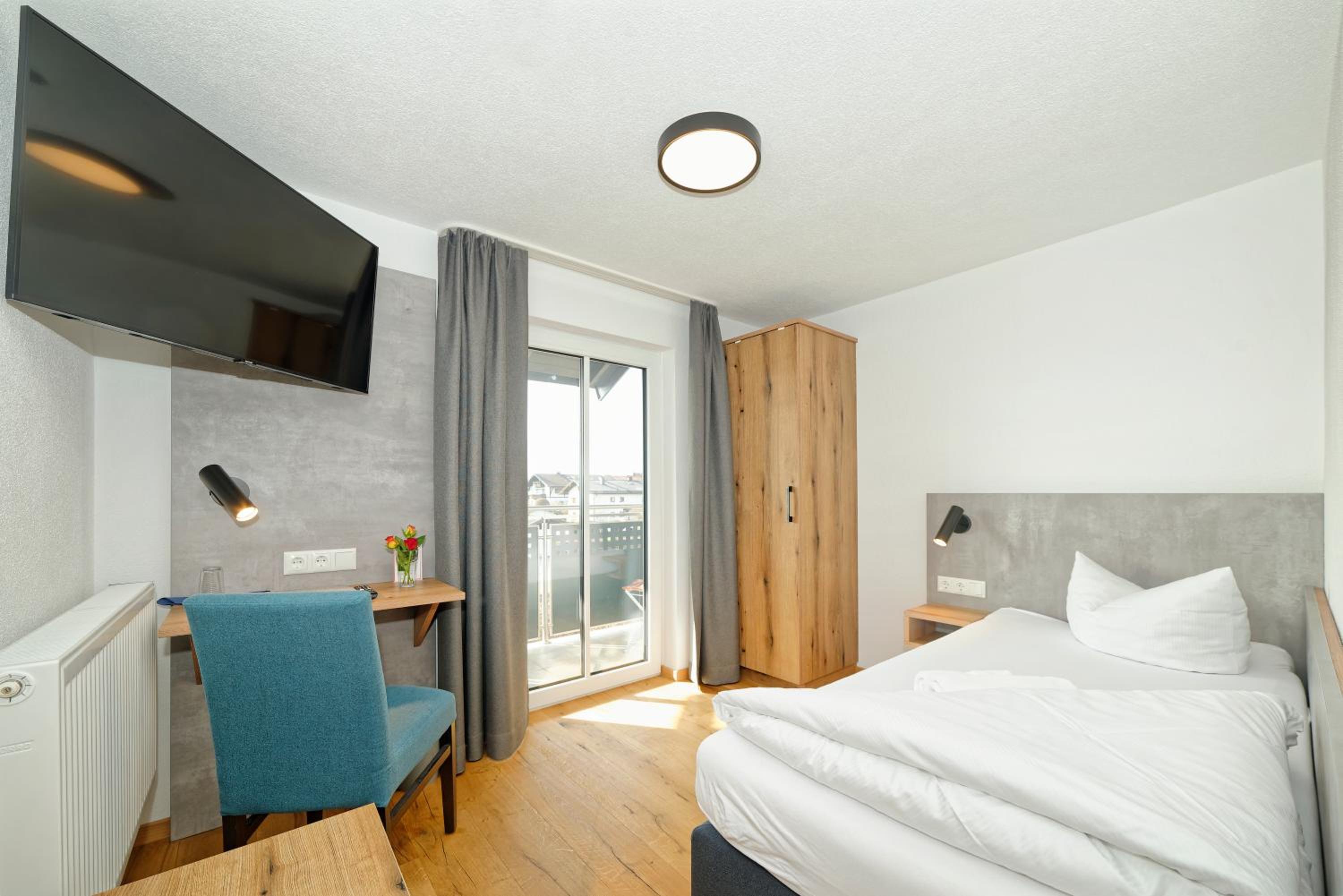 Chambre propre et fonctionnelle, au design sobre et contemporain. Nombreuses prises électriques (pas toujours le cas chez nous en France) et rangement suffisant. Nous avons apprécié le balcon avec table et chaises, le réfrigérateur à disposition des clients dans le couloir et le garage à vélo, plutôt vide en cette saison. Grandes terrasses extérieures. Personnel sympathique. Petit déjeuner FABULEUX. Hôtel très bien situé géographiquement (Chiemse à 4 km, Munich et Salzburg à 1h/1h30).