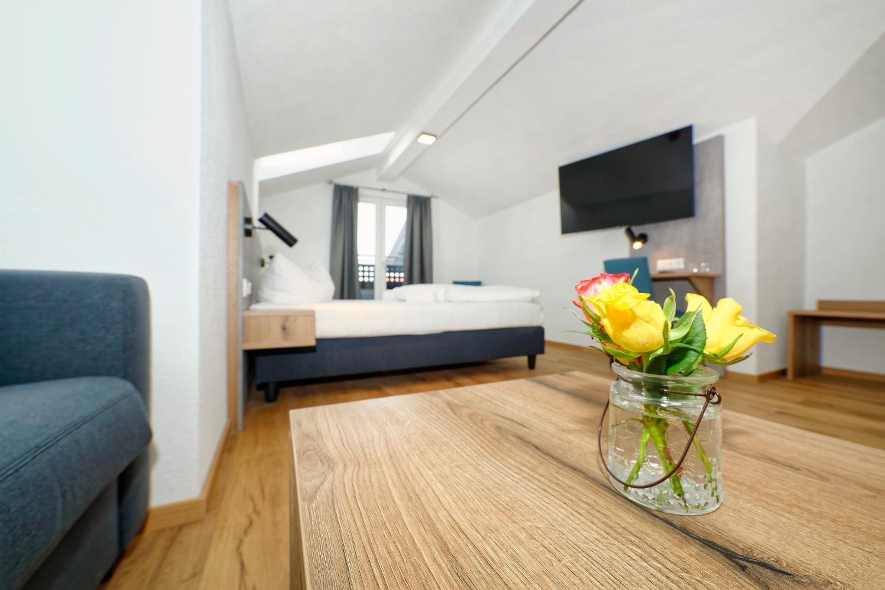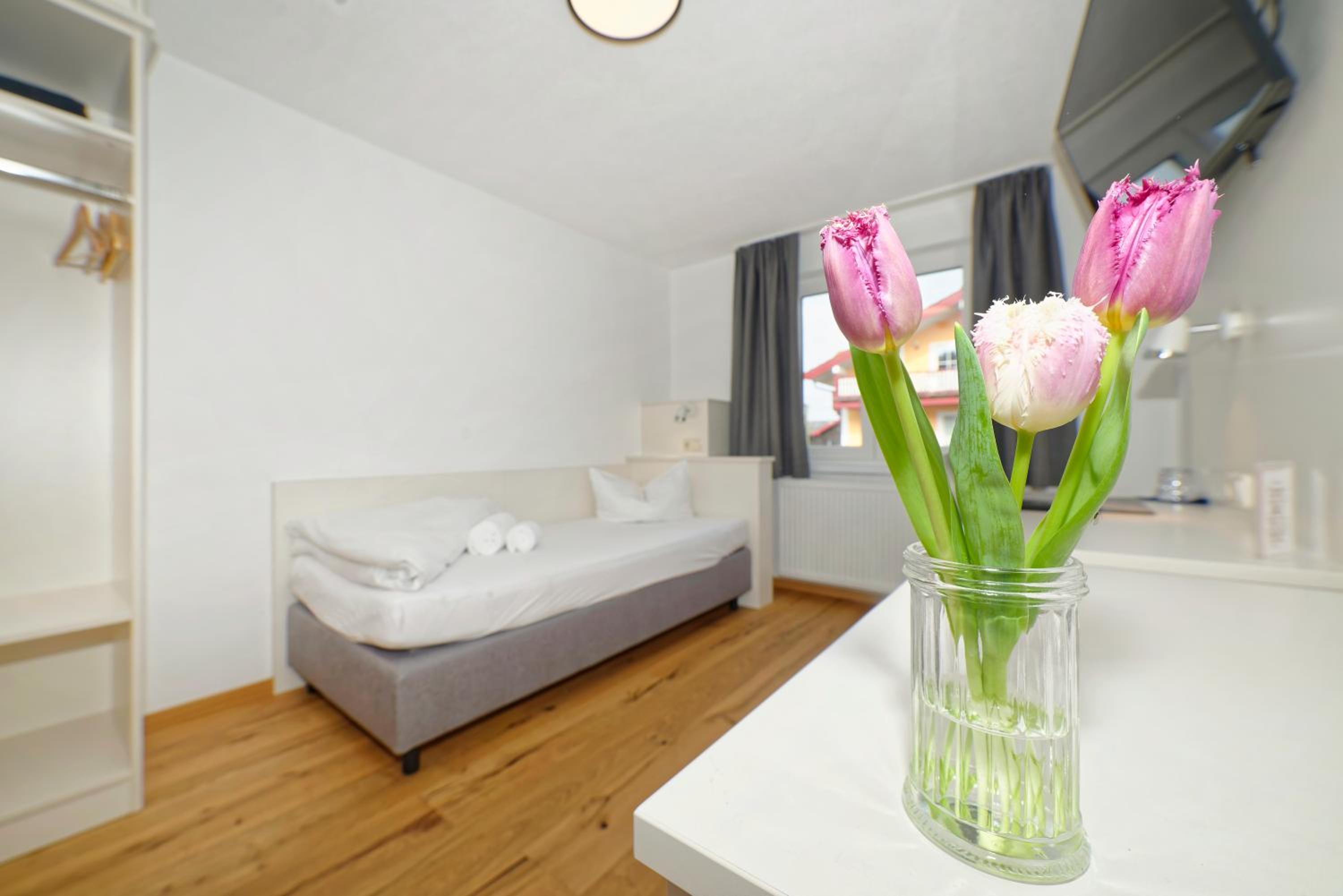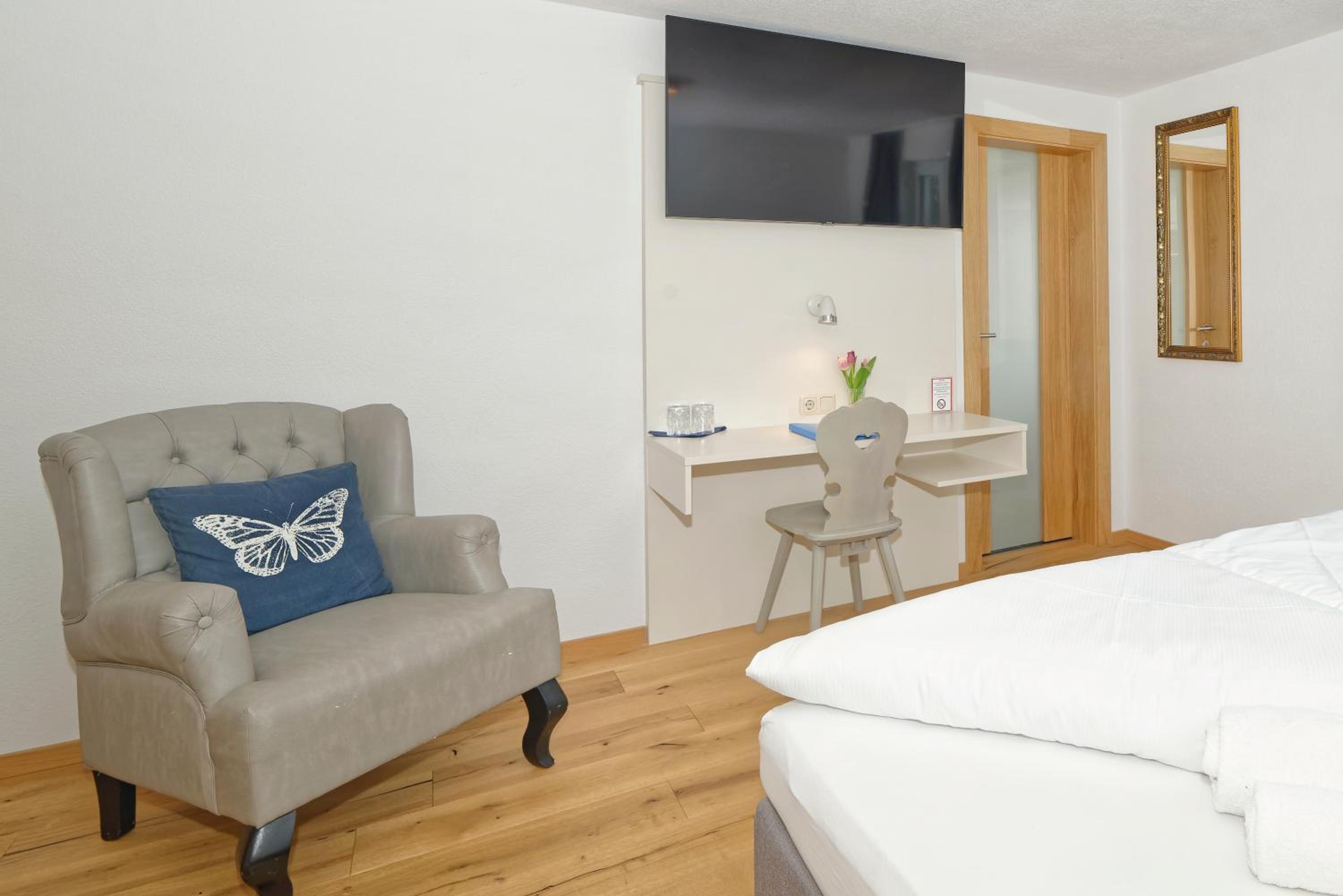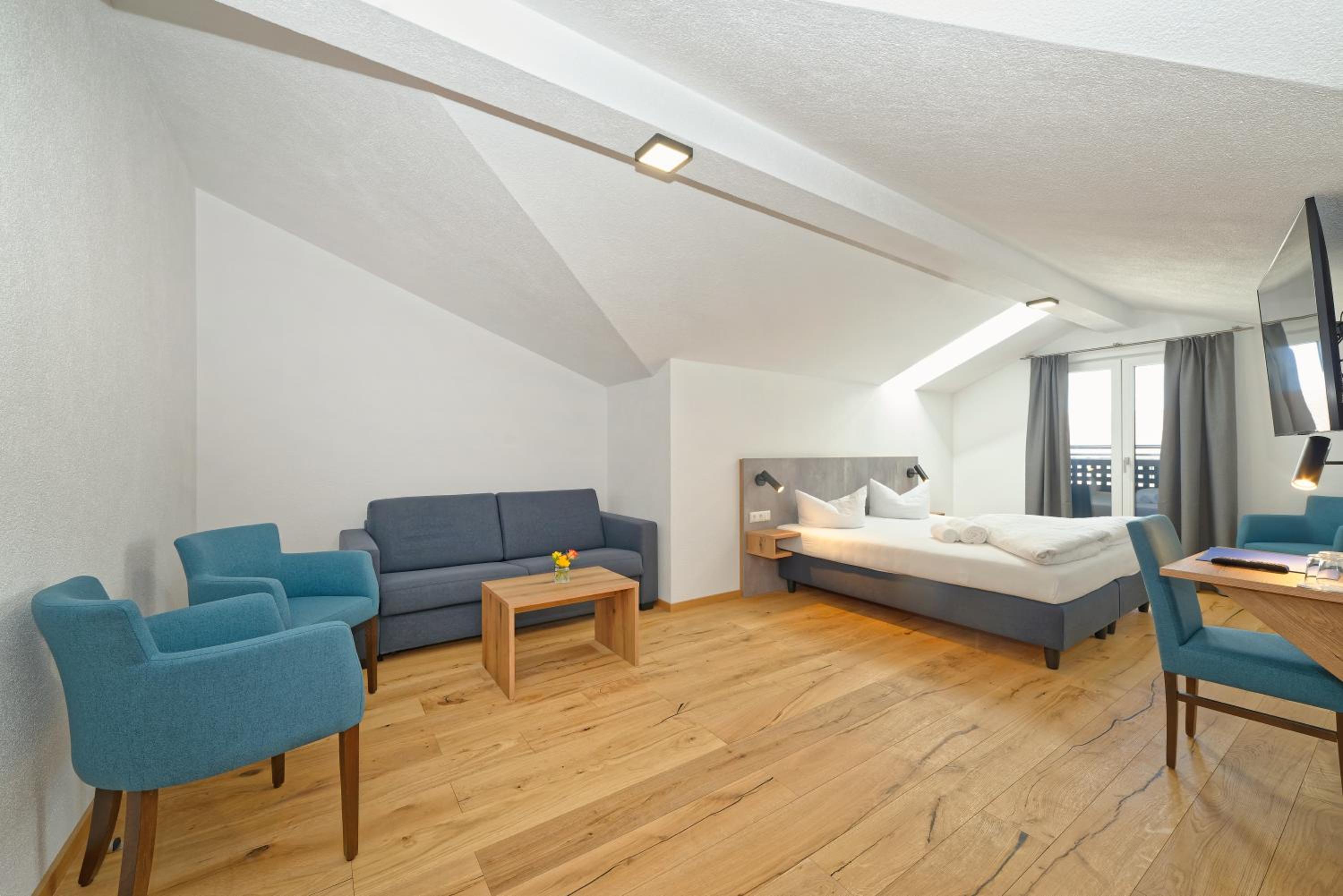 Chambre propre et fonctionnelle, au design sobre et contemporain. Nombreuses prises électriques (pas toujours le cas chez nous en France) et rangement suffisant. Nous avons apprécié le balcon avec table et chaises, le réfrigérateur à disposition des clients dans le couloir et le garage à vélo, plutôt vide en cette saison. Grandes terrasses extérieures. Personnel sympathique. Petit déjeuner FABULEUX. Hôtel très bien situé géographiquement (Chiemse à 4 km, Munich et Salzburg à 1h/1h30).