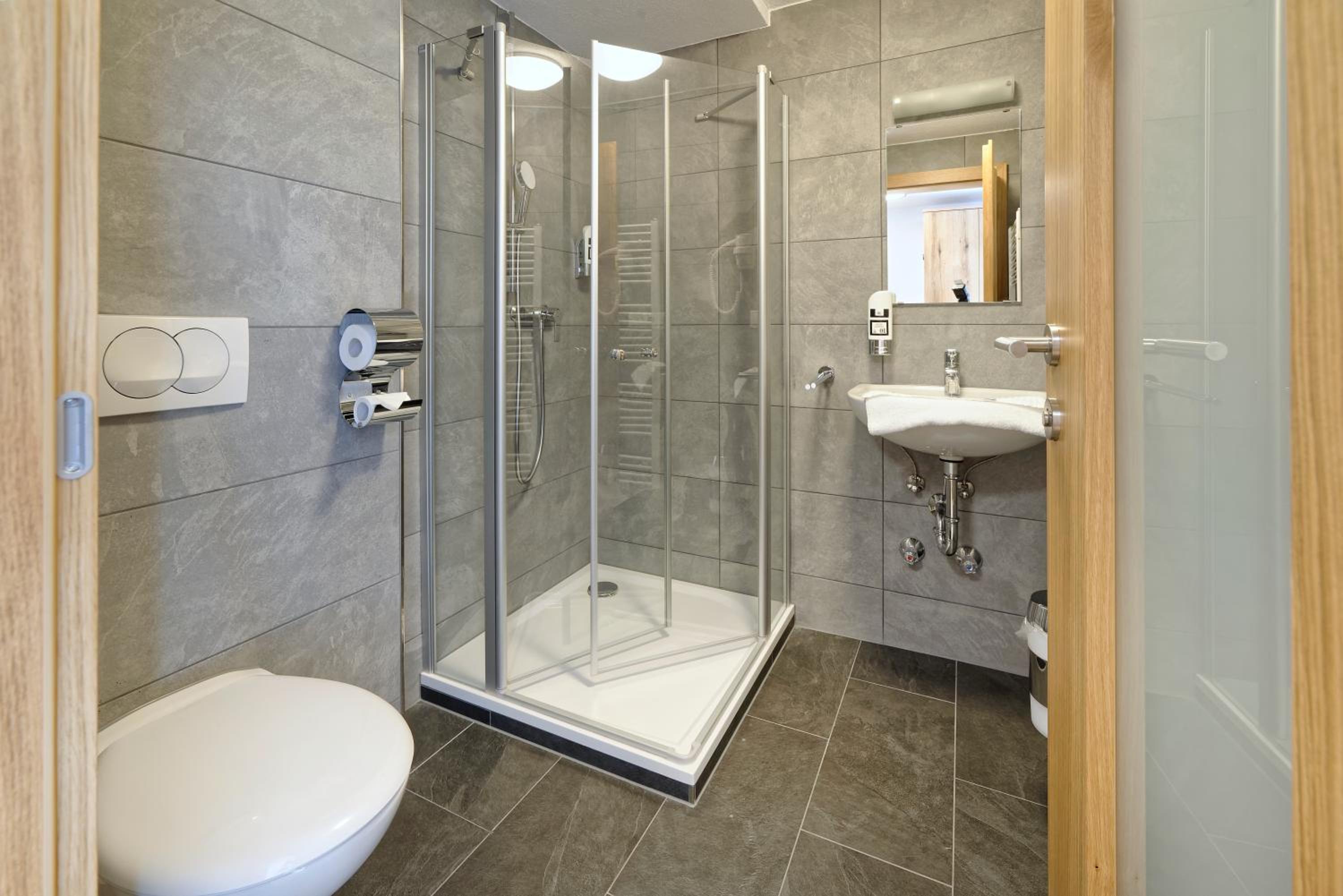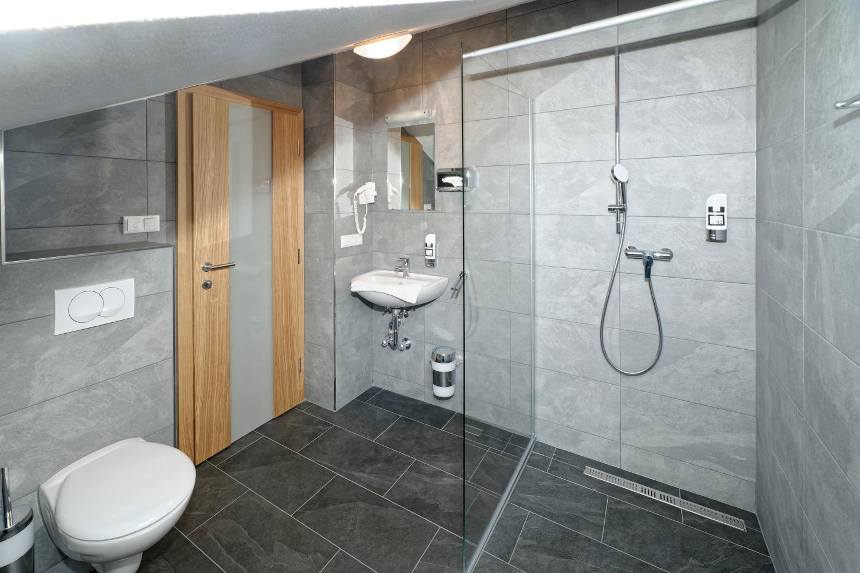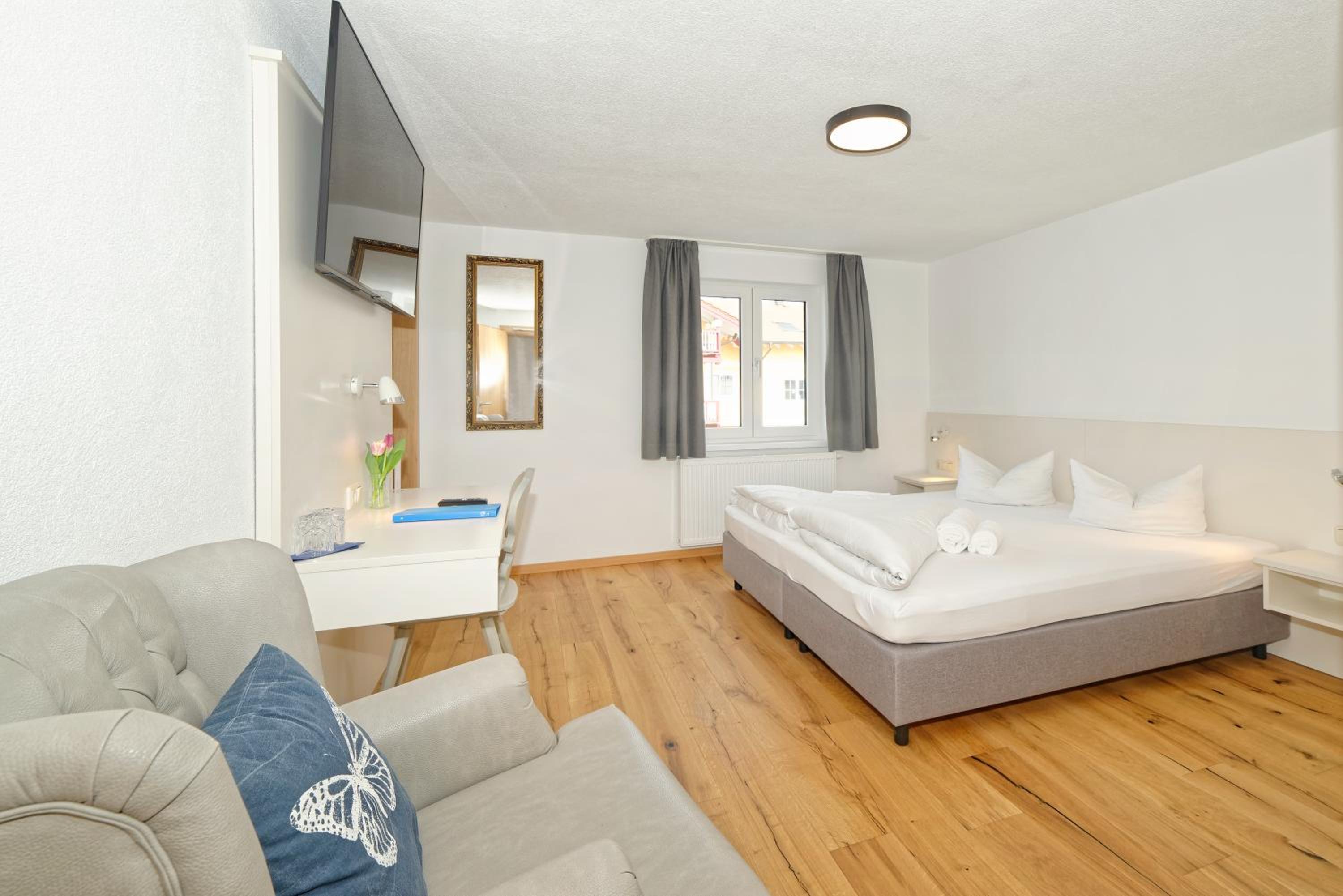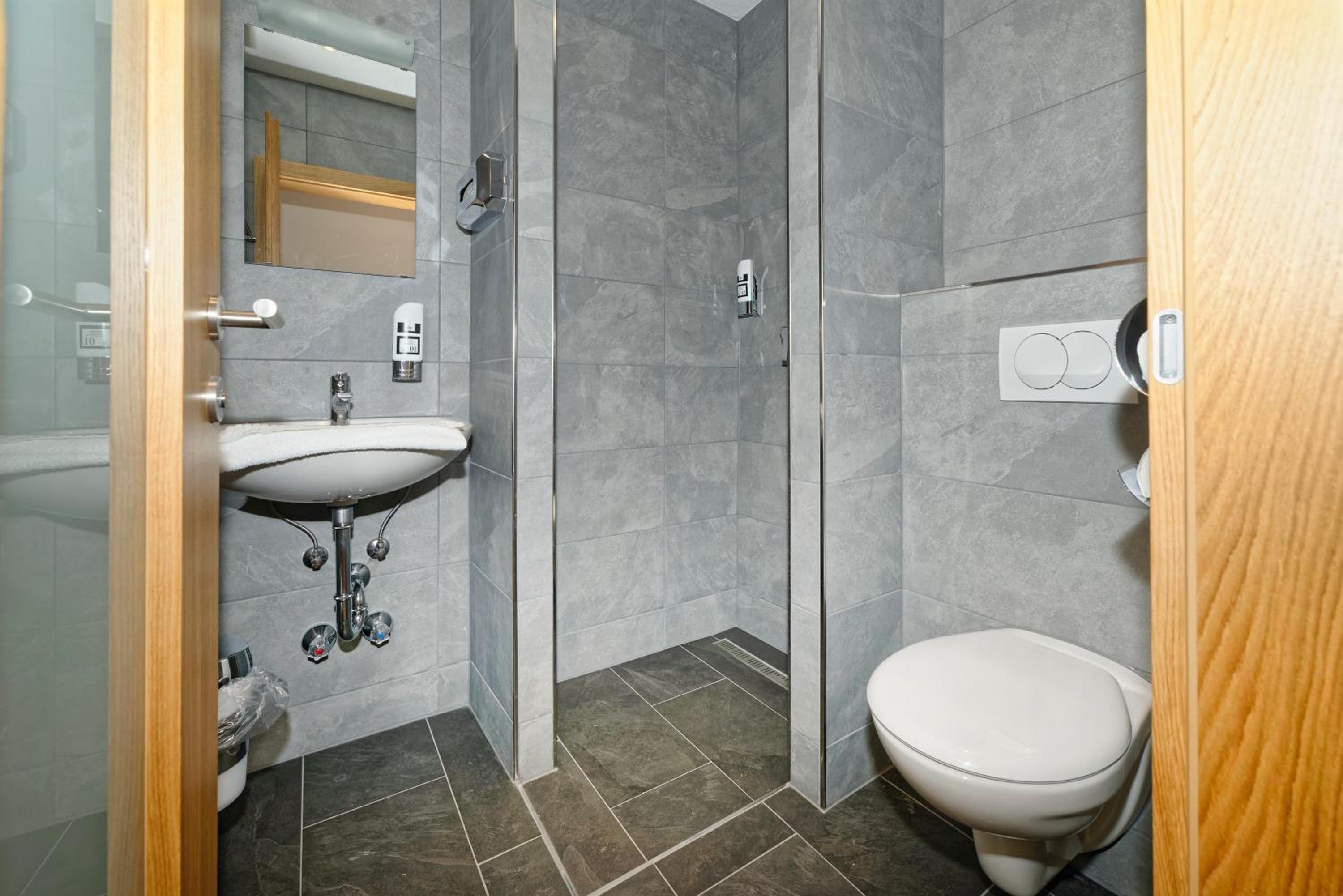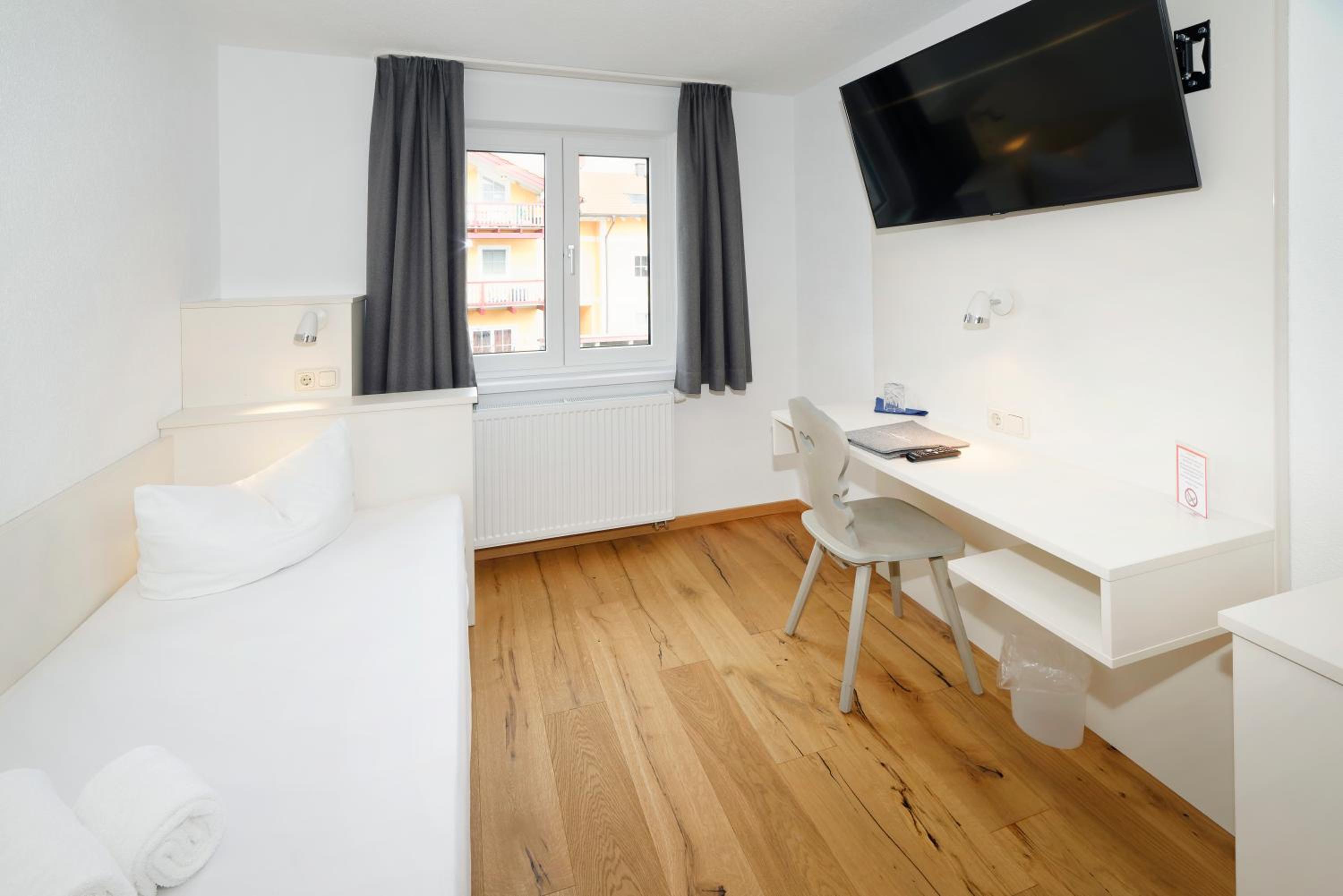 Chambre propre et fonctionnelle, au design sobre et contemporain. Nombreuses prises électriques (pas toujours le cas chez nous en France) et rangement suffisant. Nous avons apprécié le balcon avec table et chaises, le réfrigérateur à disposition des clients dans le couloir et le garage à vélo, plutôt vide en cette saison. Grandes terrasses extérieures. Personnel sympathique. Petit déjeuner FABULEUX. Hôtel très bien situé géographiquement (Chiemse à 4 km, Munich et Salzburg à 1h/1h30).