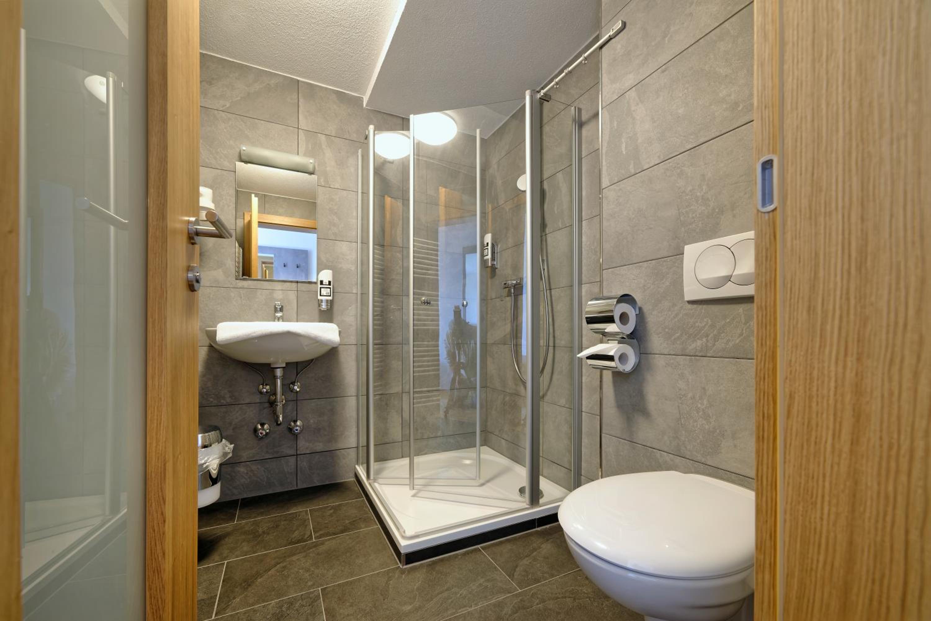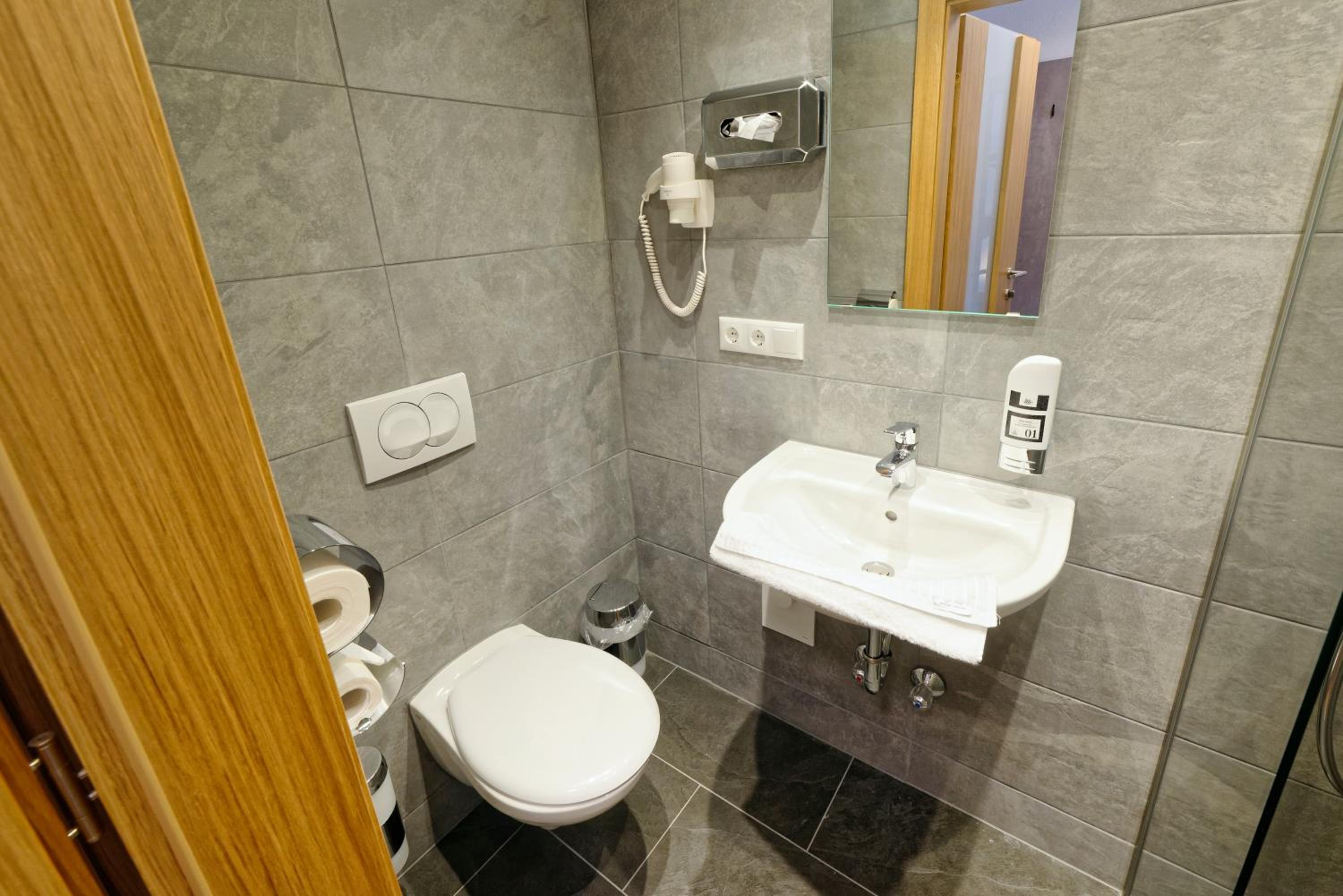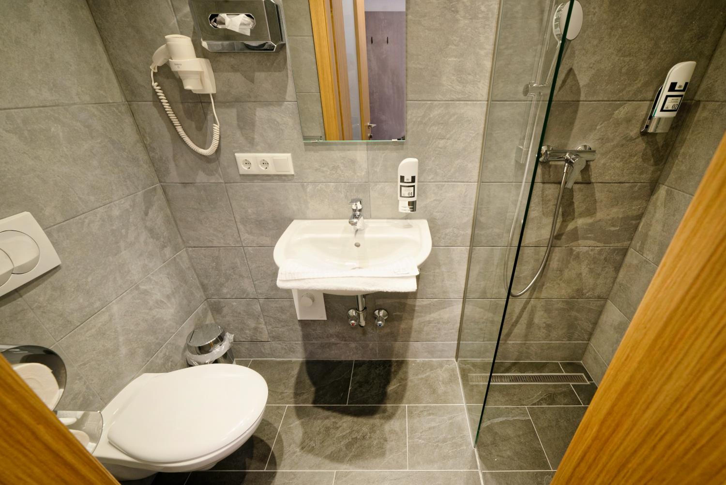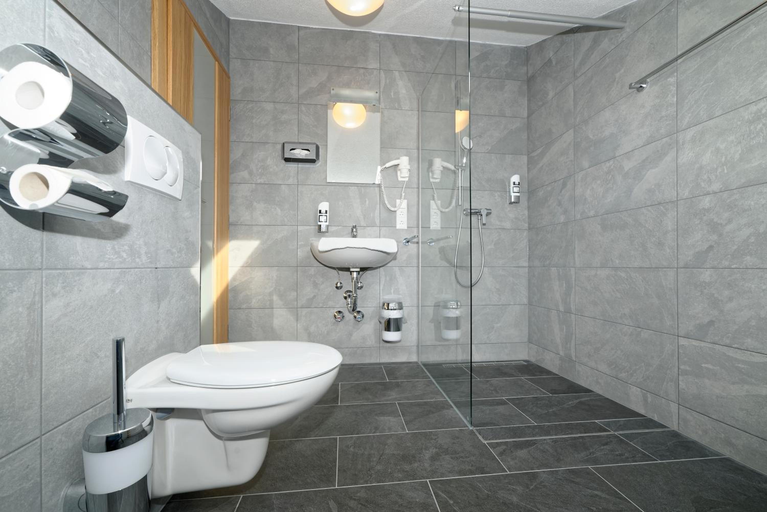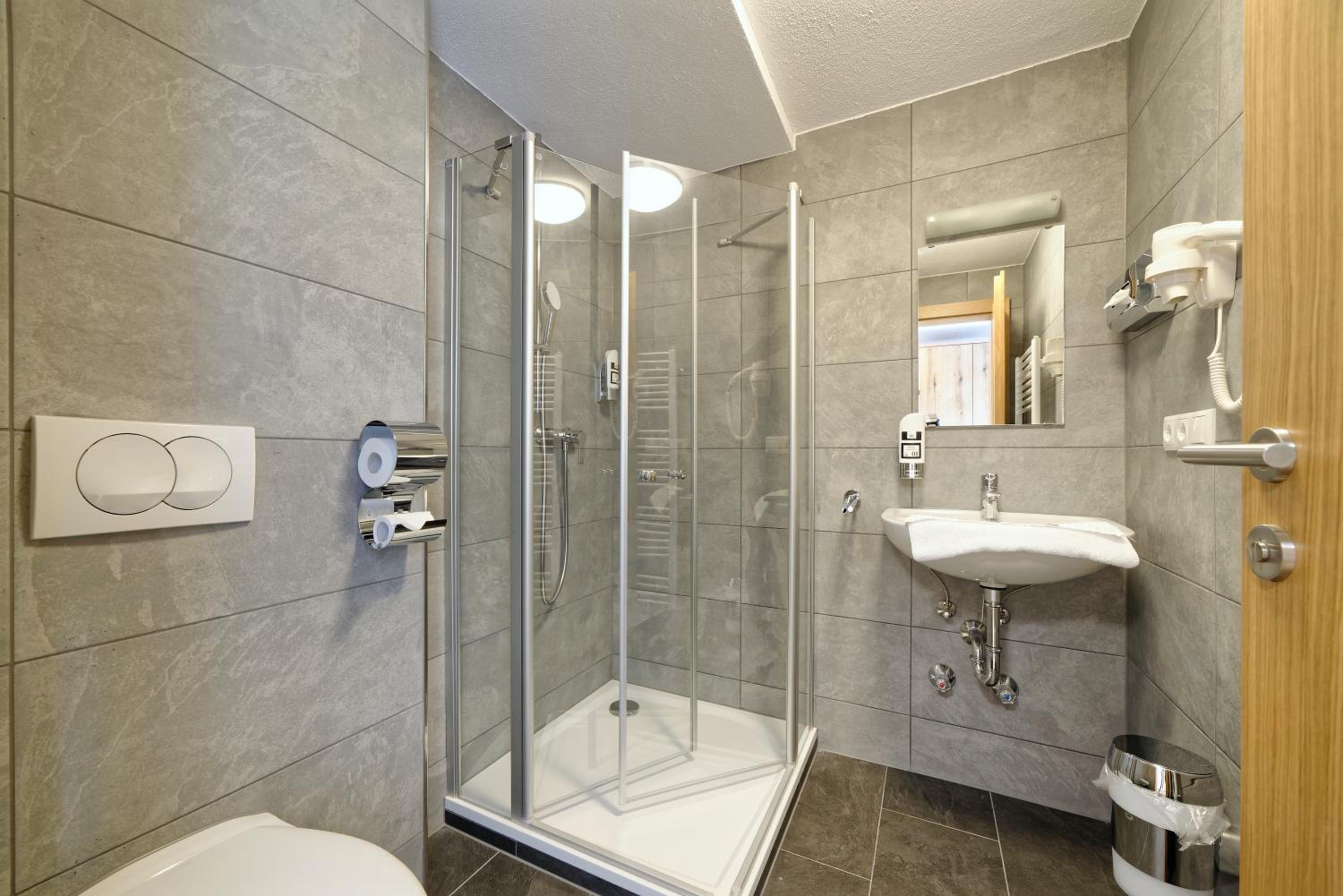 Chambre propre et fonctionnelle, au design sobre et contemporain. Nombreuses prises électriques (pas toujours le cas chez nous en France) et rangement suffisant. Nous avons apprécié le balcon avec table et chaises, le réfrigérateur à disposition des clients dans le couloir et le garage à vélo, plutôt vide en cette saison. Grandes terrasses extérieures. Personnel sympathique. Petit déjeuner FABULEUX. Hôtel très bien situé géographiquement (Chiemse à 4 km, Munich et Salzburg à 1h/1h30).