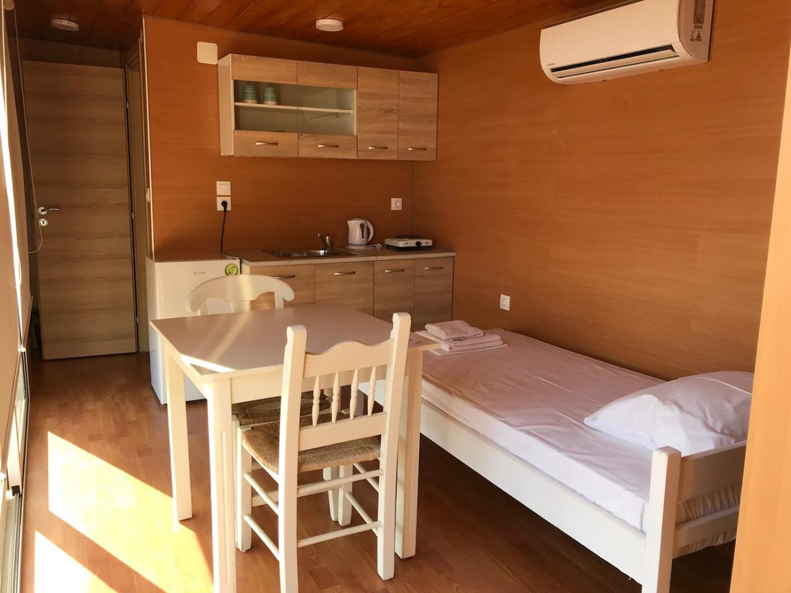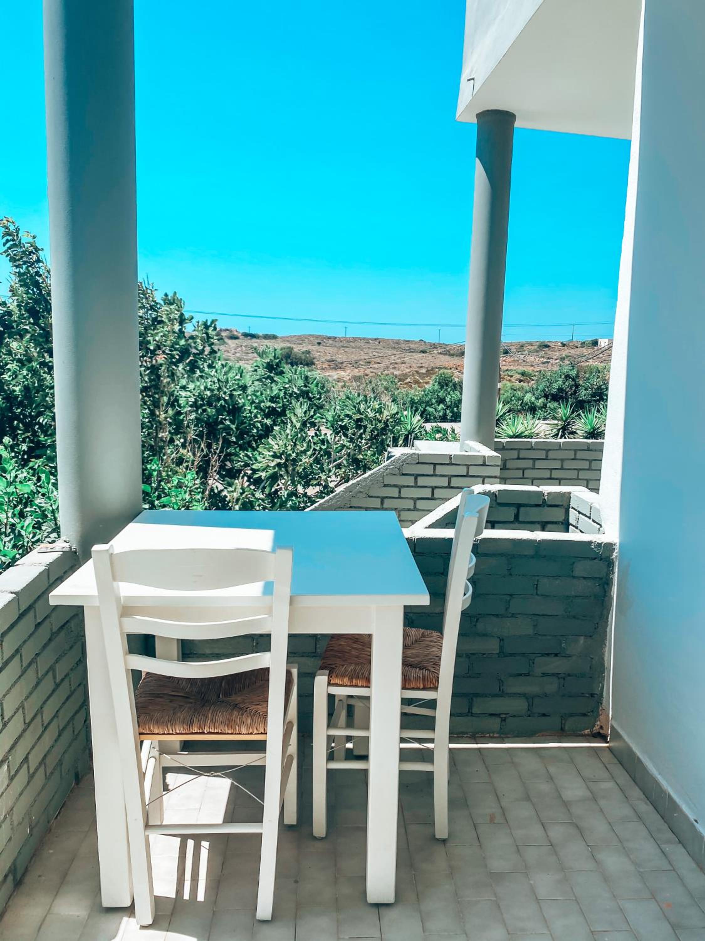 Once again, we were delighted with the quality of the rooms and the attention of the staff. Stelios was pleased to see us, having stayed at the same accommodation about 18 months ago. We arrived a little early and the rooms had just finished being cleaned. Both rooms were spotlessly clean with fresh bed linen. Both had a fridge, kettle and (plenty of) tea/coffee/sugar sachets. Large screen TVs in both rooms too, hanging space and shelves for clothing. Each had a private balcony with table and two chairs. Very clean shower/toilet with complementary shampoo/shower gel. There's a minimarket directly opposite with lots of Greek pies and sandwiches for sale and a huge selection of both groceries and beach paraphernalia. The rooms are some of the closest to Elafonissi Beach and it's about 1km (15 minute walk) to the beach. I would thoroughly recommend these rooms if you're looking for somewhere to stay that's as close to the beach as possible.