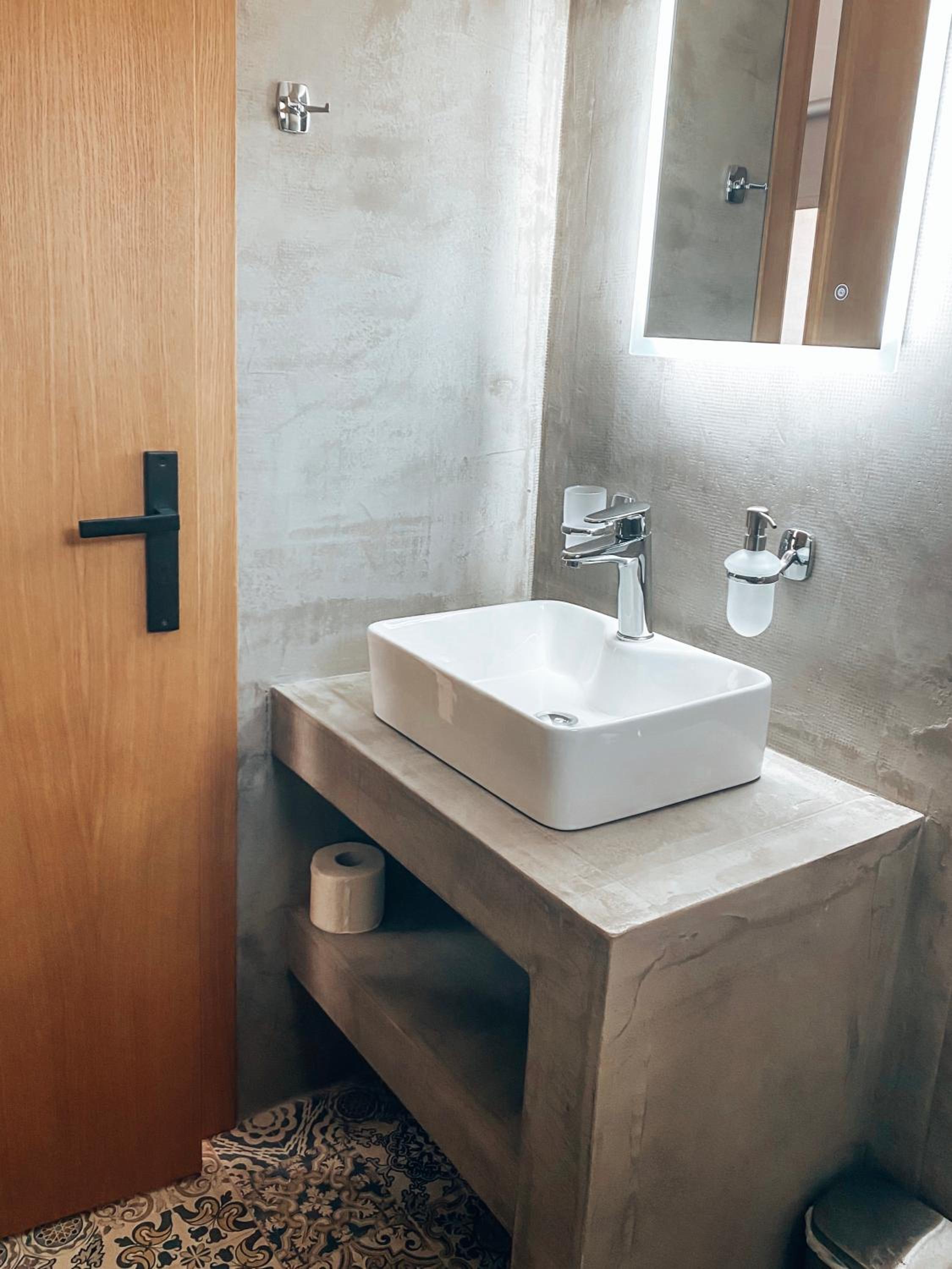 L’évacuation de la douche était lente et nous n’avons pas pu avoir de raclette pour nettoyer. Le moteur de la climatisation était de l’autre côté du mur et était plutôt bruyant.