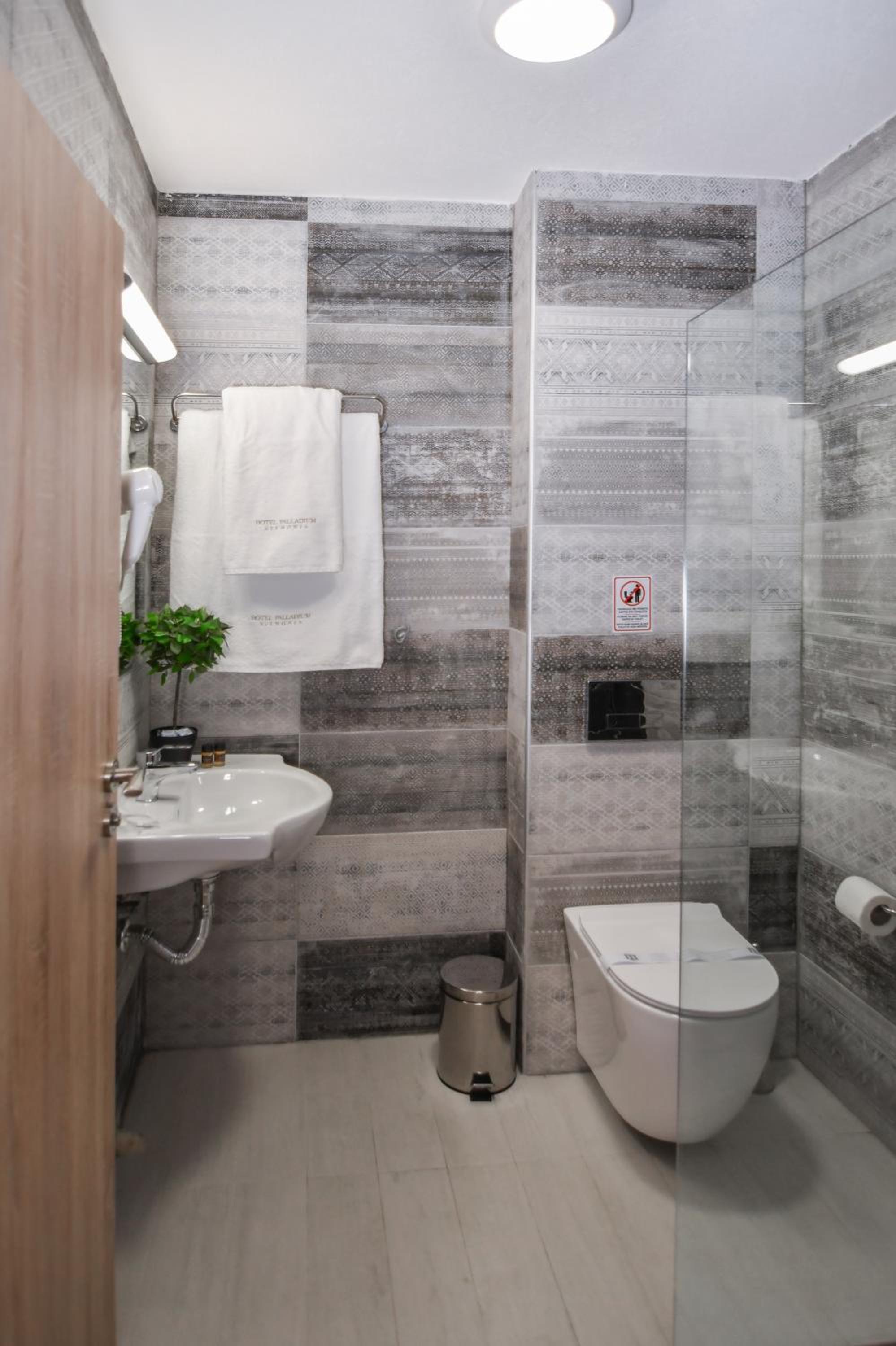 In baie toate accesoriile deprinse din perete.WC, Suport săpun, chiuveta.