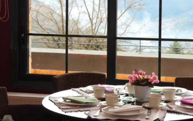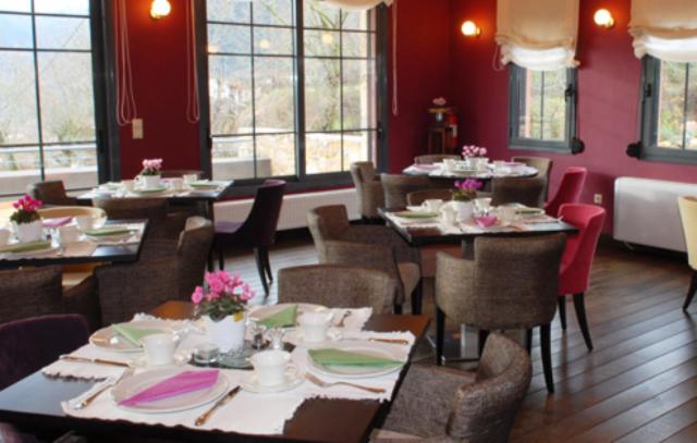 Gastronomic Delights: Indulge in traditional specialties and fine wines at the stylish restaurant overlooking the lush surroundings. The warm lounge area with a fireplace is perfect for enjoying evening drinks from the hotel's bar, creating a cozy and inviting atmosphere.