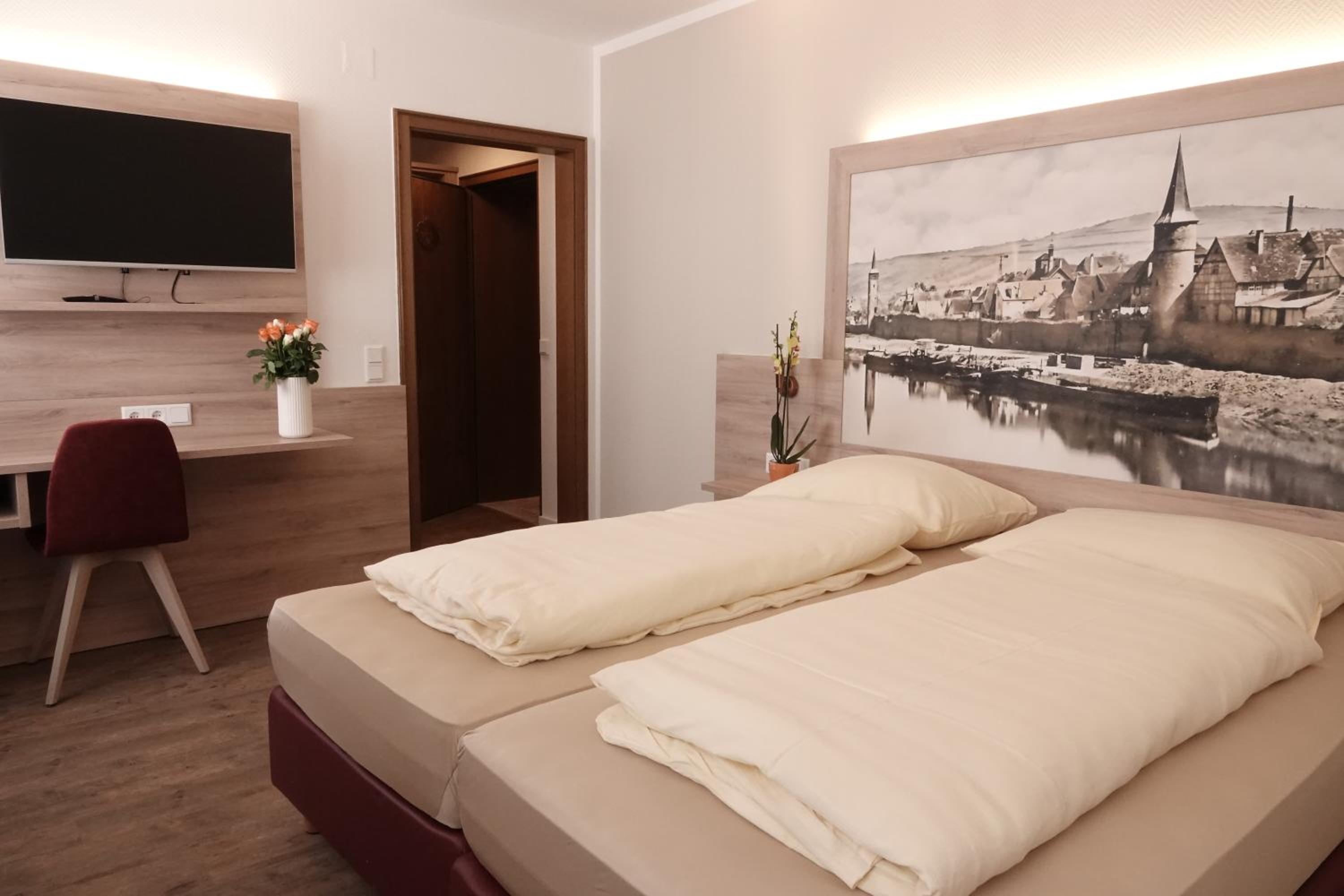 Each room at Hotel Alte Brauerei features a desk, private bathroom, and cozy bed with crisp linens, ensuring a comfortable stay for all guests.