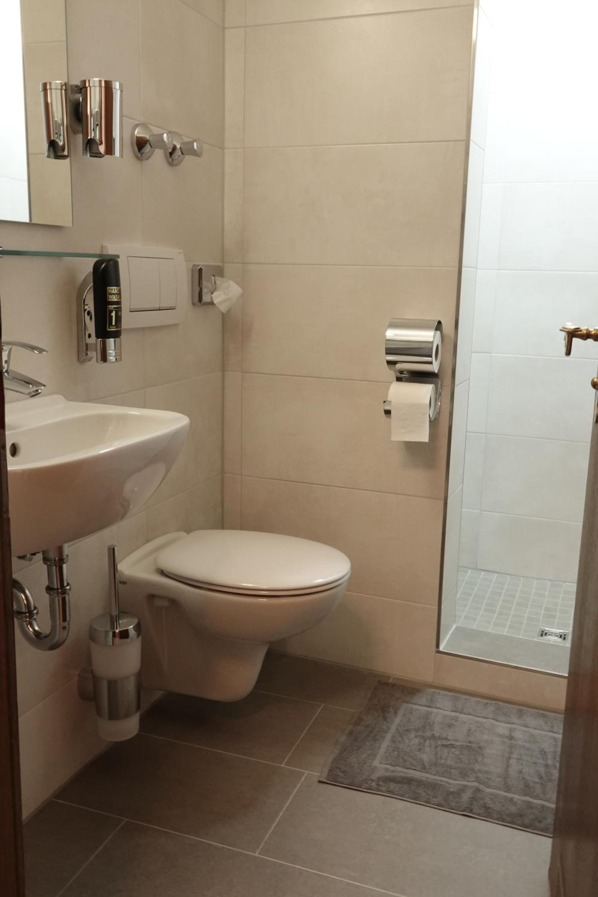 Tipp: Im Bad wäre ein Hocker zur Ablage von Wäsche oder anderen Dingen sehr angebracht.
