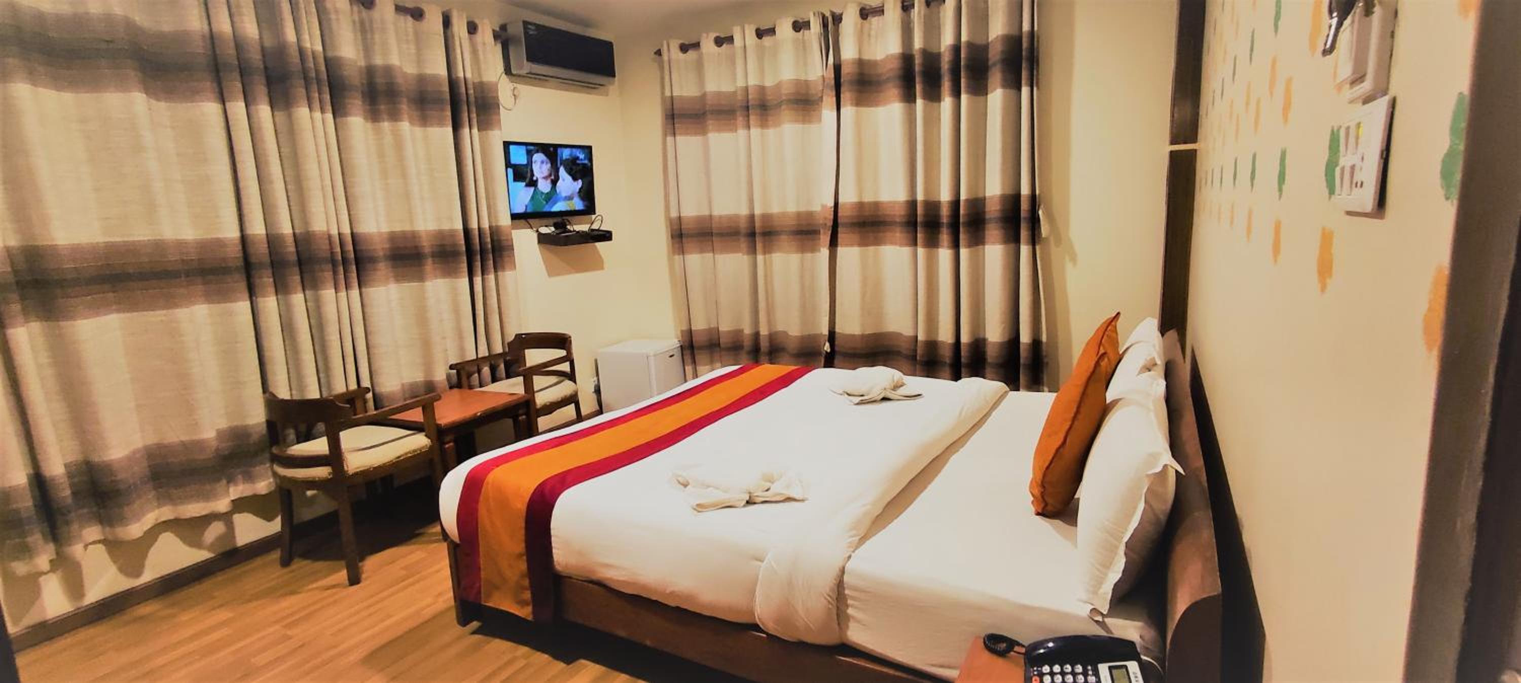 At Royal Kings Hotel, experience the perfect blend of comfort and convenience in the heart of Kathmandu. Each air-conditioned room offers breathtaking city views, ensuring a memorable stay. Enjoy the modern amenities including a flat-screen TV, free WiFi, and a well-equipped private bathroom with complimentary toiletries.
