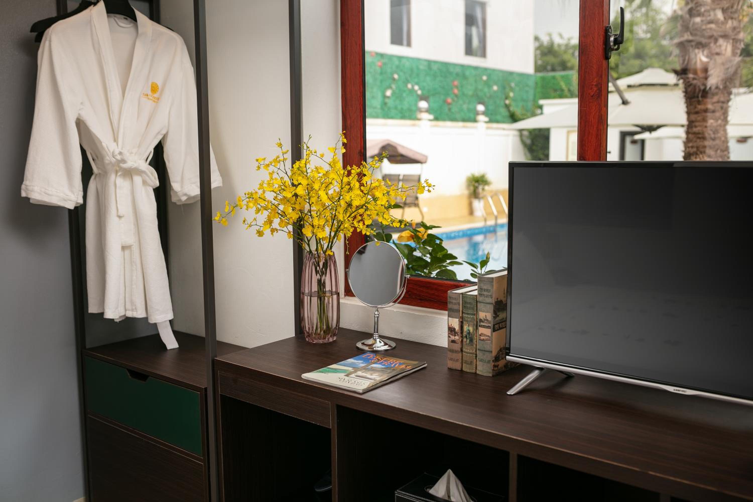 Location is perfect, just into the old town with all services nearby as restaurants and shops. Staff was fantastic, very profesional and friendly, helping and providing all the info we needed to have a nice stay in Tam Coc.