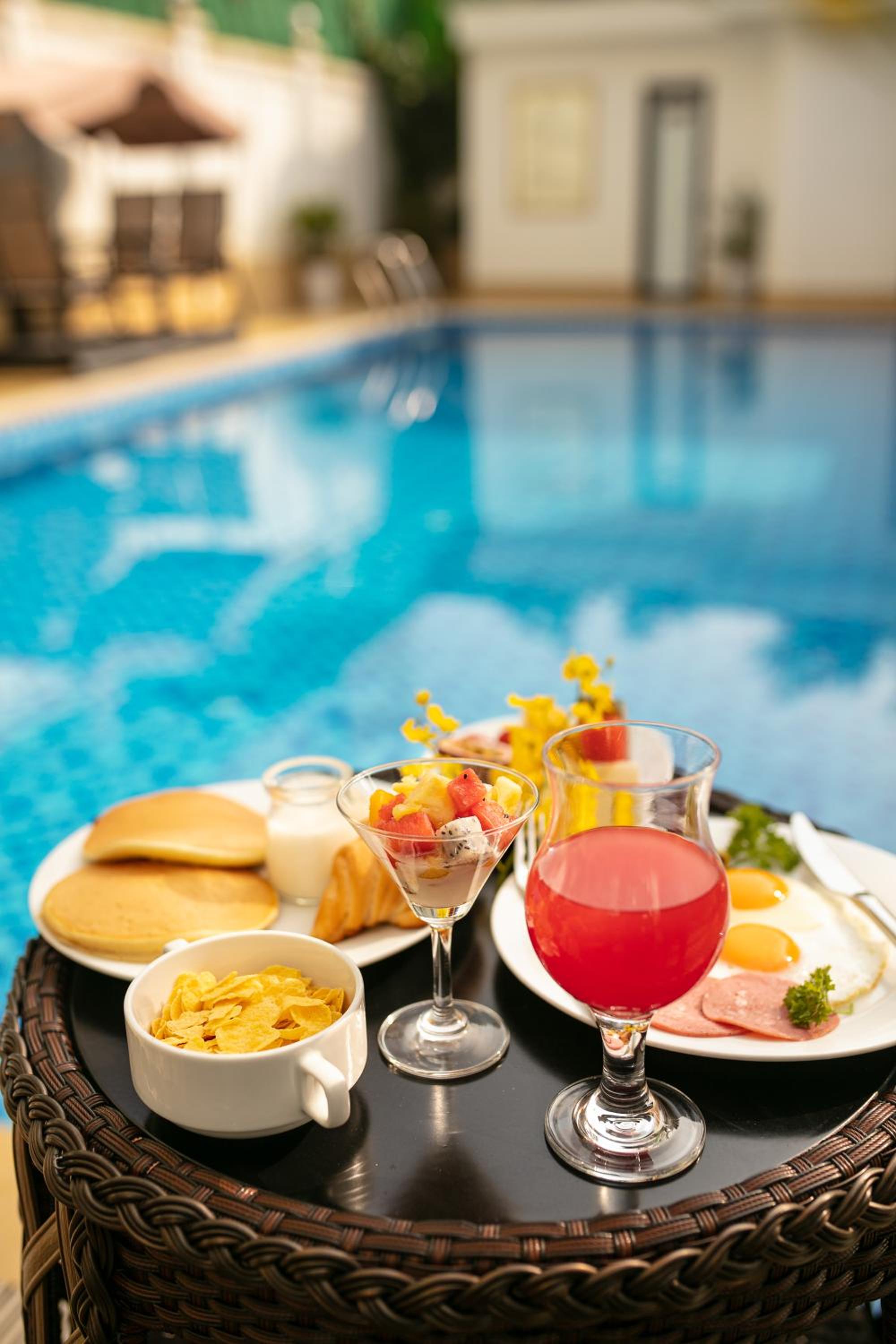 Highlight of stay was staff member named Rose. She went over & above & made our stay. Her English & personality wonderful. Breakfast excellent. Pool area & surrounds lovely. Big rooms & bathrooms. Cannot fault place & location. Perfect.