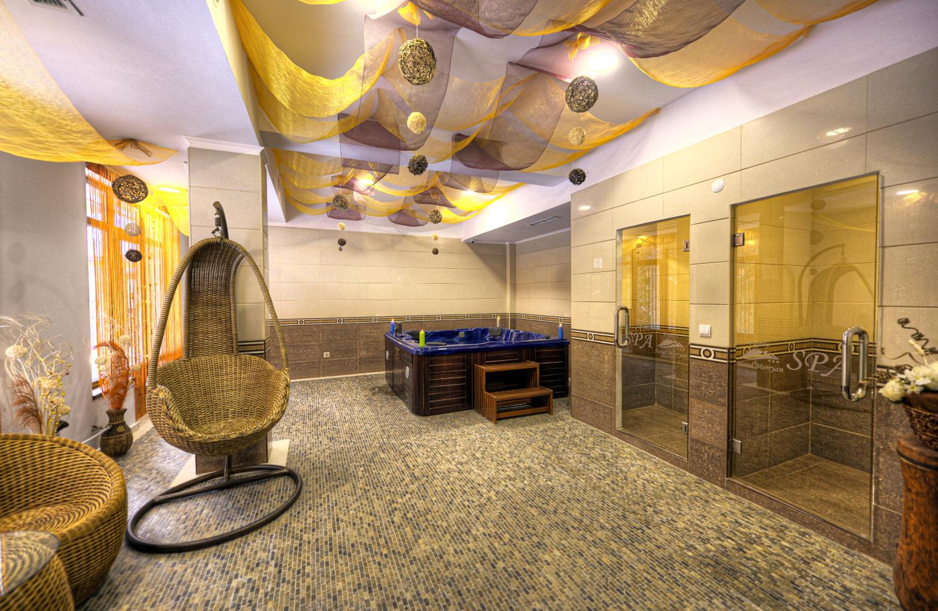 MPM Hotel Merryan is ideally located in Pamporovo, offering easy access to shops and attractions. Guests can unwind in the relaxation area, complete with a steam room, hot tub, and a unique glass-wall sauna overlooking the pine-tree forest.