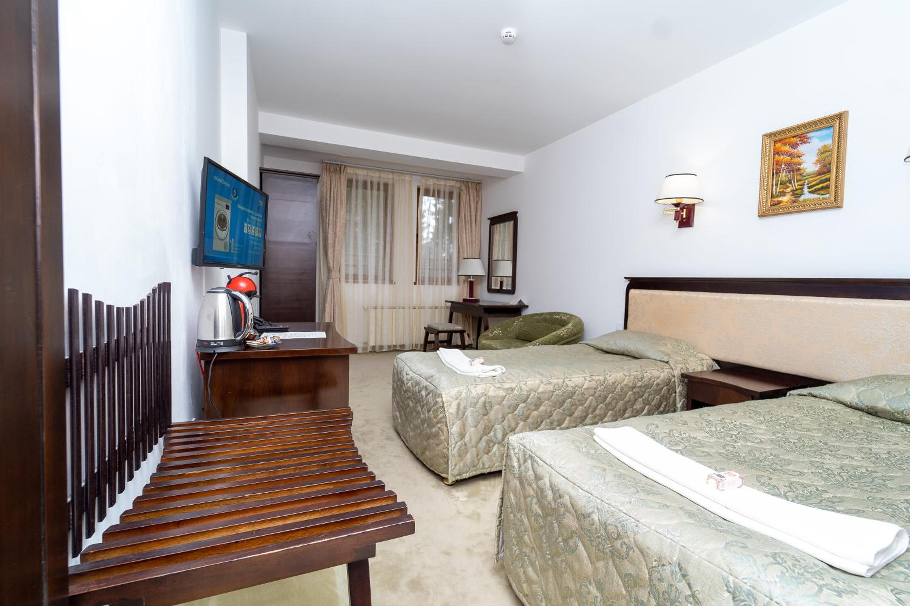 Отличное расположение. Близость к подъемникам. Чистый номер. Вид на лес. В номере было очень тепло. Разнообразный завтрак и ужин. Еда была домашняя и вкусная. Парковка на улице была свободна даже в субботу и воскресень. Рекомендую.