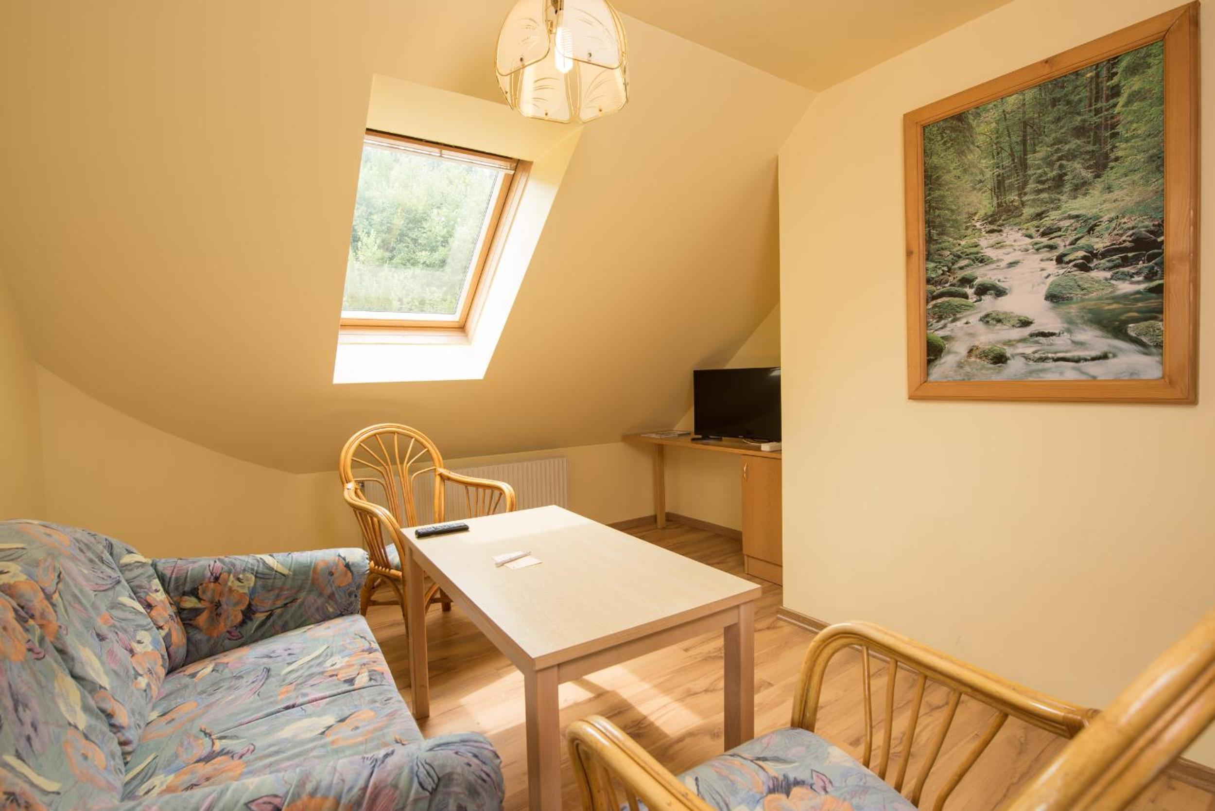 Das Familienzimmer zweistöckig mit eigenem Sxhlafzimmer und TV, kleiner Küche, und Balkon.