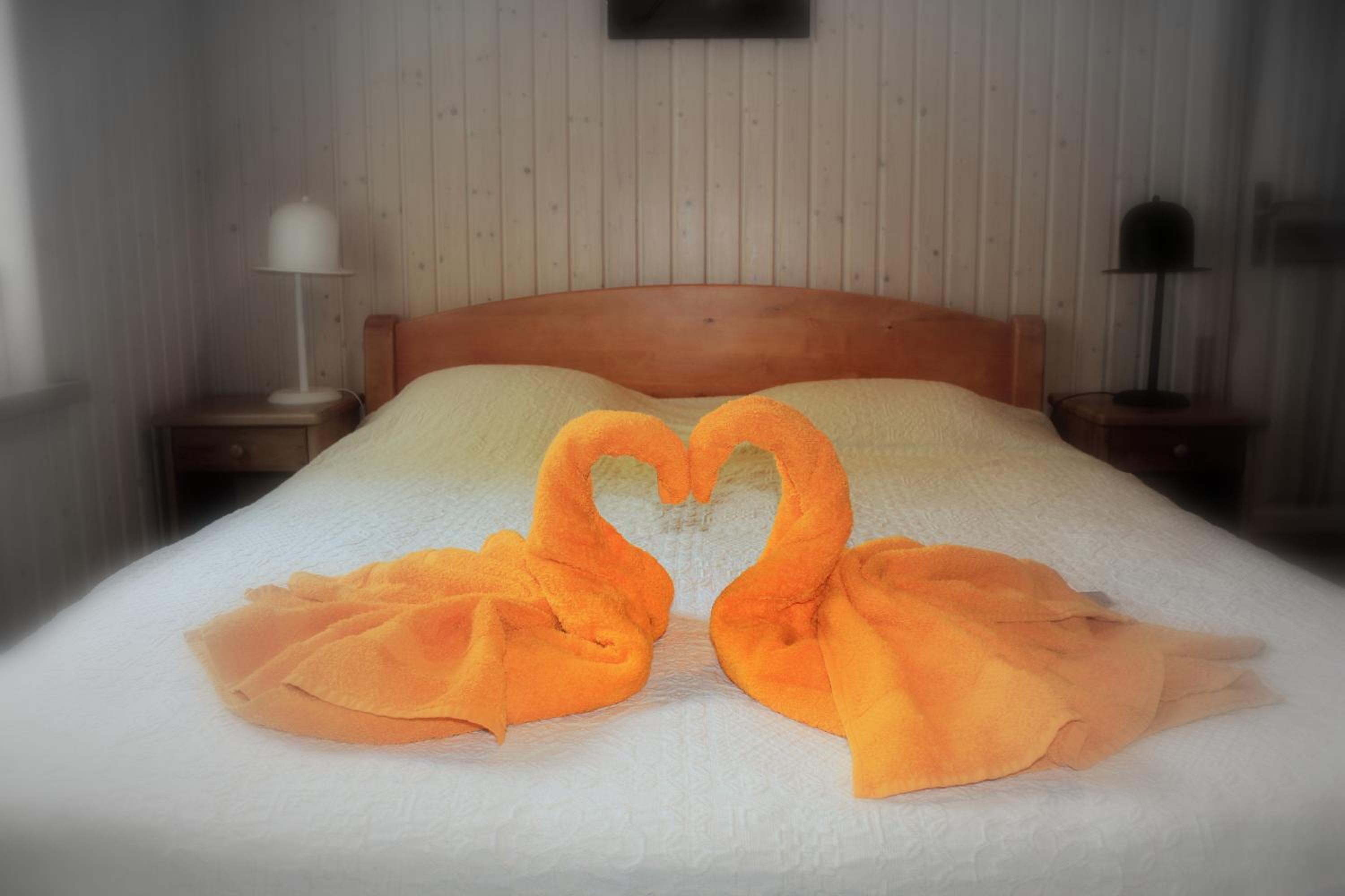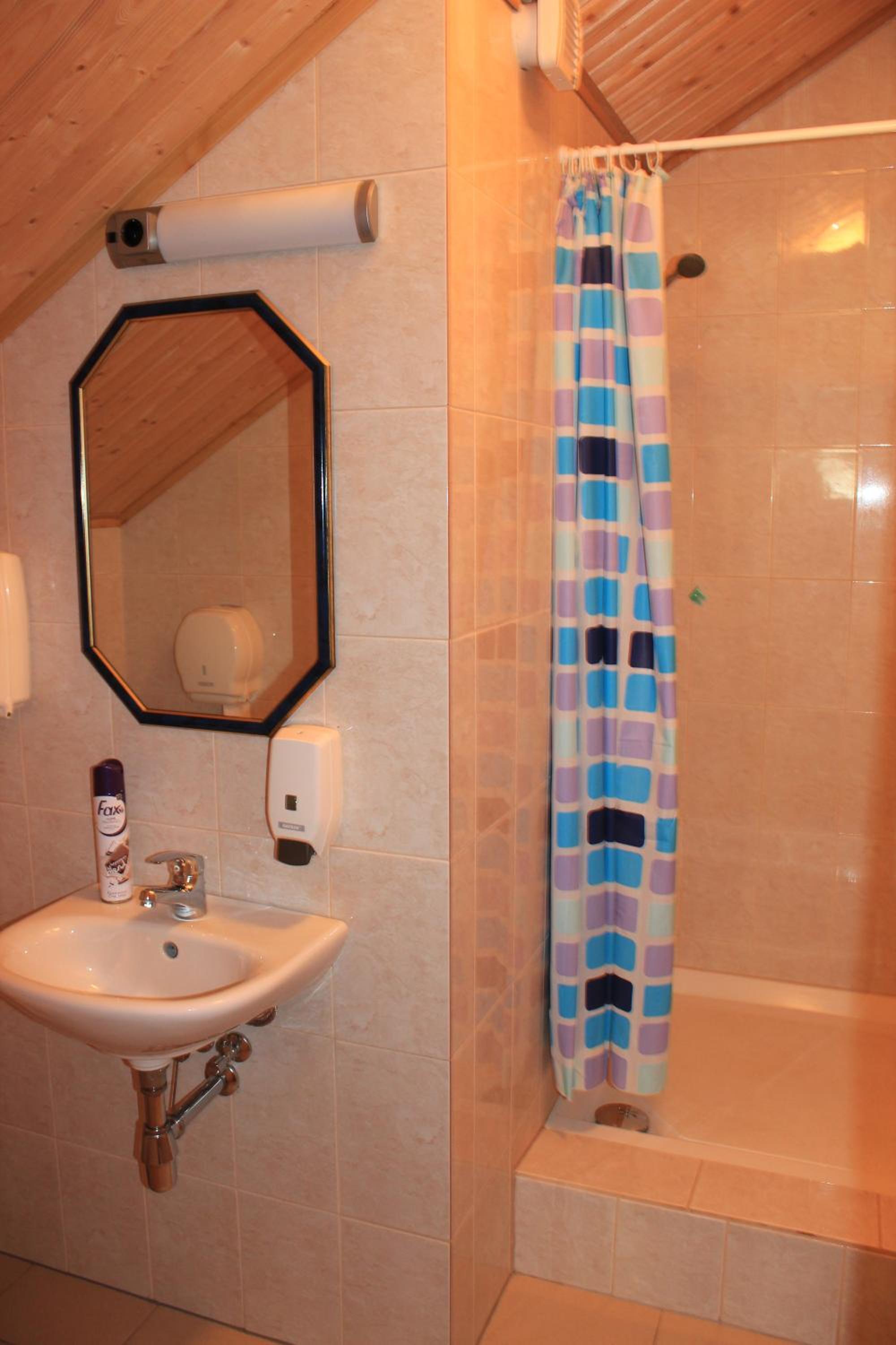 Indulge in the charm of wooden décor in our bright and warmly colored rooms, each equipped with a bathroom featuring a refreshing shower.
