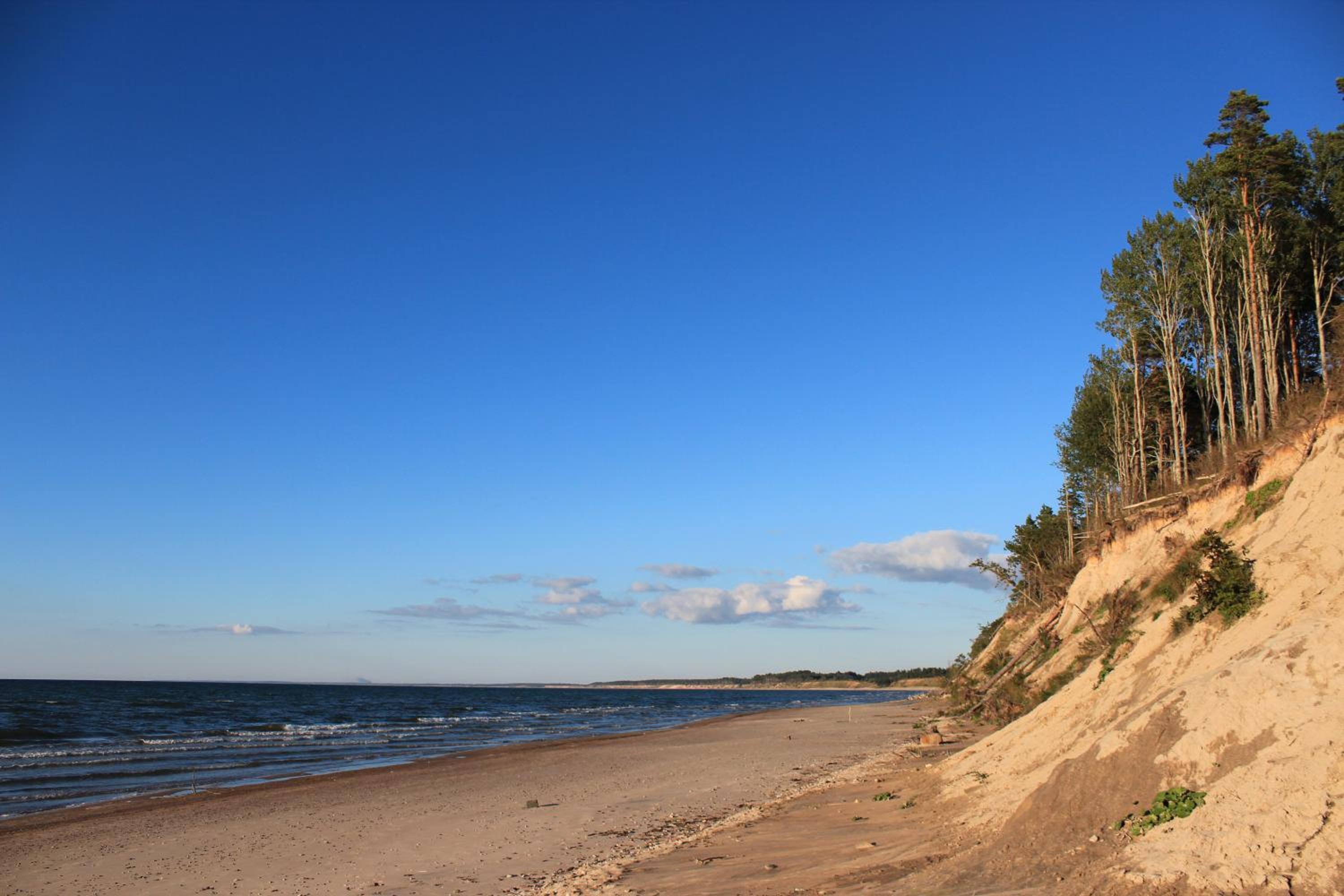 Very impressive sea coast with a cliff. The cliff stretches its entire length as far as the eye can see.
