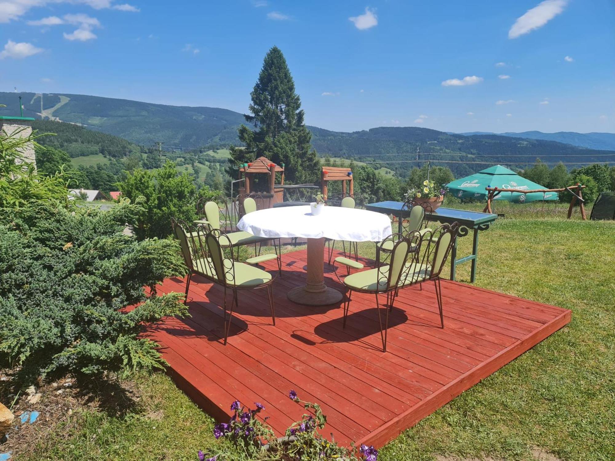 Pěkné ubytování v dřevěné horské chatě s balkonem a výhledem na Klínovec. V pokoji bylo čisto, k dispozici varná konvice. Bohatá snídaně stejně jako celý den otevřená restaurace kousek v ulici s milým personálem. Na Klínovec autem pár minut, blízko ubytování také dvě menší výborně upravené sjezdovky s nočním lyžováním. Celkově to byla velmi příjemně ztrávená lyžařská dovolená. Hodnocení v poměru k ceně je nad naše očekávání velká spokojenost. Děkujeme, rádi se vrátíme..