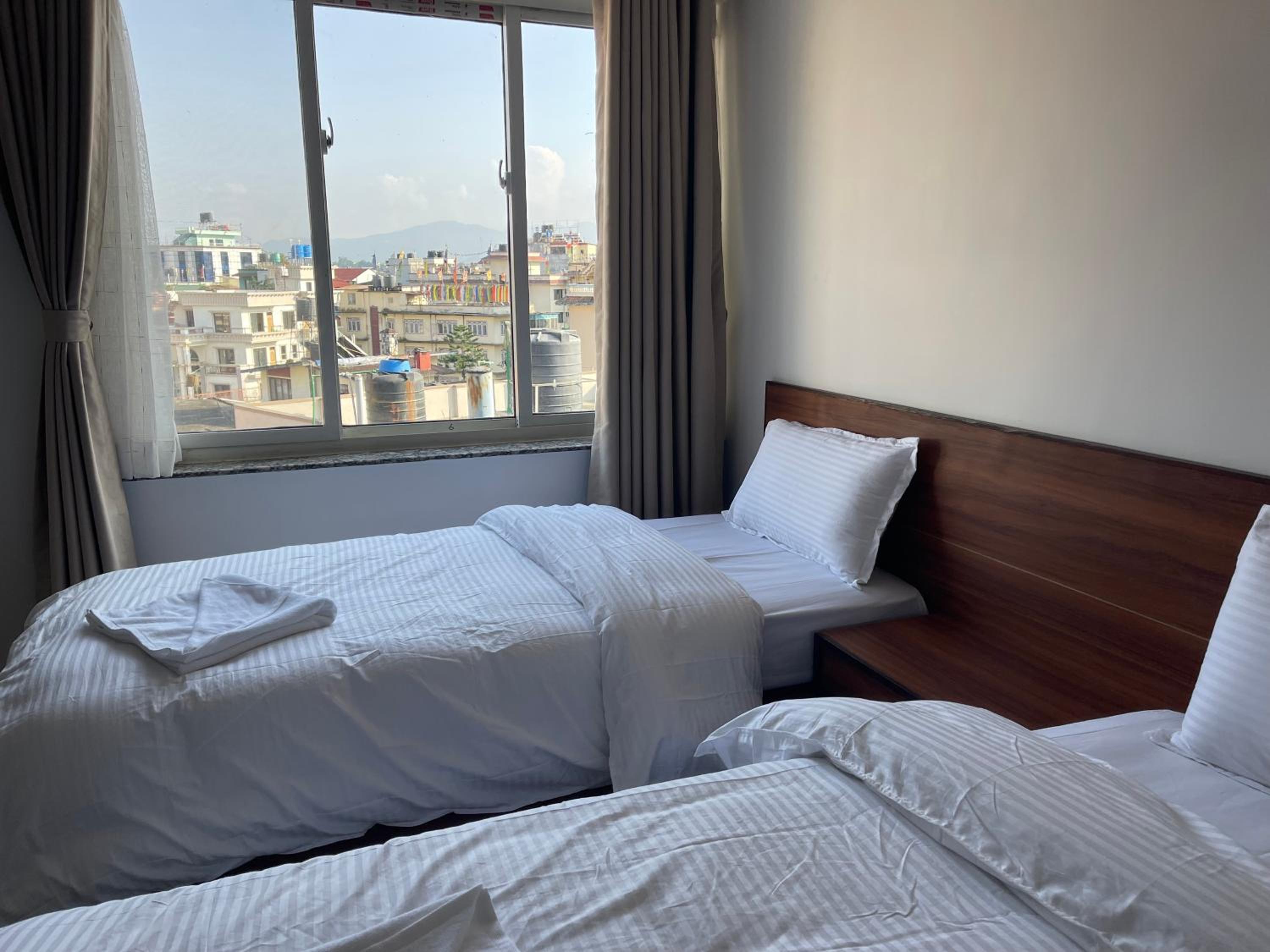 The hotel is located directly in the Bodha Stupa district, very nice and friendly staff, always ready to help. The time of stay is very pleasant and comfortable for me.