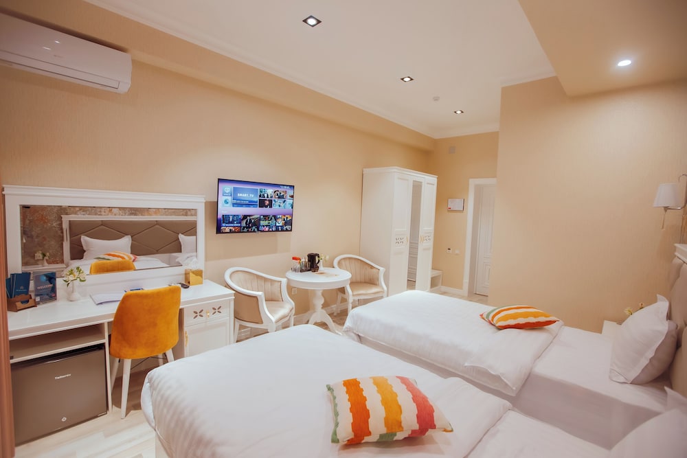 we had the pleasure of staying at this hotel and it exceeded our expectation. From the moment we arrived, the staff made us feel welcome. The check in process was smooth and efficient and we were immediately impressed by the lobby and the Uzbek show room. The room was spacious, well decorated and clean. The bed was comfortable, the bathroom had all the necessary and we appreciated the thoughtful touches like complimentary bottles of water. The breakfast offers a wide selection of options and there is a terrace to have a tea or a glass of wine at sunset time. Oustanding service and hospitality. Every member of the team was friendly and attentive, arranging transportations, recommending attractions and restaurants.