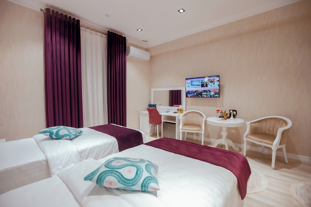 한마디로, 최고로 완벽한 호텔입니다. 호텔 규모는 작지만 시설, 편안함, 직원 응대가 너무나도 좋습니다. 최근 다녔던 호텔 중에 최고의 경험이었습니다. 특히, 저희 가족을 응대하는 직원의 태도는 5성급 호텔의 직원보다 좋았습니다. 타슈켄트로 돌아오는 택시가 필요했는데, 저희를 위하여 애써주어 무사히 돌아올 수 있었습니다. 호텔 입구에서부터 좋은 향기가 나고 역사적 스토리가 있는 호텔이어서 숙박과 함께 구경거리도 있어서 좋았습니다. 저녁에는 와인과 과일을 주어 생각지도 못한 환대를 받았습니다. 다음에 사마르칸트에 갈 기회가 있으면 또 묵어볼 생각입니다. 이 호텔이 앞으로도 번창하였으면 좋겠습니다. 저희 가족에게 보내준 환대에 다시 한번 감사합니다.