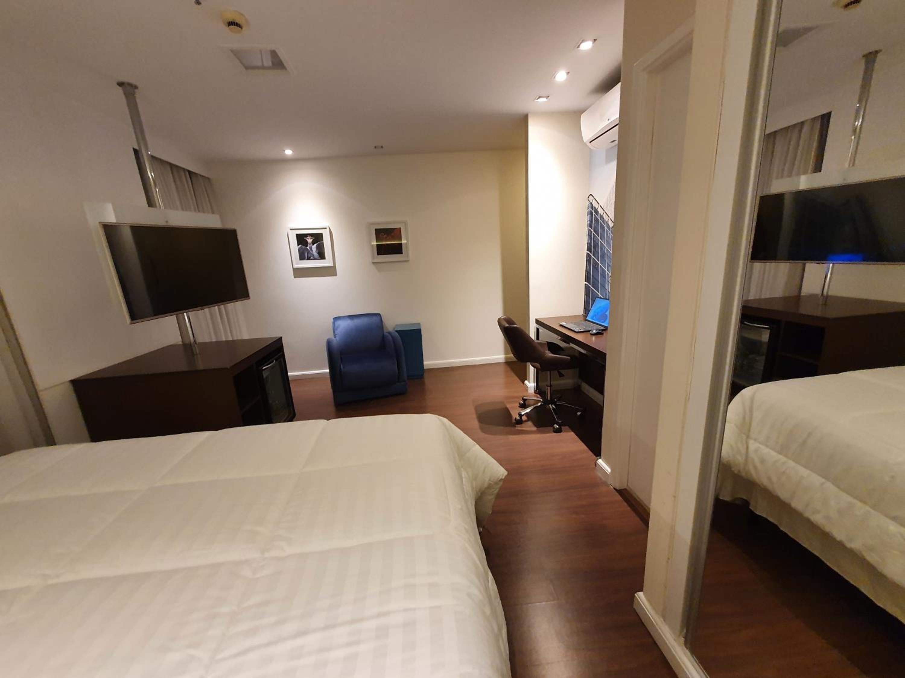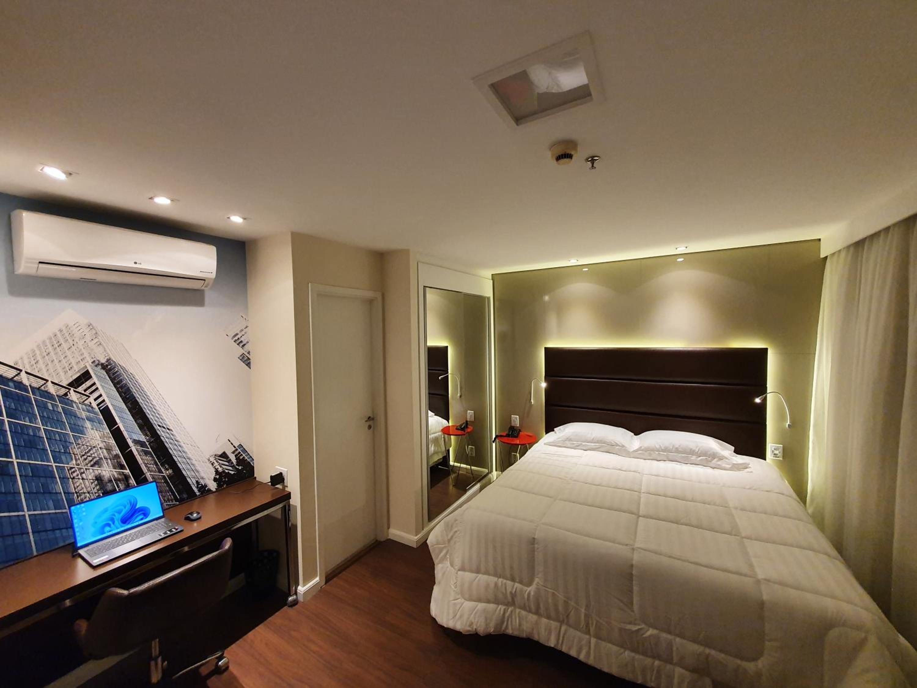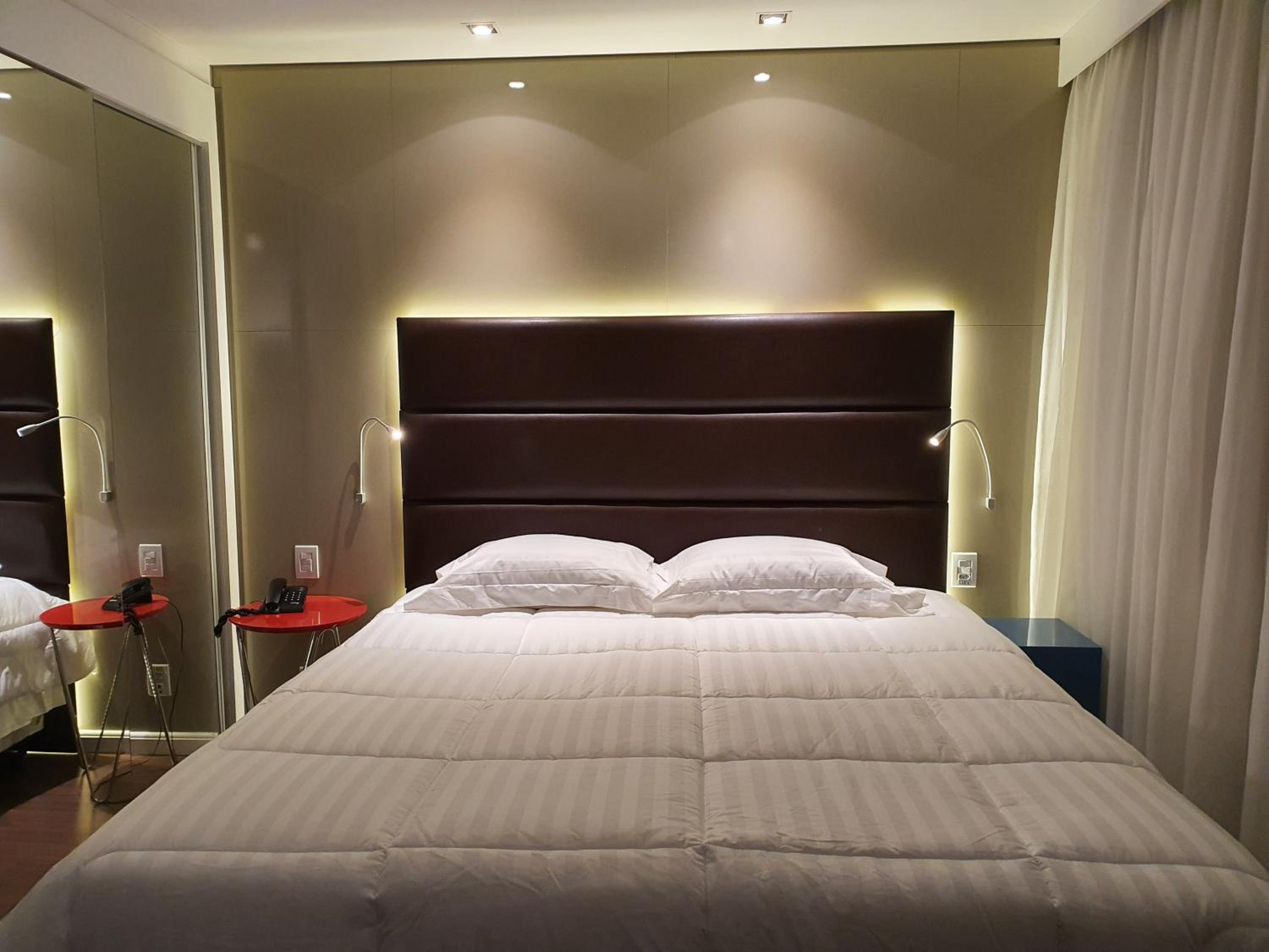 Quarto moderno, confortável, compatível com os demais do hotel. Localização boa pra quem pretende ficar na região da Vila Olímpia, Moema, Faria Lima etc.