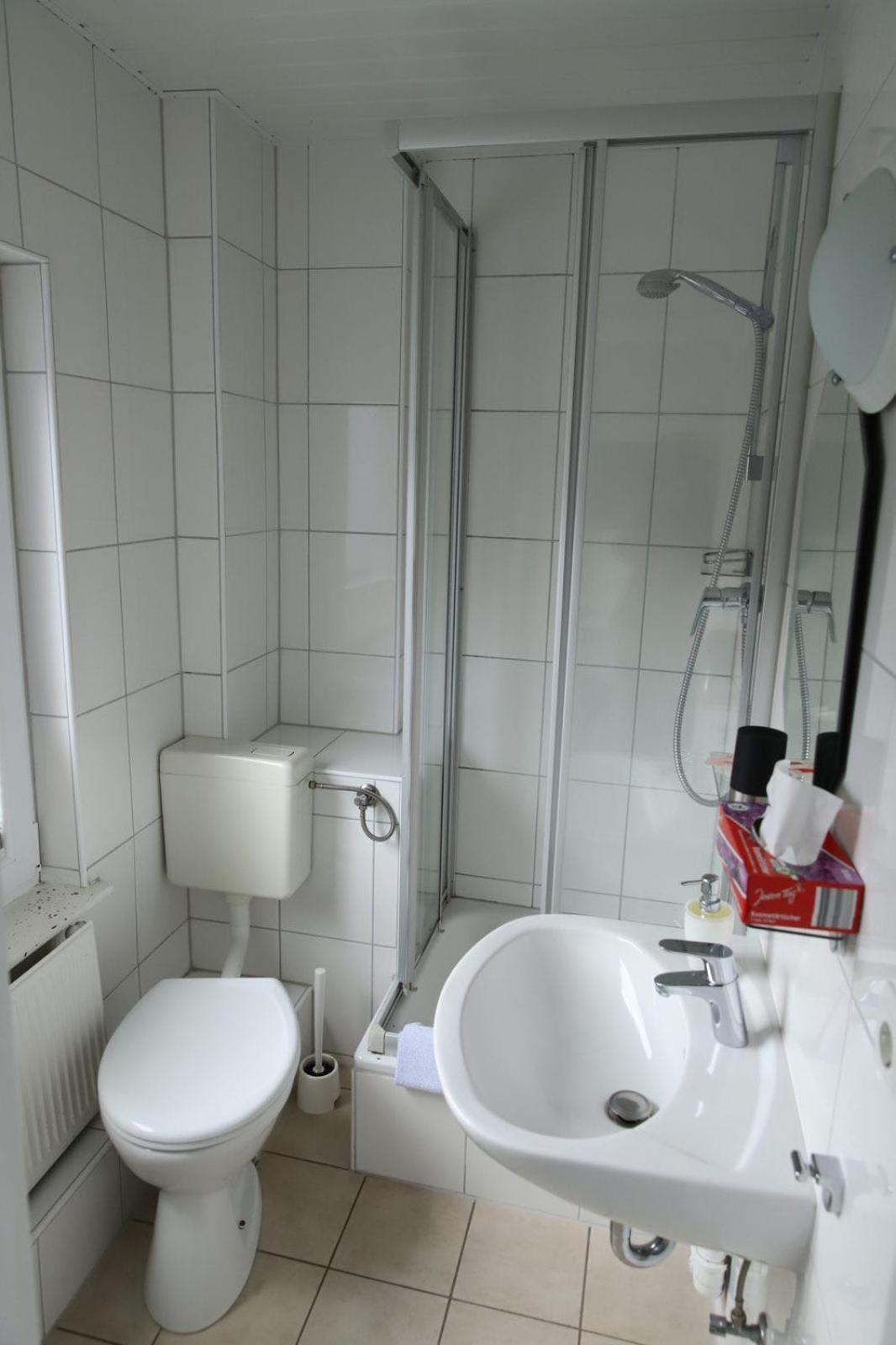 Das Bad war mikroskopisch und ohne Fenster oder Abluft - sehr schwierig.