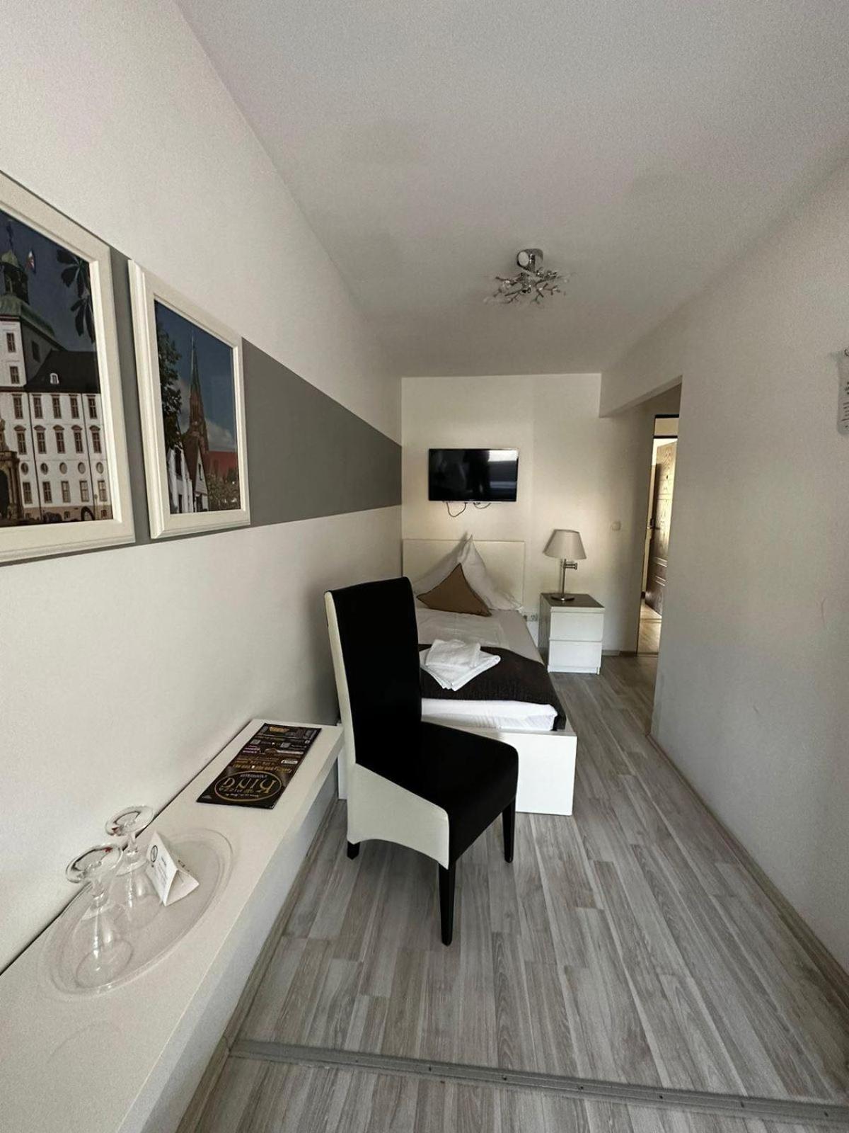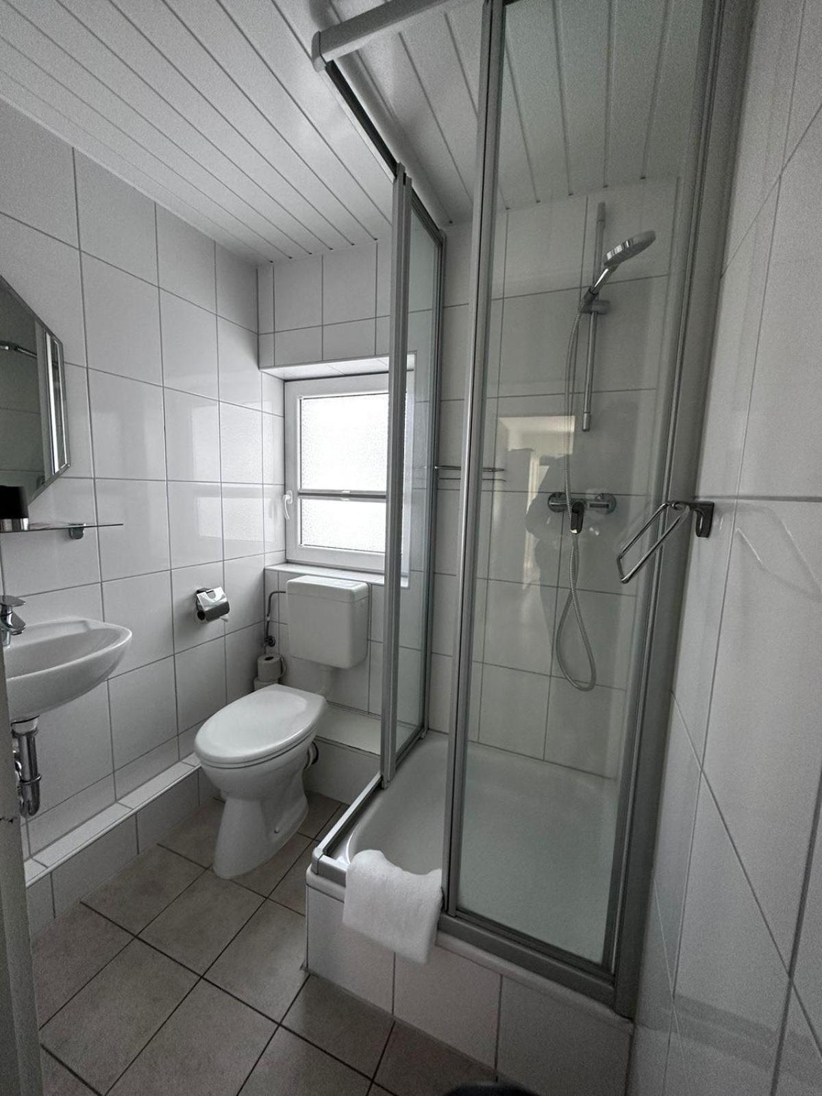 Ich hatte ein EZ gebucht und es war alles da, was man braucht. Der kleine Bier-Kühler neben dem Bett ist sehr laut - habe dann den Stecker gezogen. Die Matratze war etwas durchgelegen, aber noch okay. Guter TV-Empfang. Es war viel Lärm von den anderen Türenschlagen und dem Geschehen im Erdgeschloss zu hören. Das Bad war klein aber okay. Das Frühstück war super. Gute Auswahl an Getränken und Brötchen und Aufschnitt. Ich persönlich hatte Schwarzbrot vermisst, aber die dunklen Brötchen hatten mich auch satt gemacht. Preis-Leistung gut. Auch die Lage ist top.