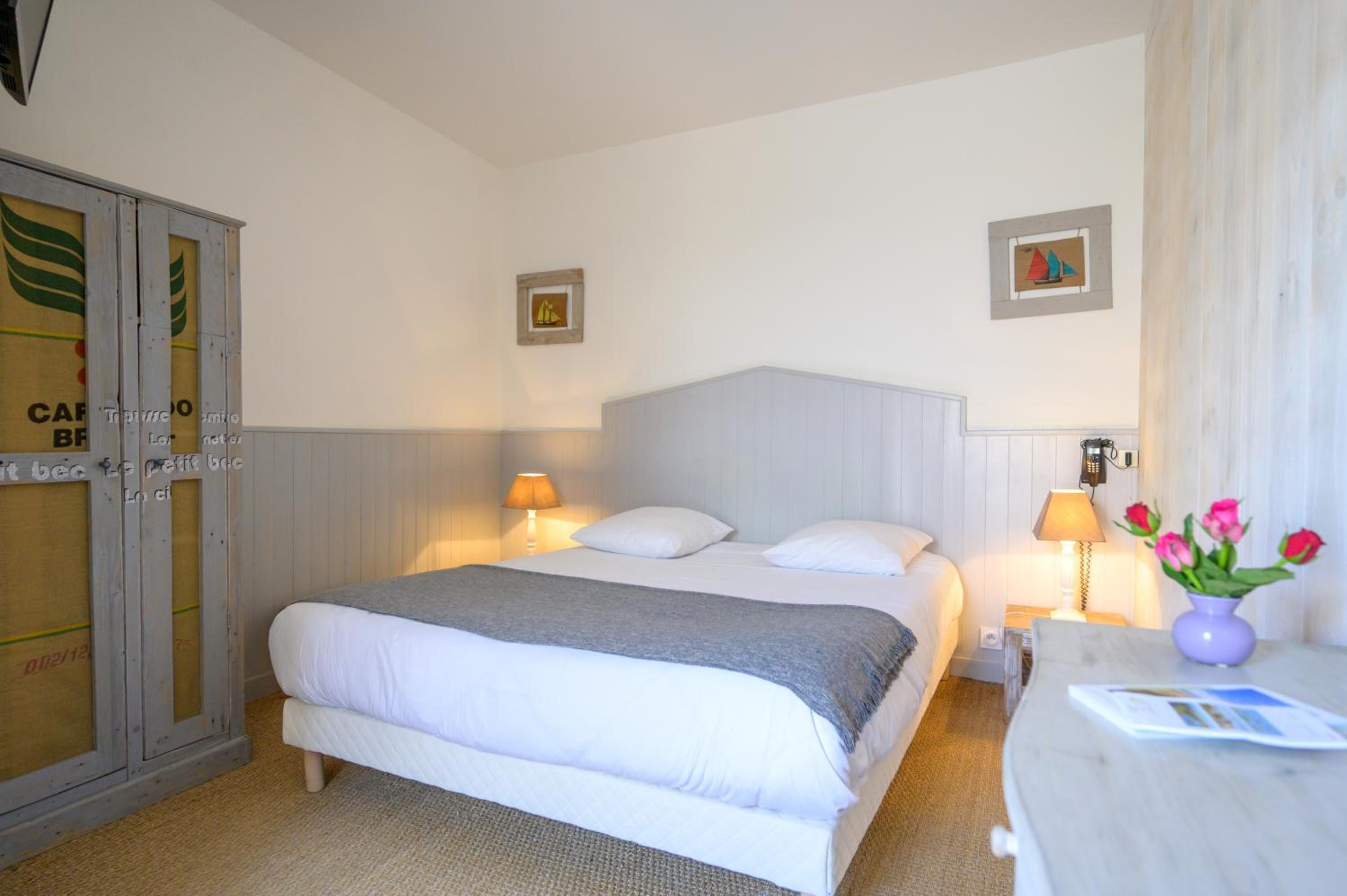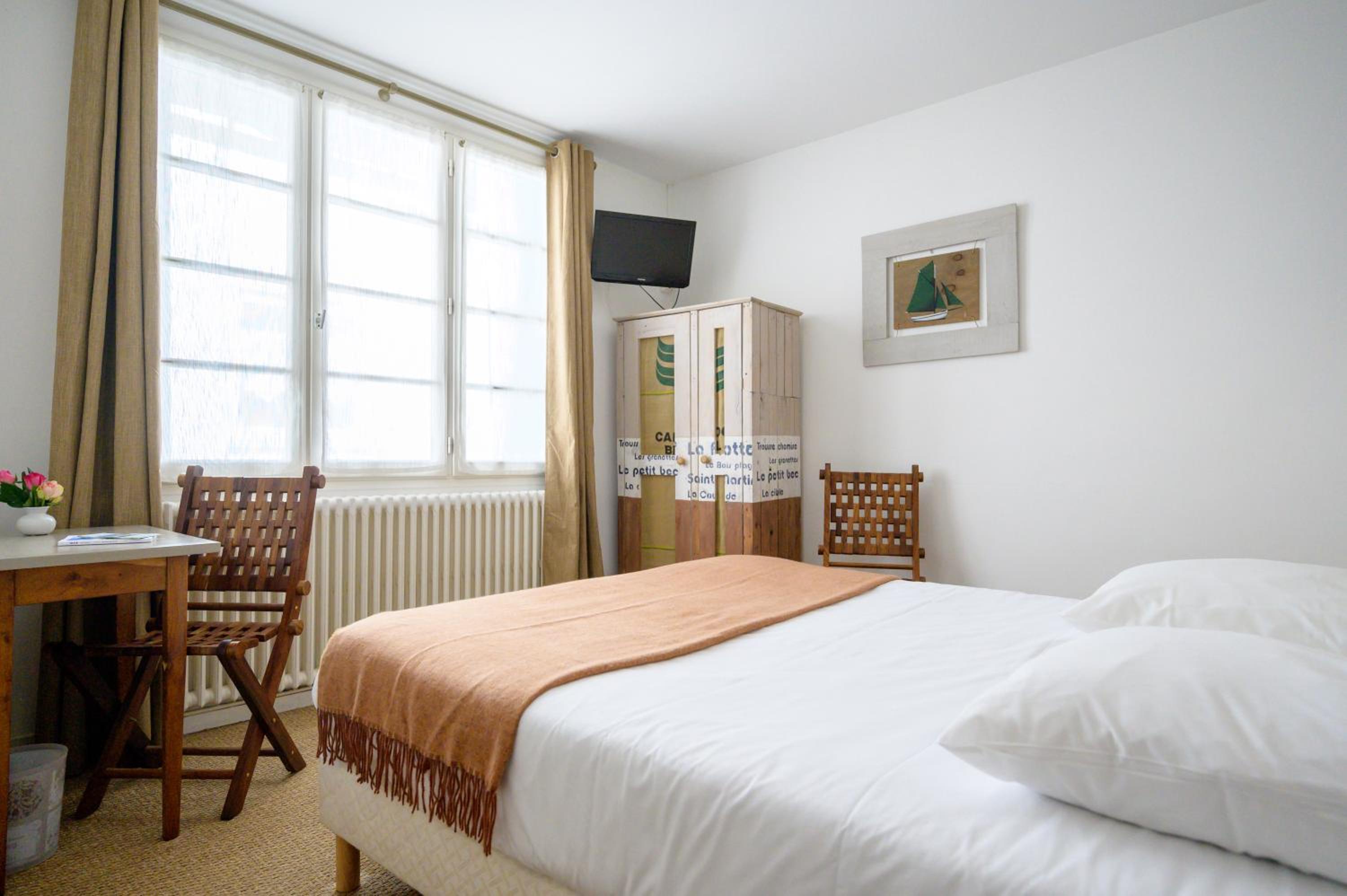 Charmant petit hôtel, extraordinairement placé au centre de La Flotte dans une rue hyper calme. Nous avons pu nous garer facilement à proximité, puis nous déplacer à pied dans tout le village. L'hôtel est très calme, il ne dispose que de 9 chambres, Nous avions une chambre au rez-de-chaussée, donnant sur la belle coure intérieure. Le lit était confortable, la chambre très agréable. Nous allons souvent sur l'île de Ré, cet hôtel sera désormais notre principal point de chute.
