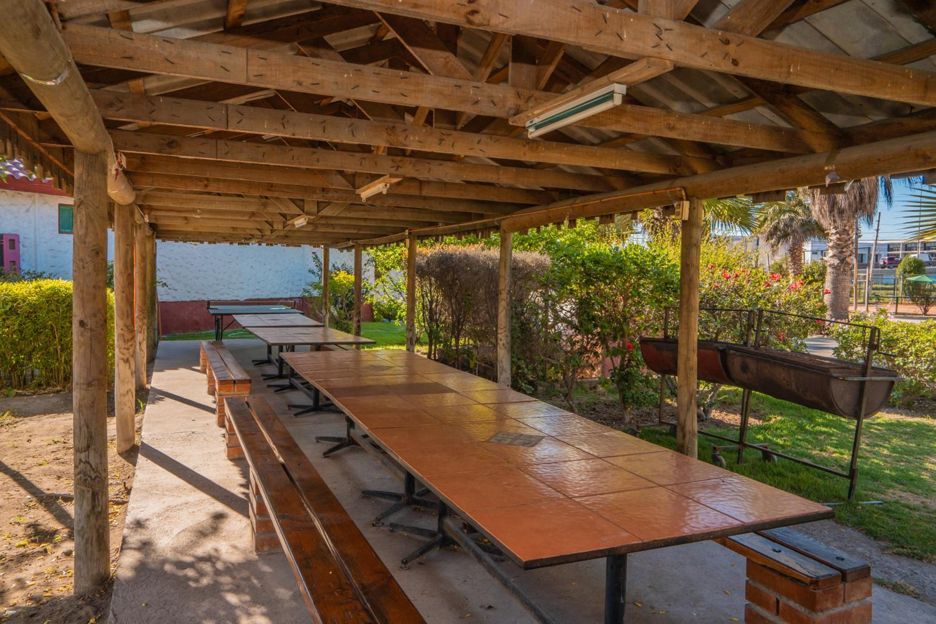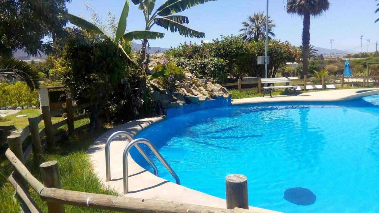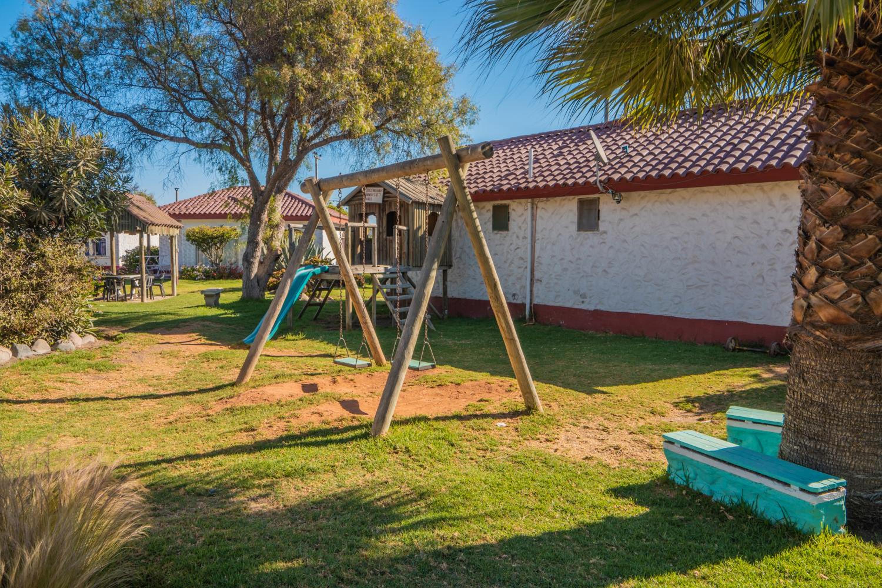 Outdoor Oasis: Enjoy the refreshing outdoor swimming pool, well-maintained garden, and relaxing terrace at Cabañas Villa Los Platanos.