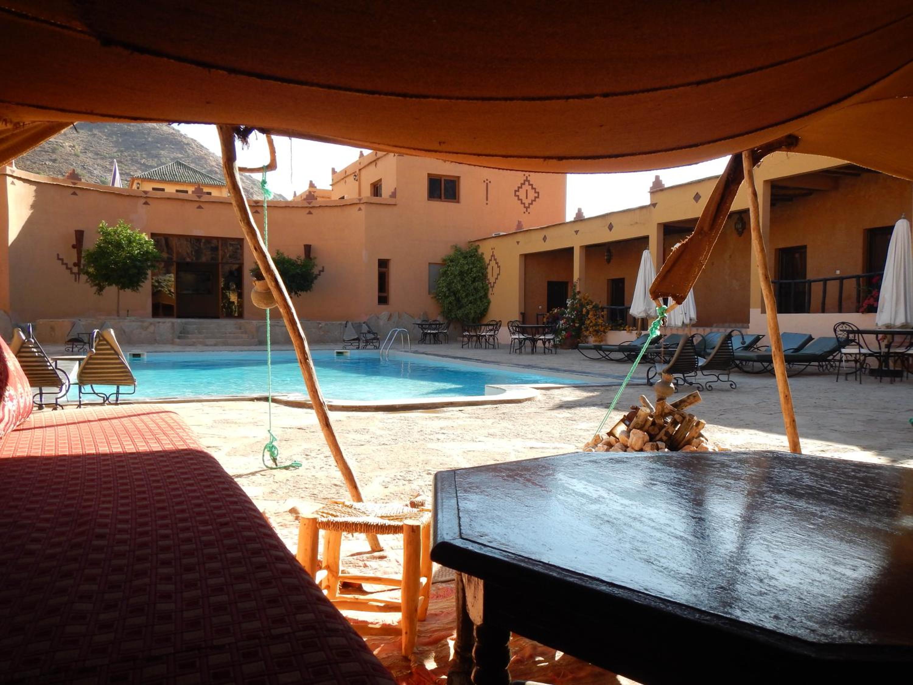 Enjoy a refreshing dip in the outdoor swimming pool or relax amidst the lush greenery of the garden at Auberge Kasbah Chez Amaliya.
