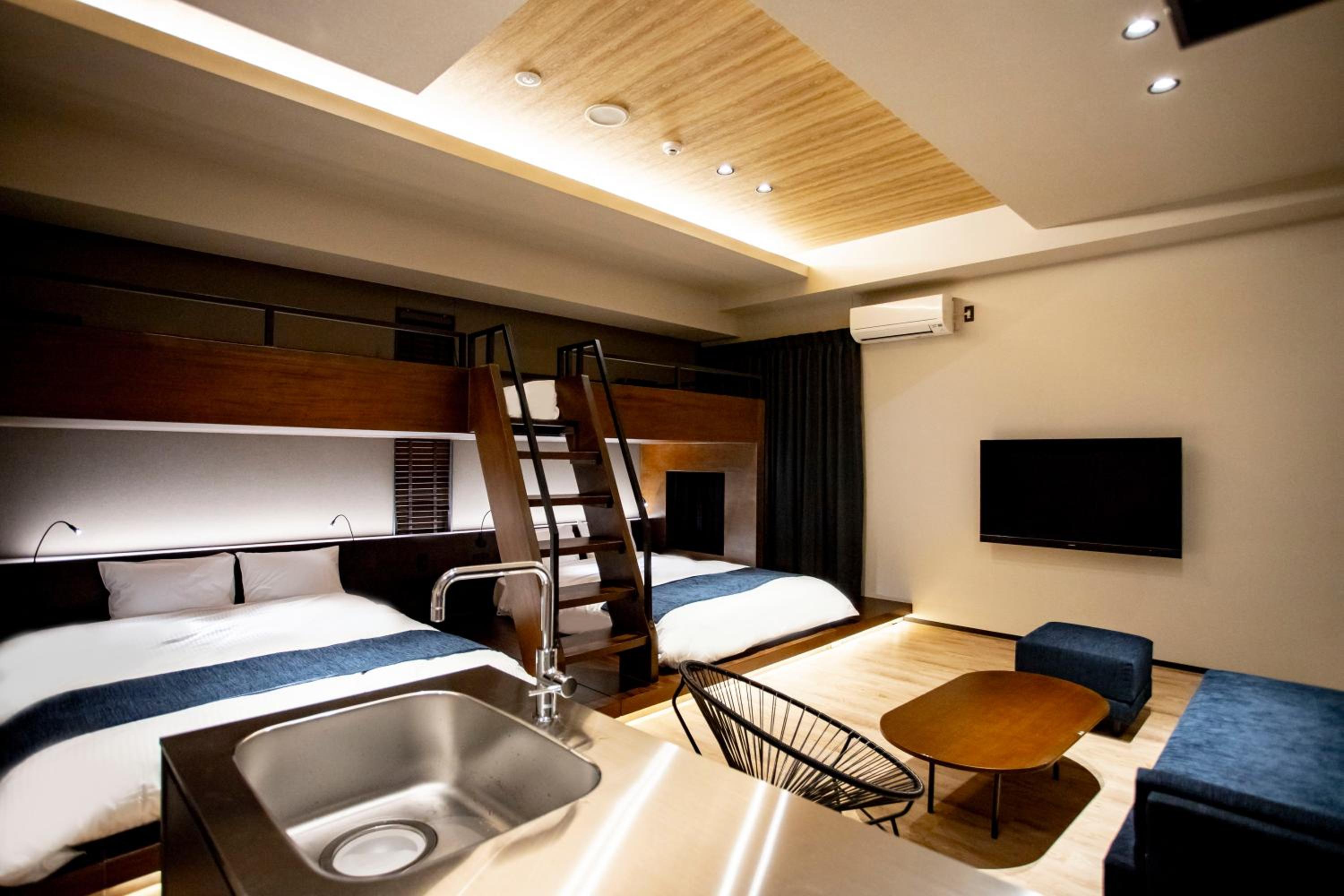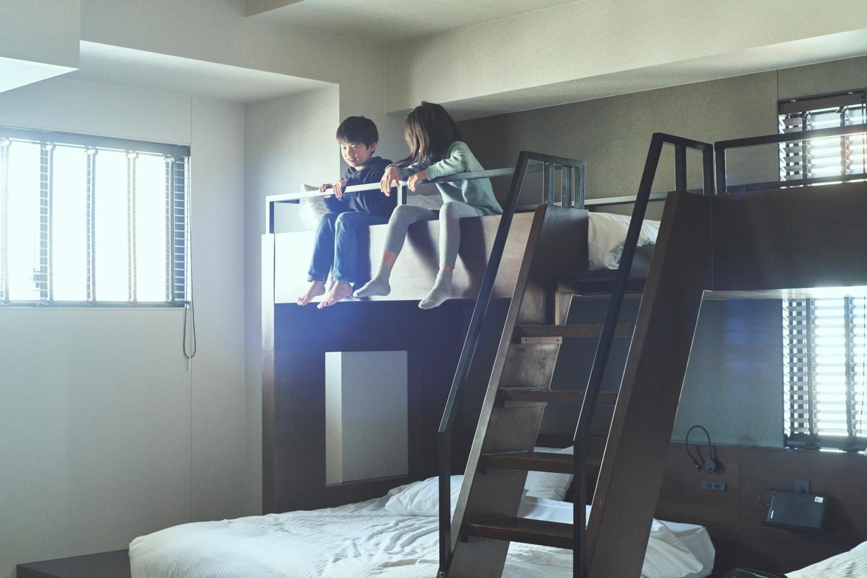 上下舖的家庭房,適合有三個國高中生的家庭,廚房設備,洗衣機都有